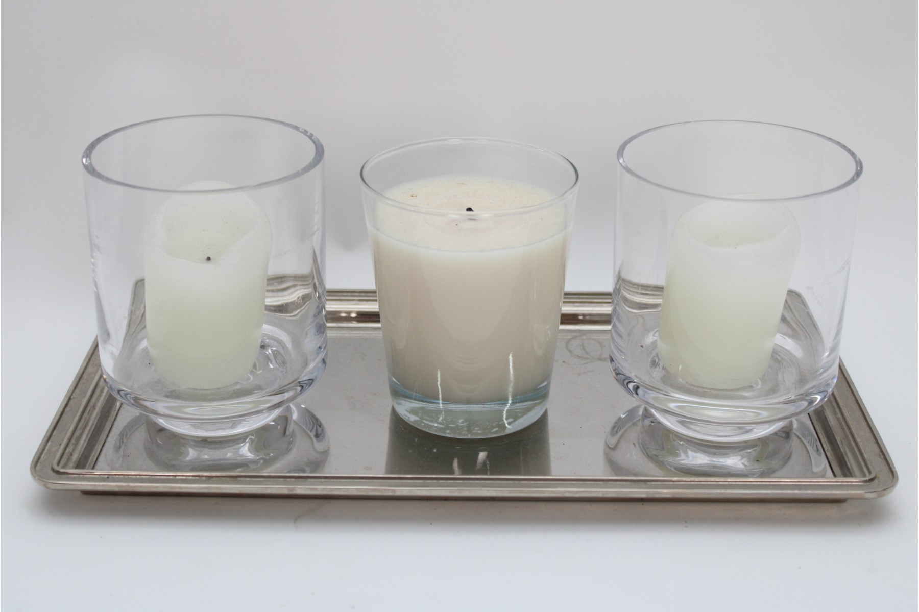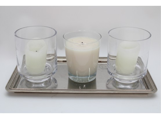 Restoration Hardware Chrome Apothecary Tank Tray With Candles
