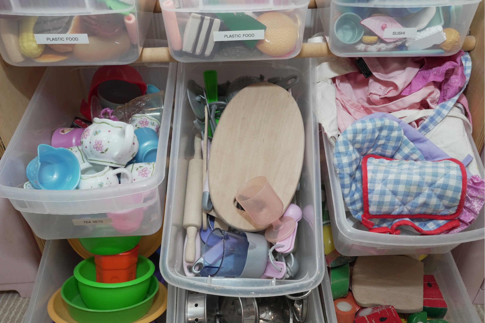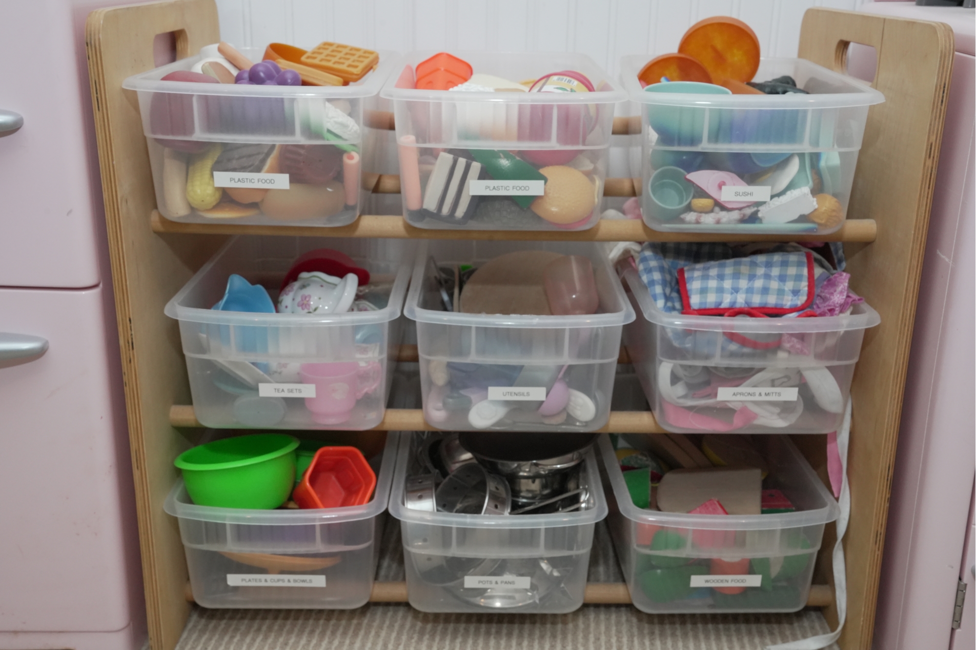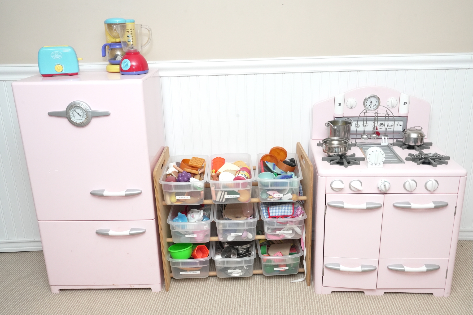 Item Description: Oven 22 x 19 x 29, storage bins 24 x 15 x 22, fridge 19 x 14 x 37