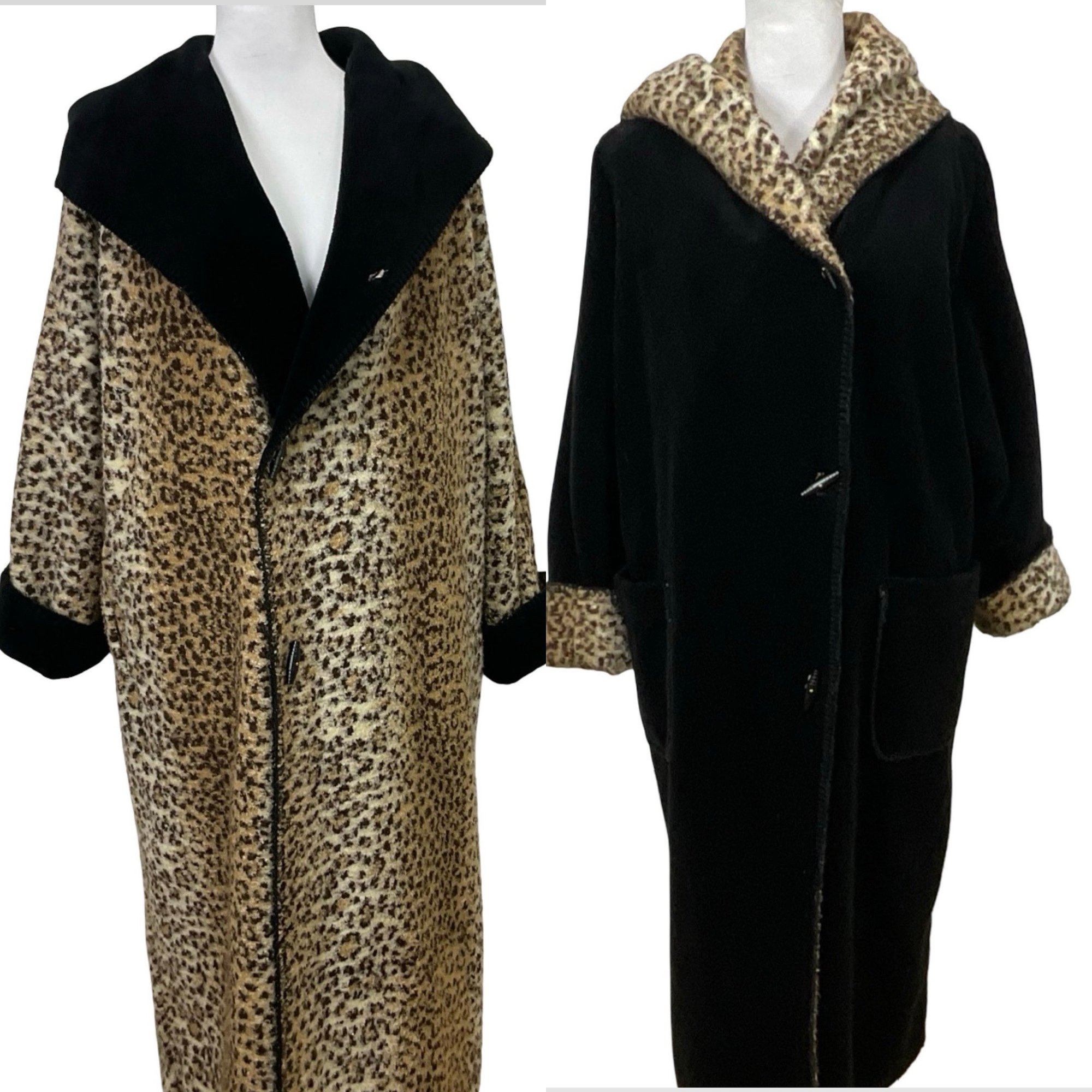 Reversible Leopard And Black Woman’s Coat With Hood