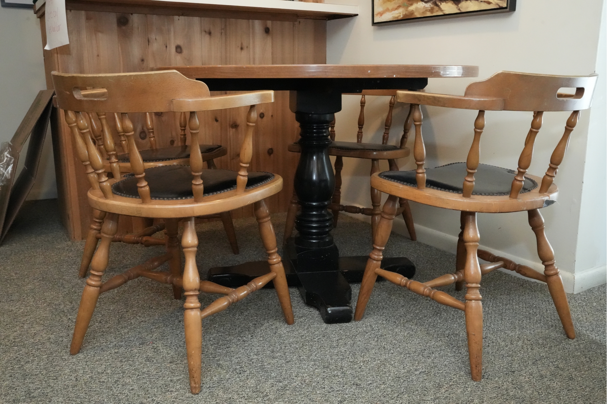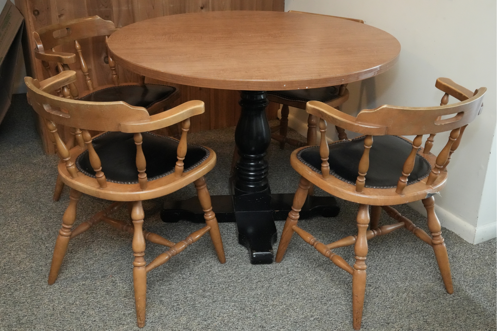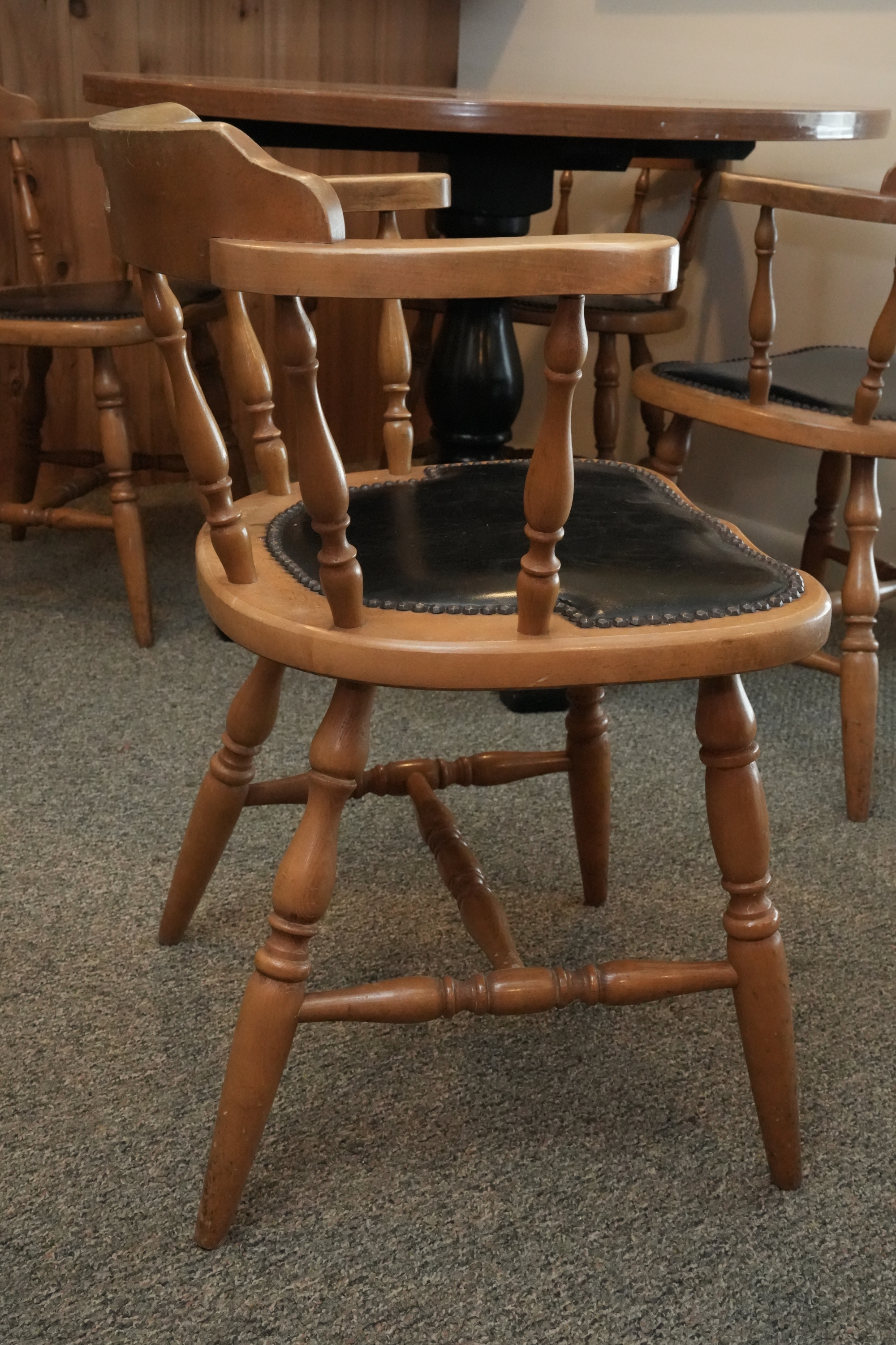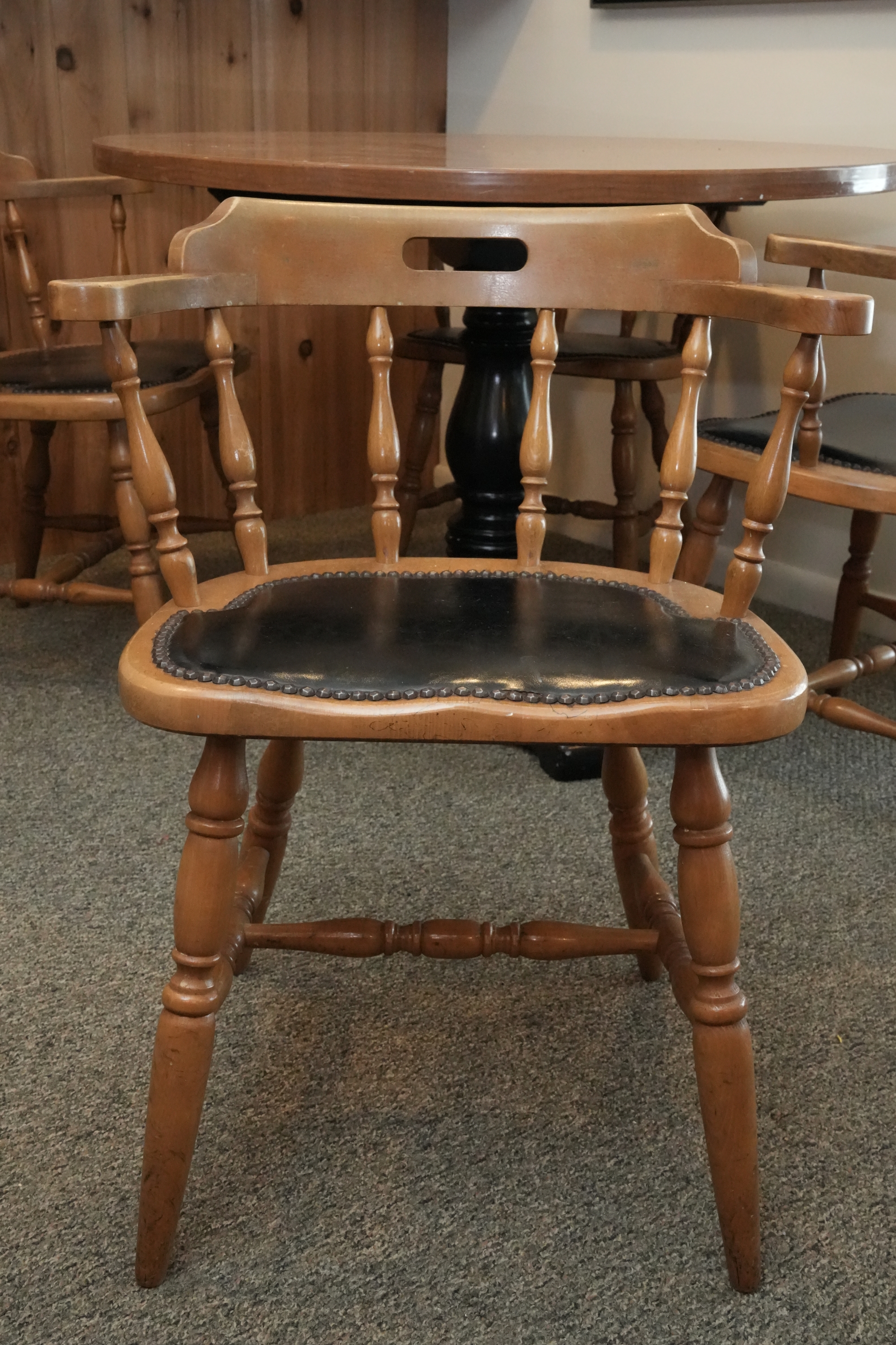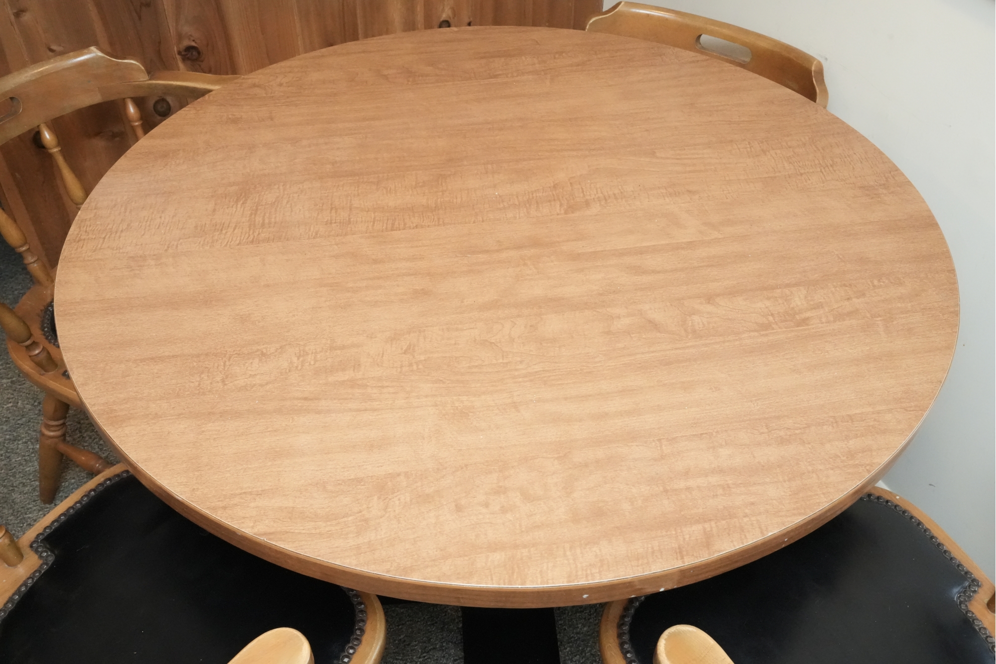 Table 42 round X 30. Chairs Dimensions: 23 X 17 X 29 Seat height 18 Seat depth 17