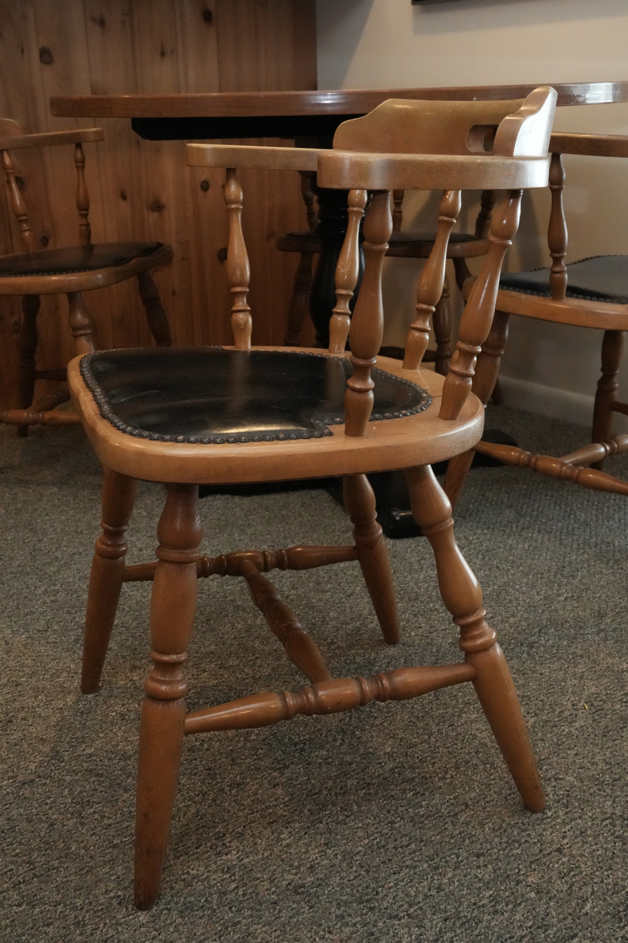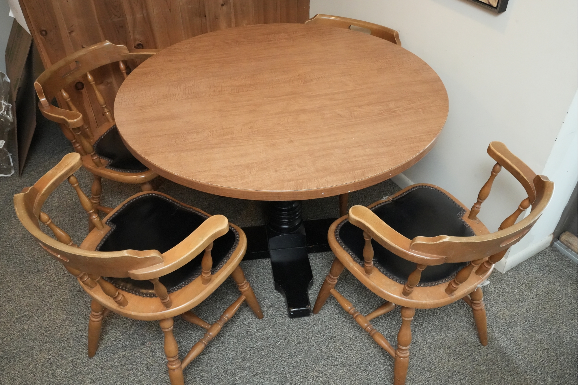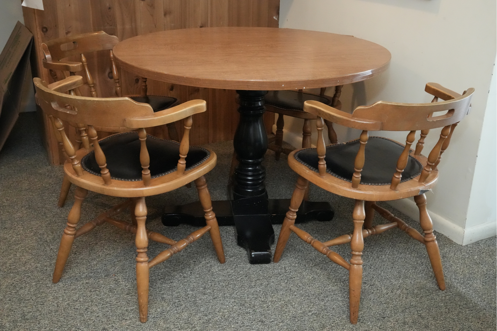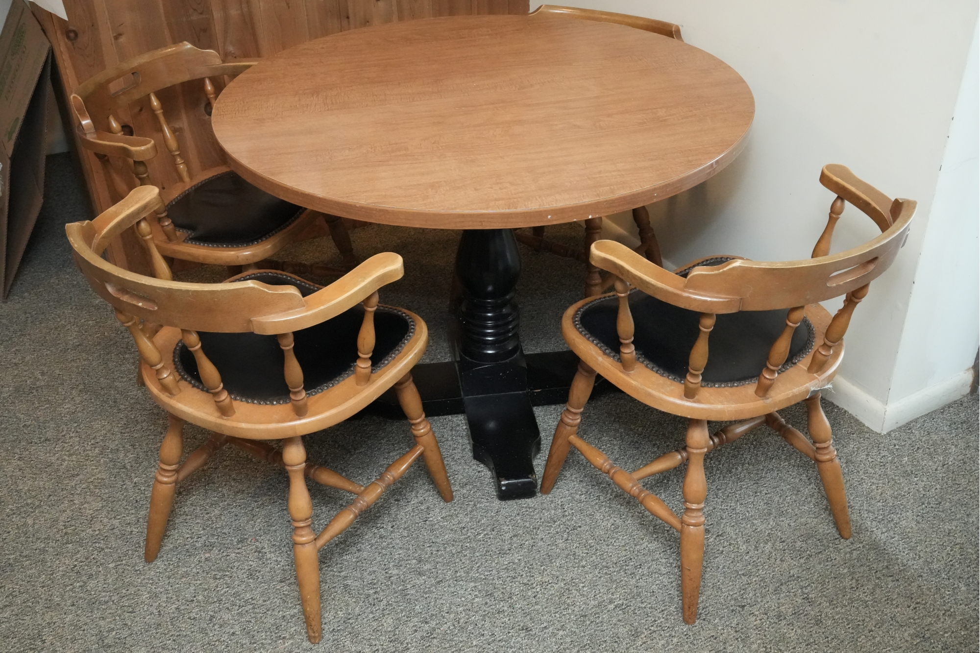 Table 42 round X 30. Chairs Dimensions: 23 X 17 X 29 Seat height 18 Seat depth 17