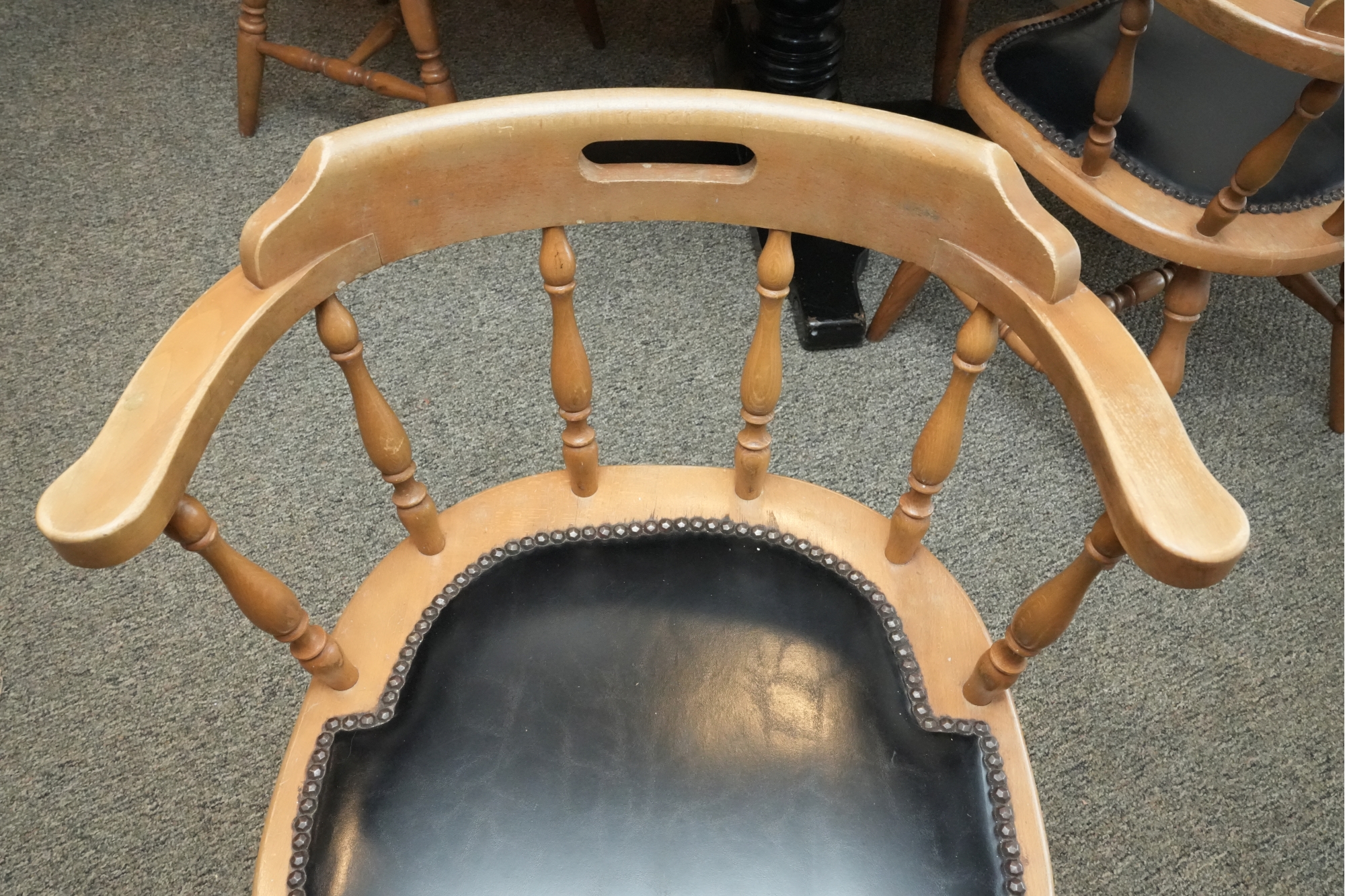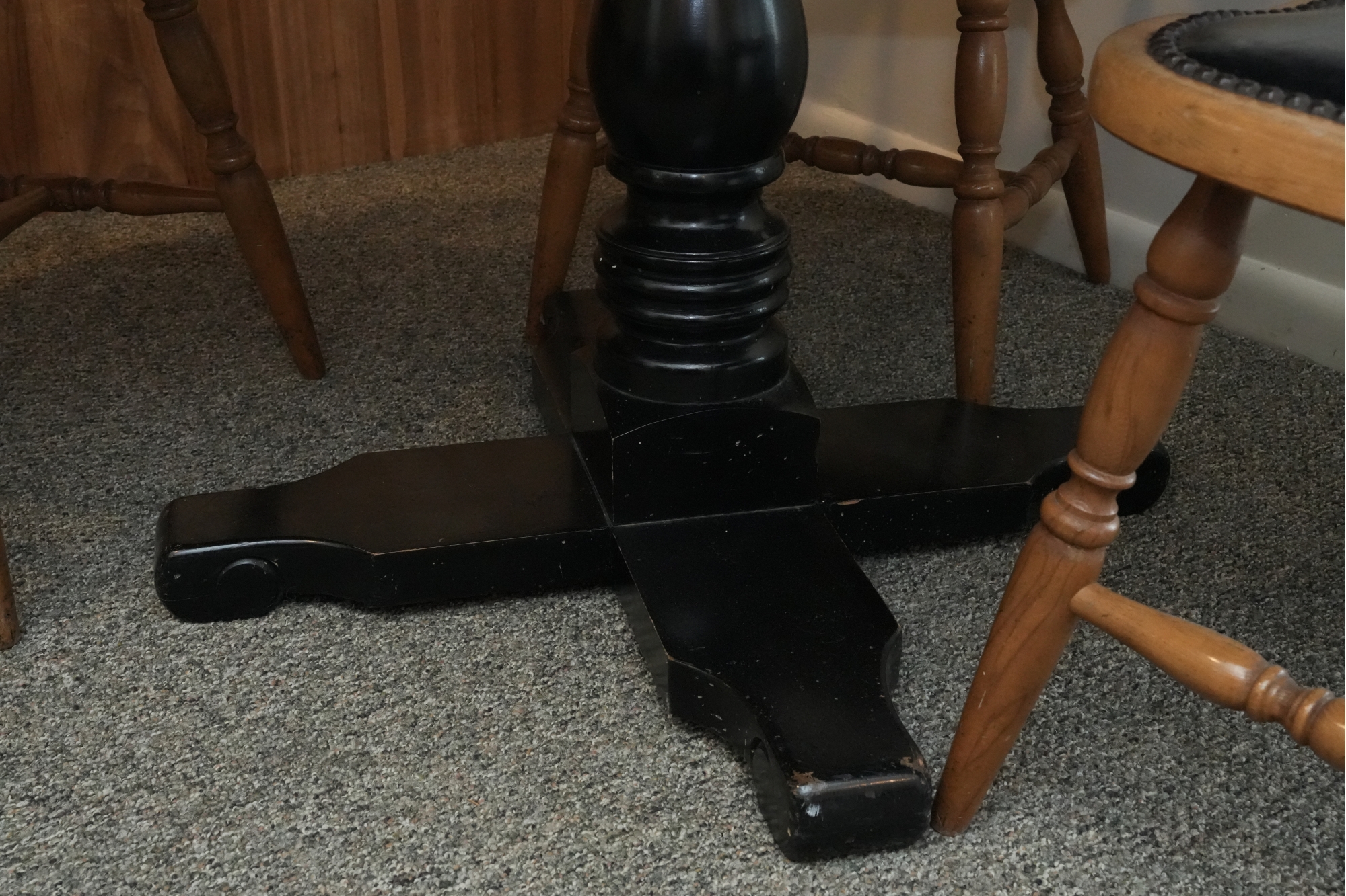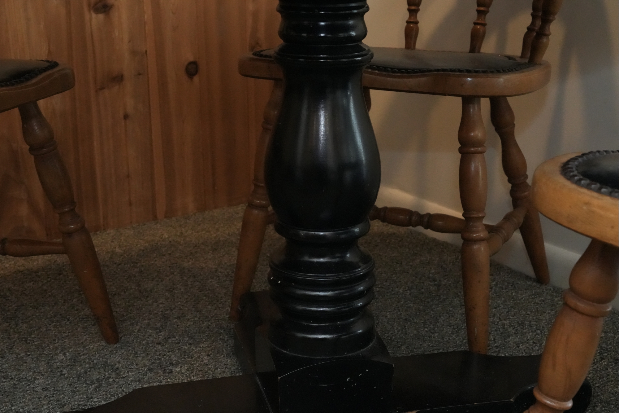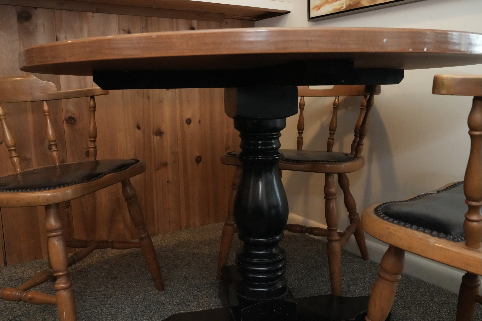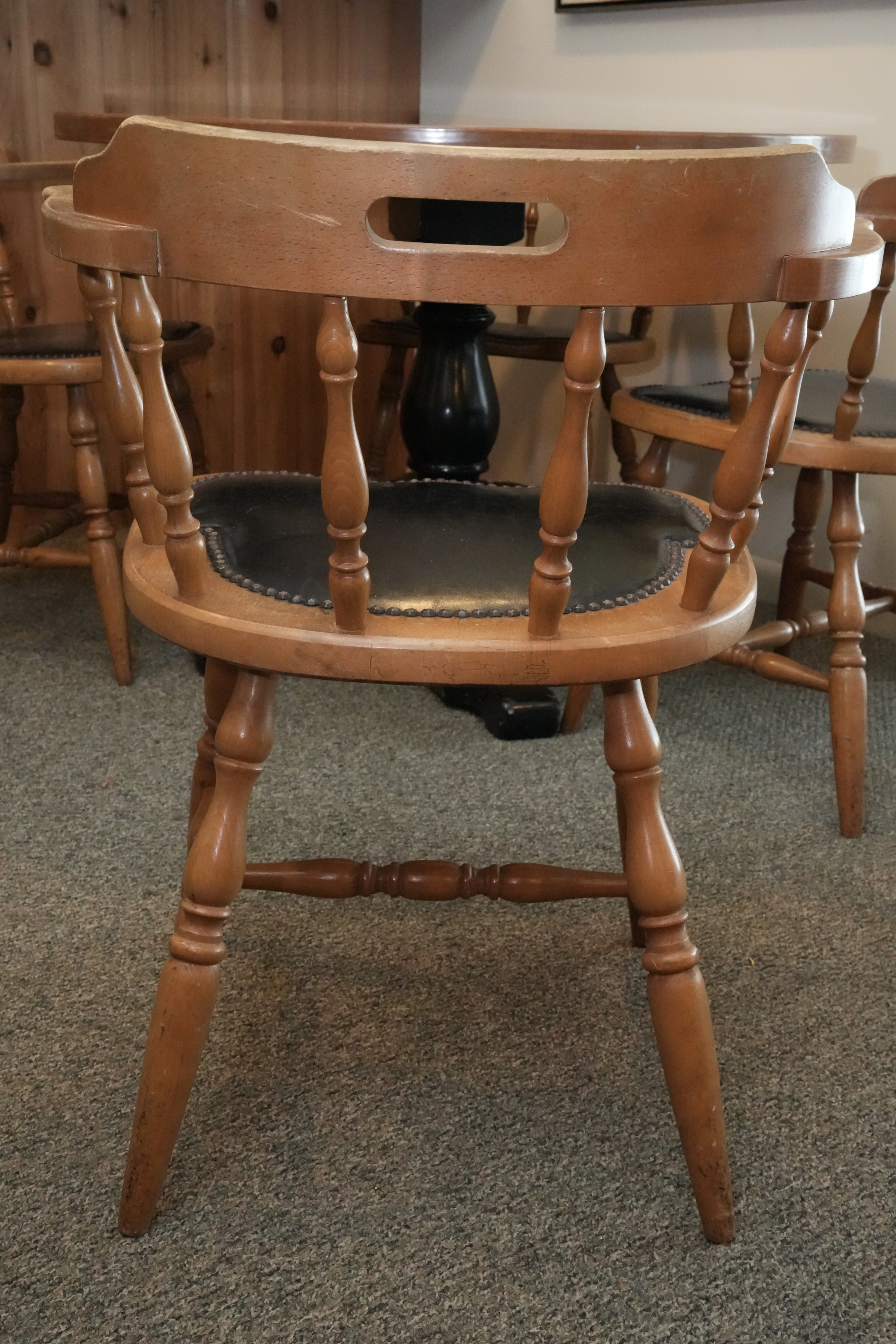 Table 42 round X 30. Chairs Dimensions: 23 X 17 X 29 Seat height 18 Seat depth 17