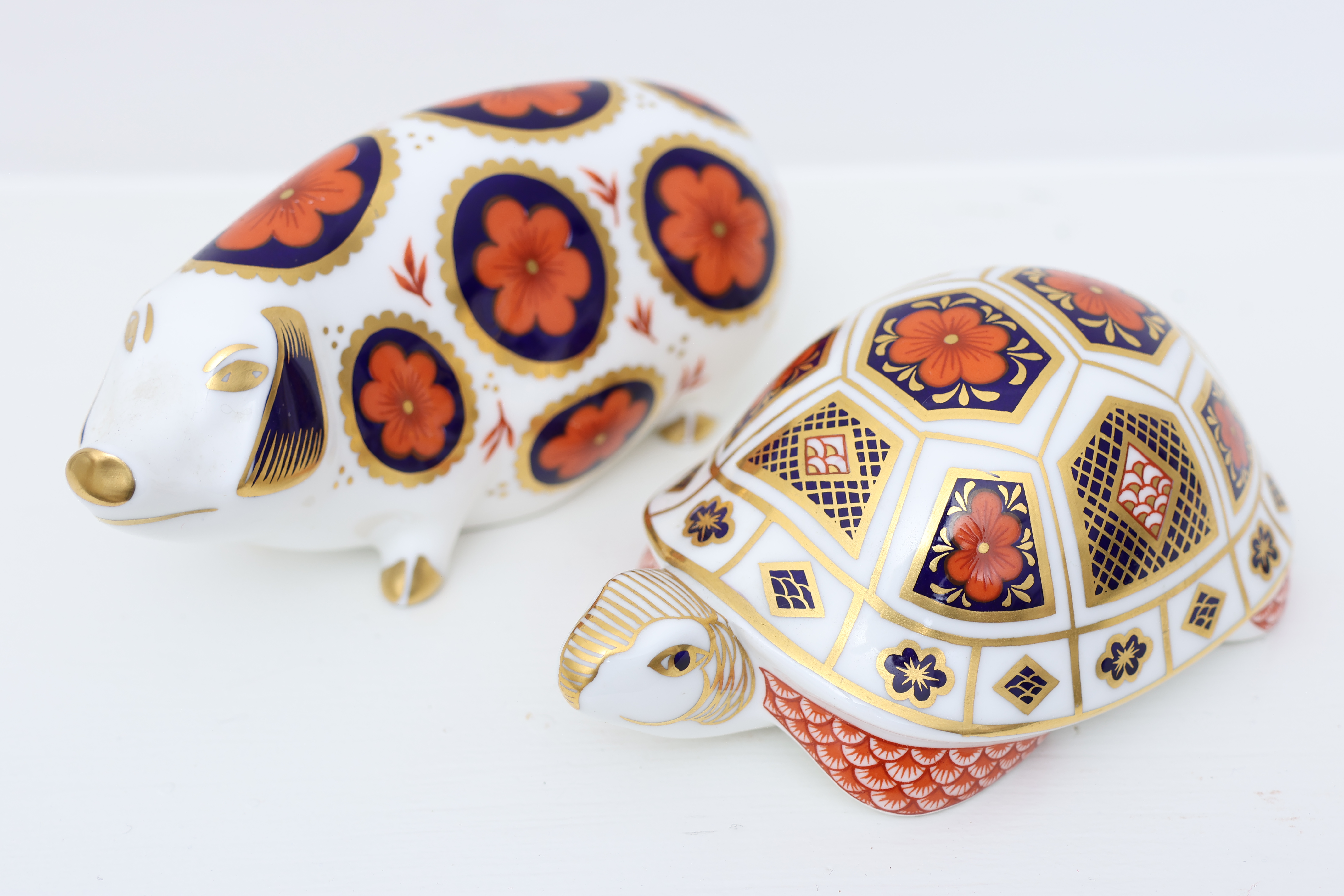 Royal Crown Derby Turtle And Pig Paperweights