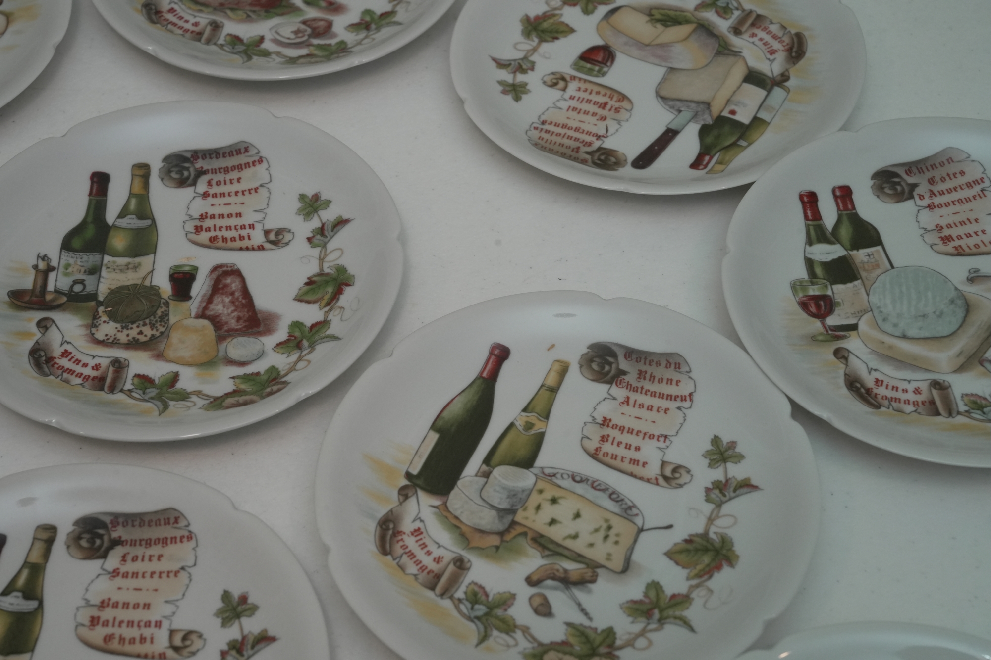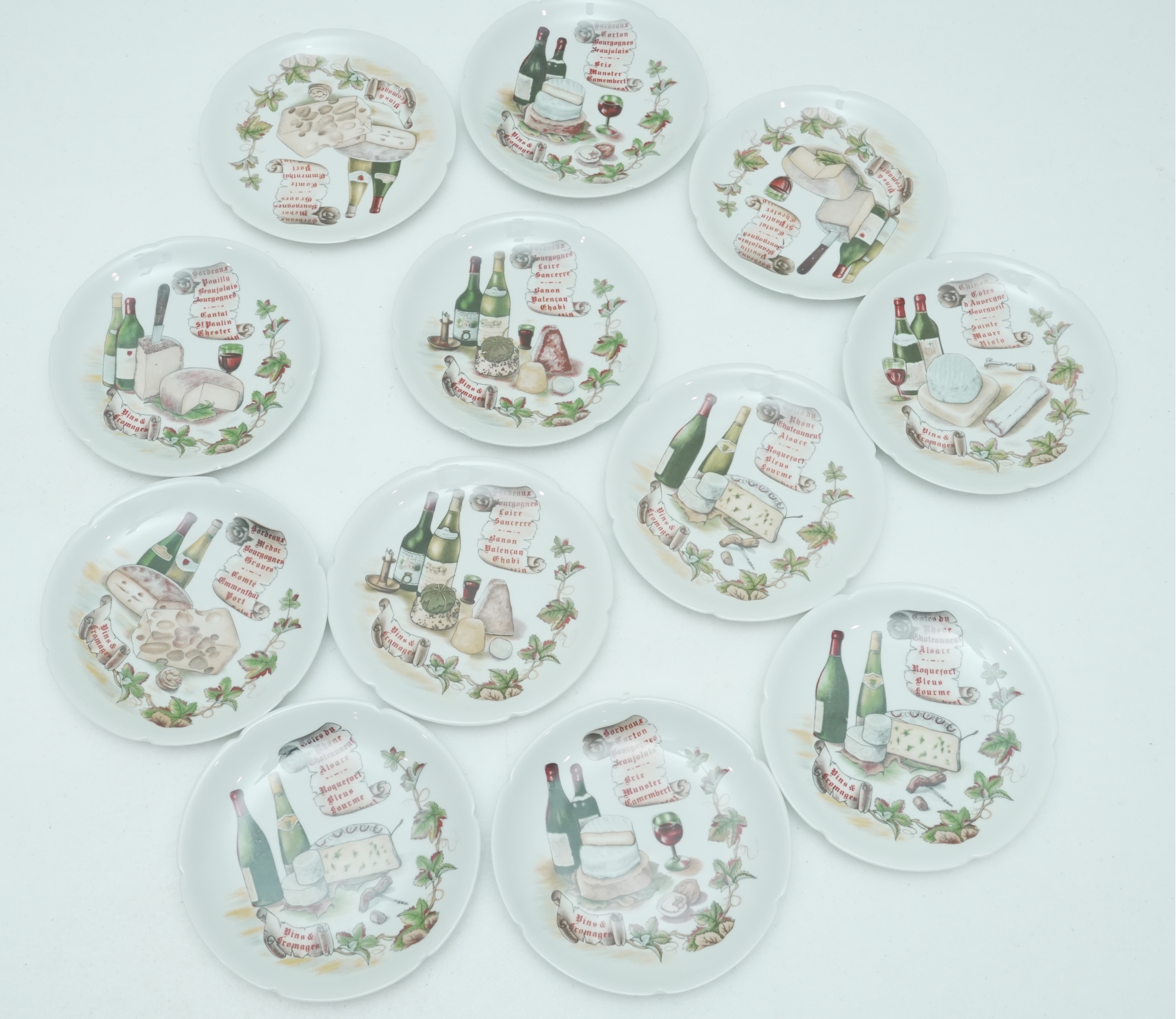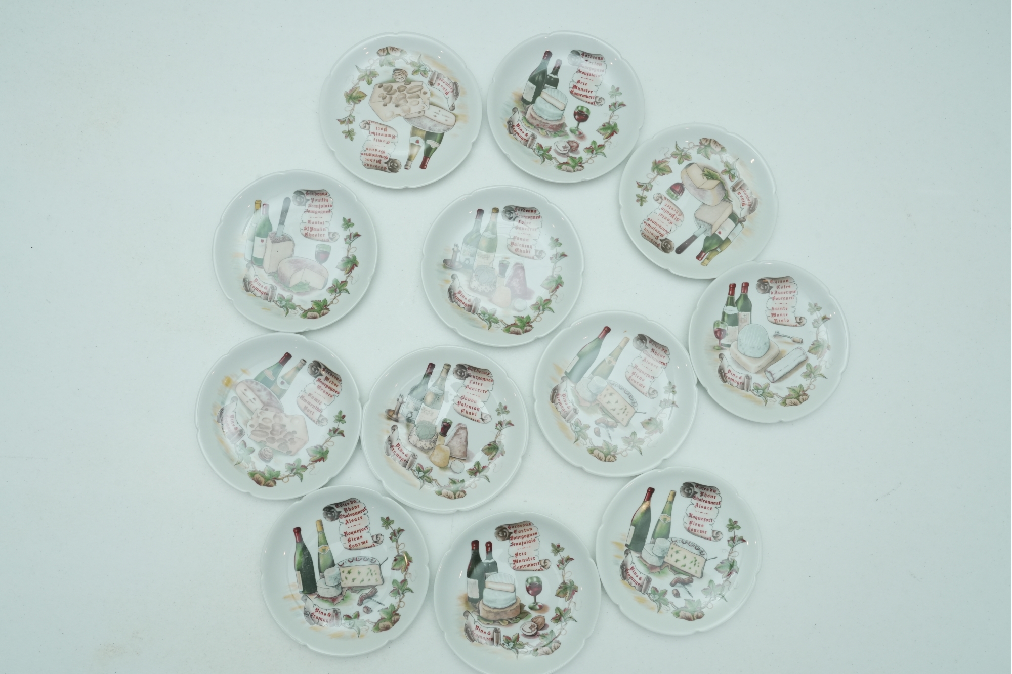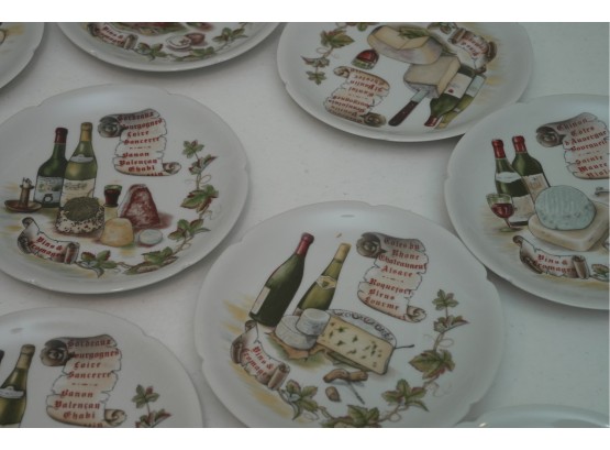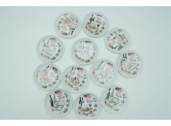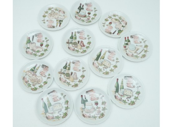 Set Of 11 Porcelain Decorative Cheese & Wine Appetizer Plates
