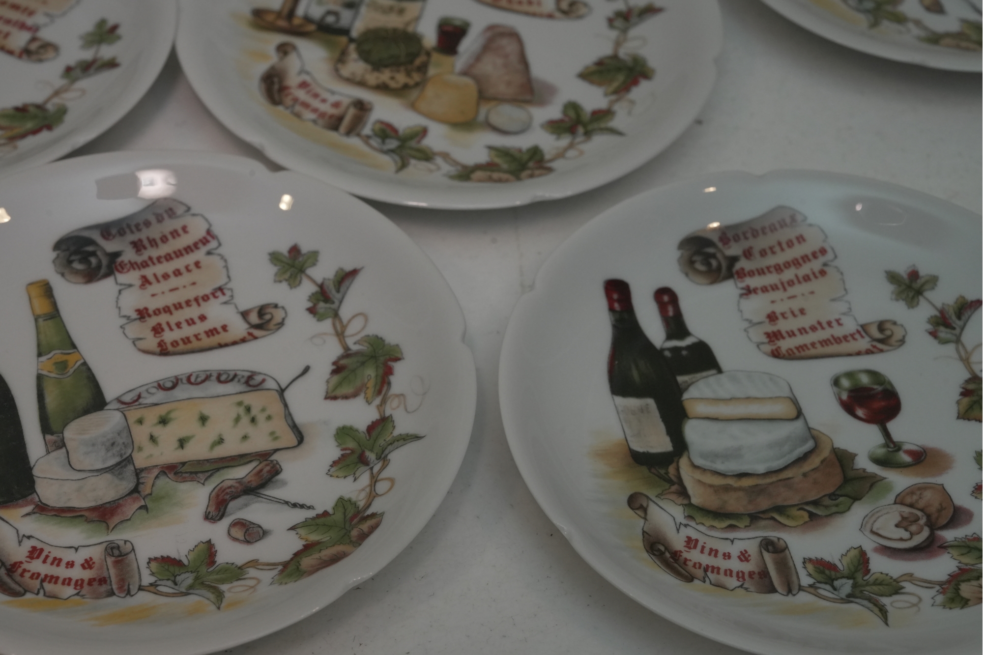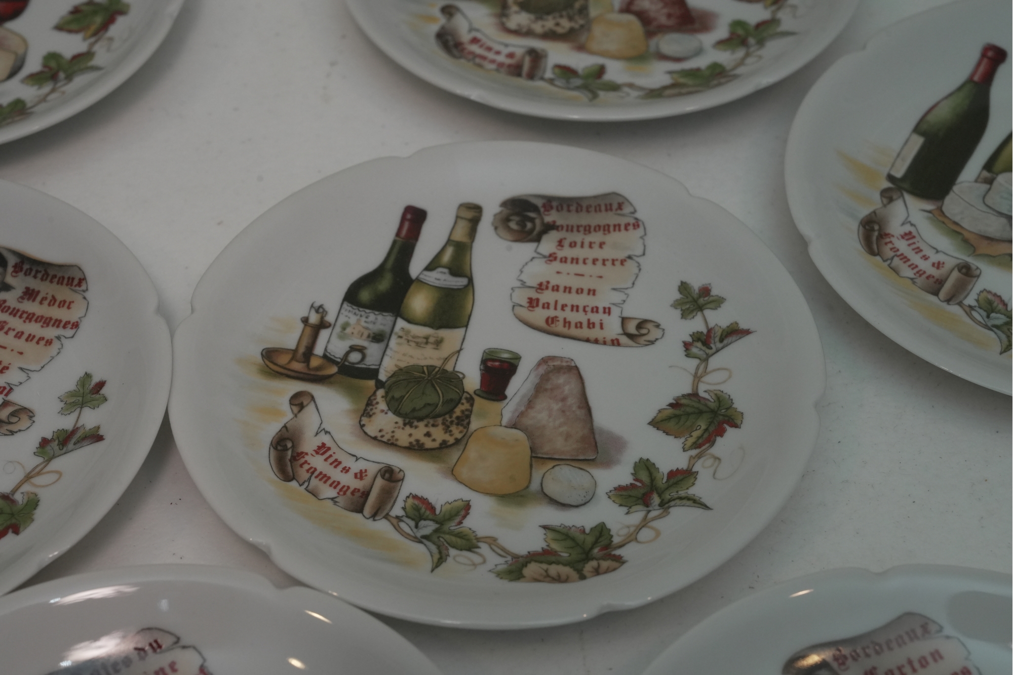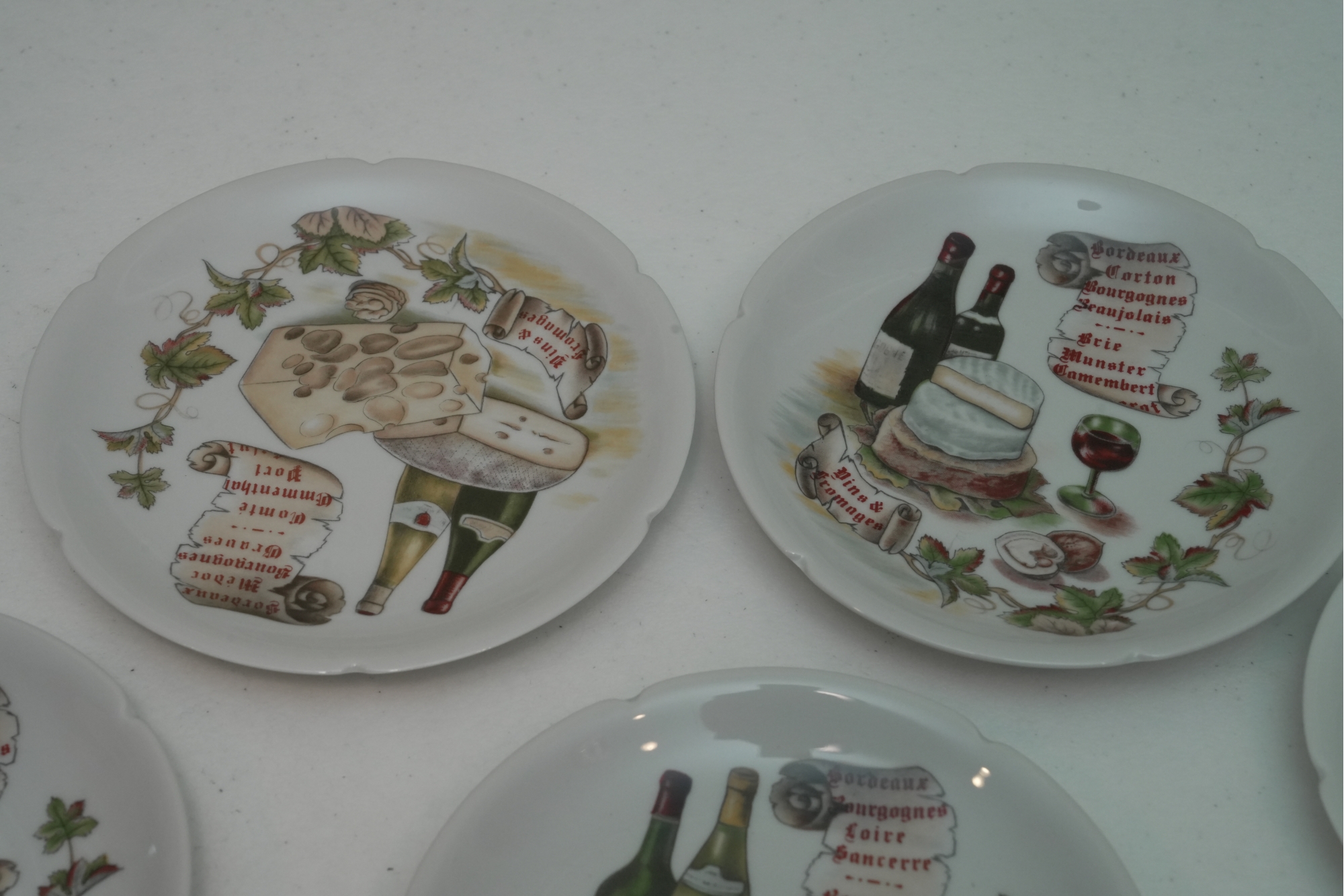 Set Of 11 Porcelain Decorative Cheese & Wine Appetizer Plates