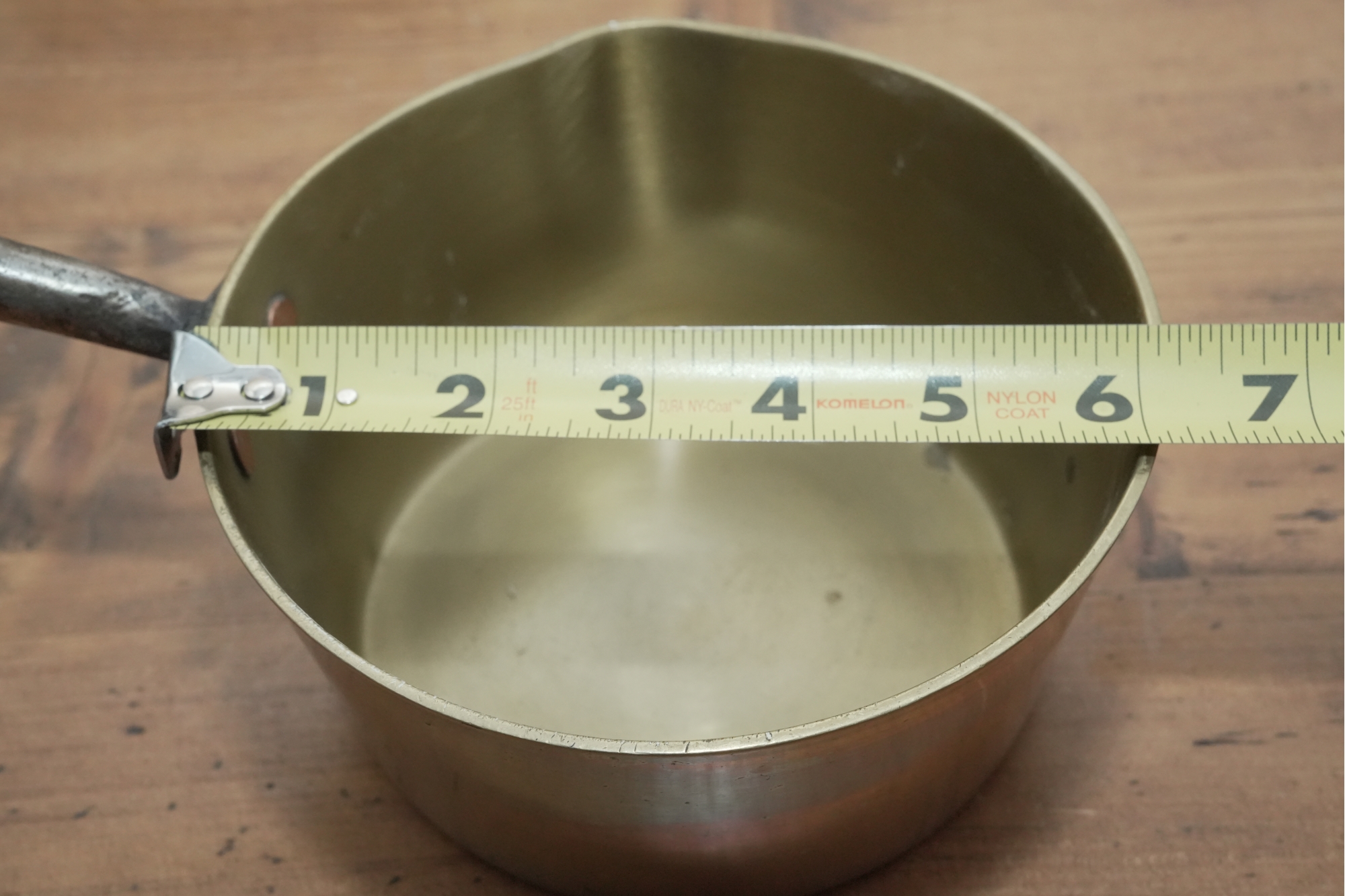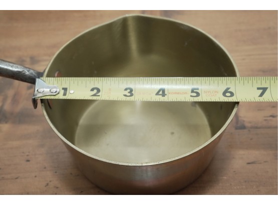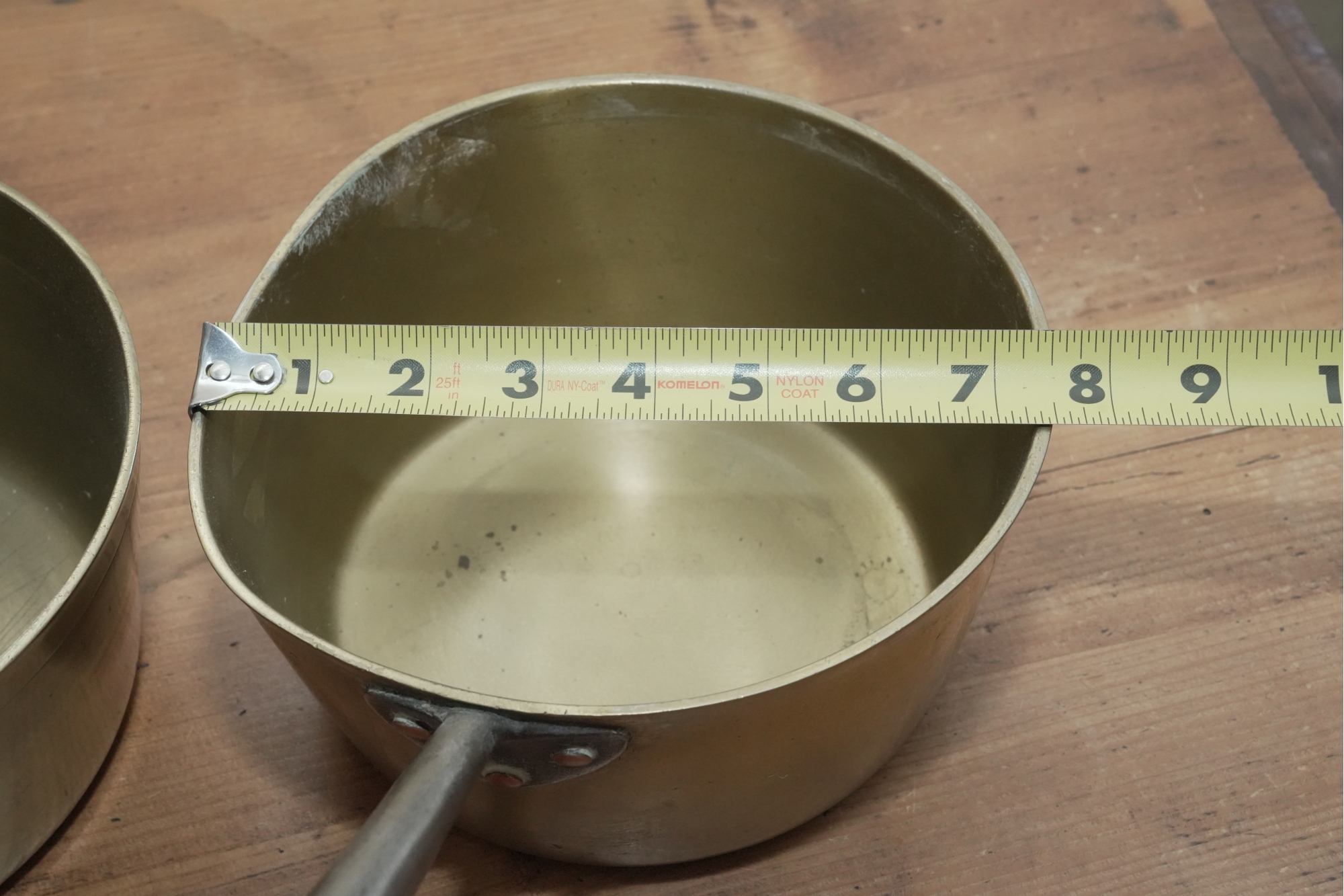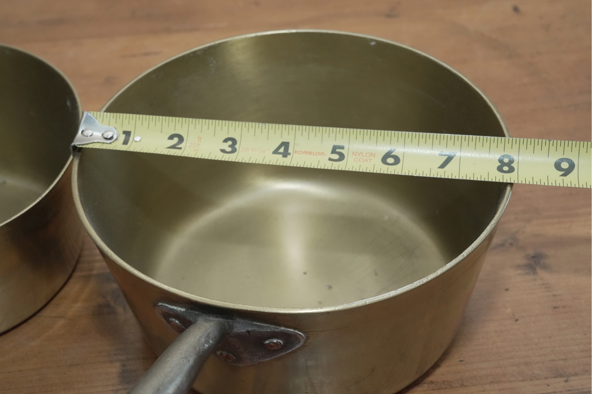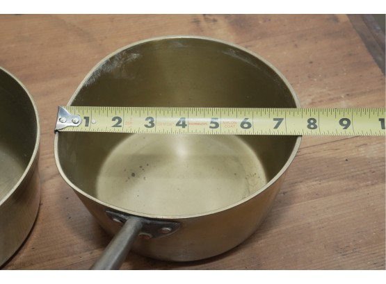Set Of 5 Vintage Brass Sauce Pans With Long Iron Handles