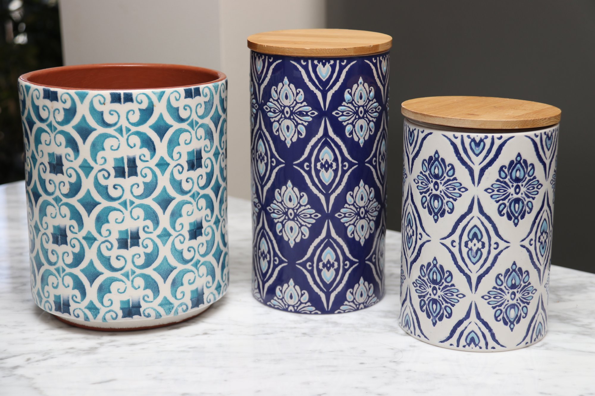 Set of three square canisters in good condition.
