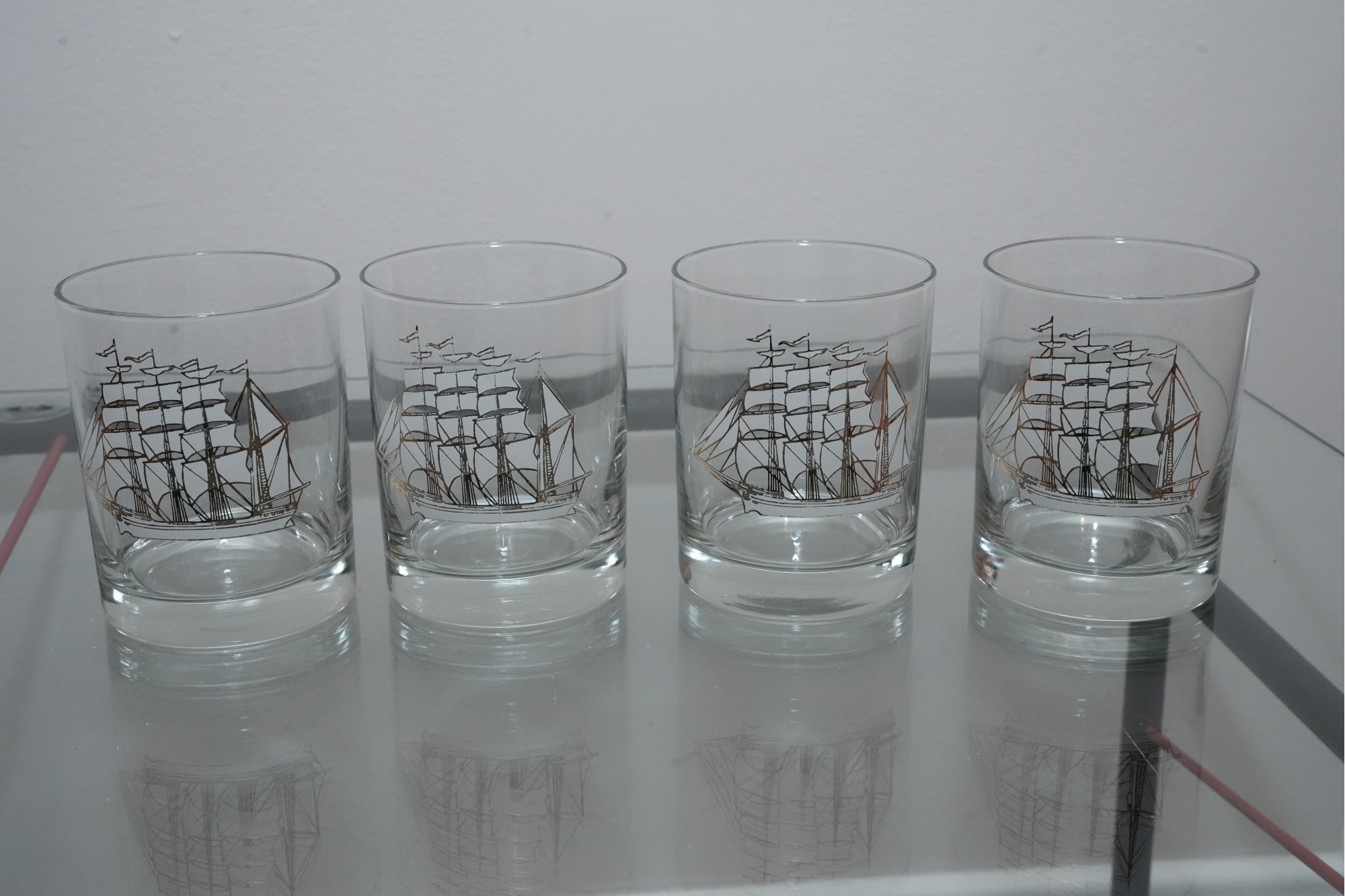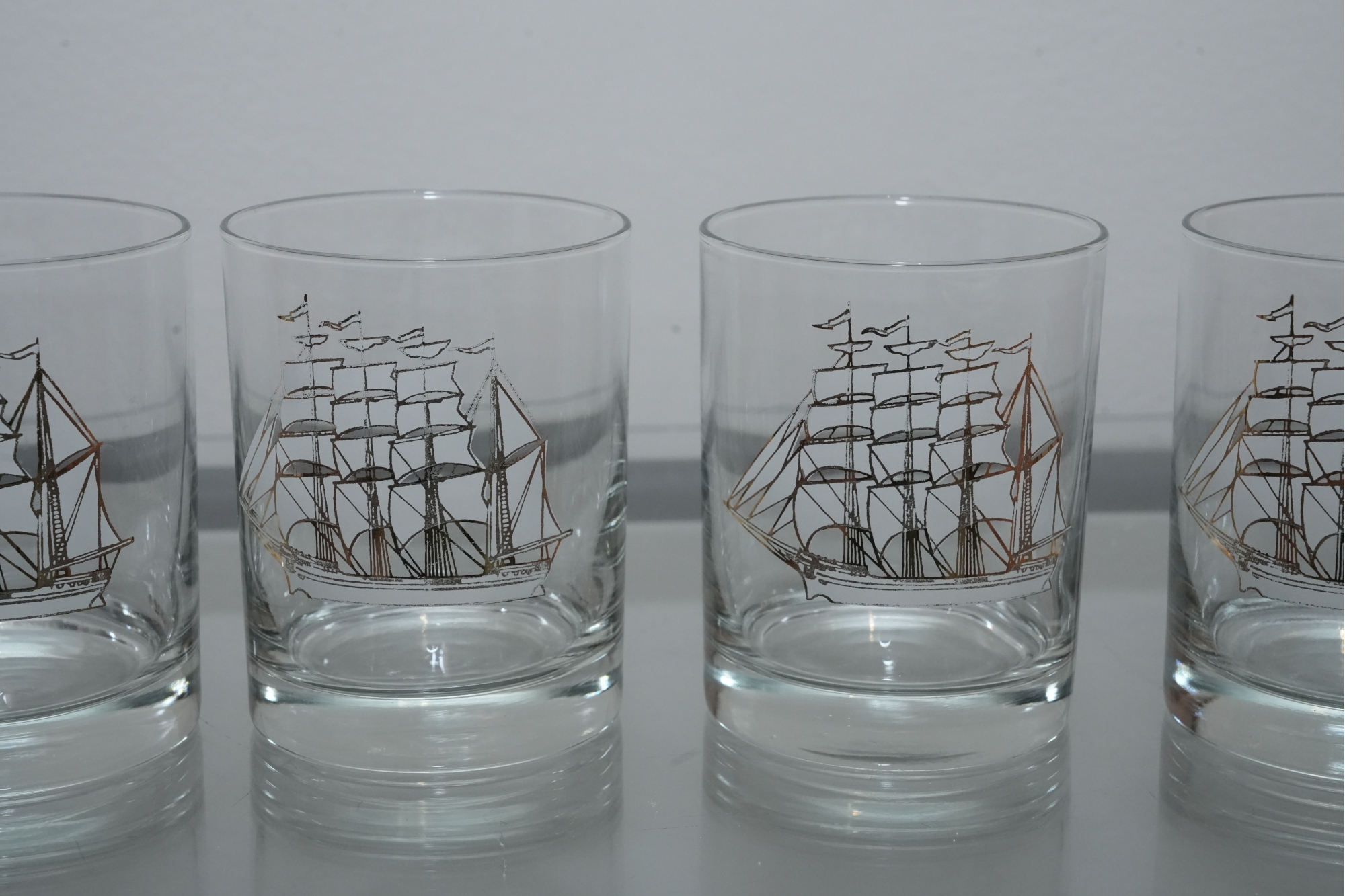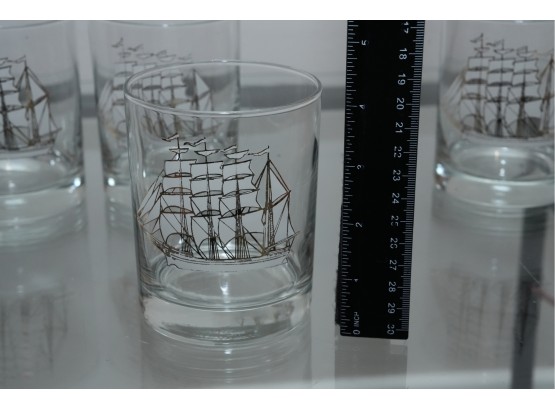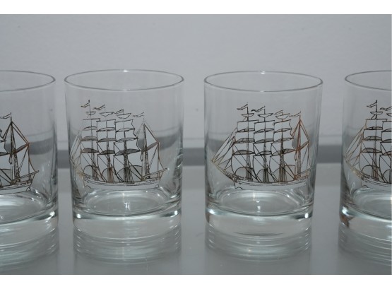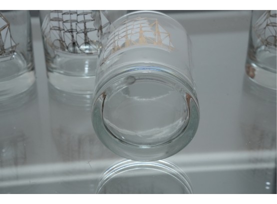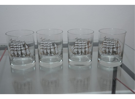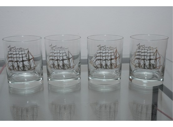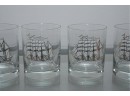 Set Of Four Nautical Motif Lowball Glasses
