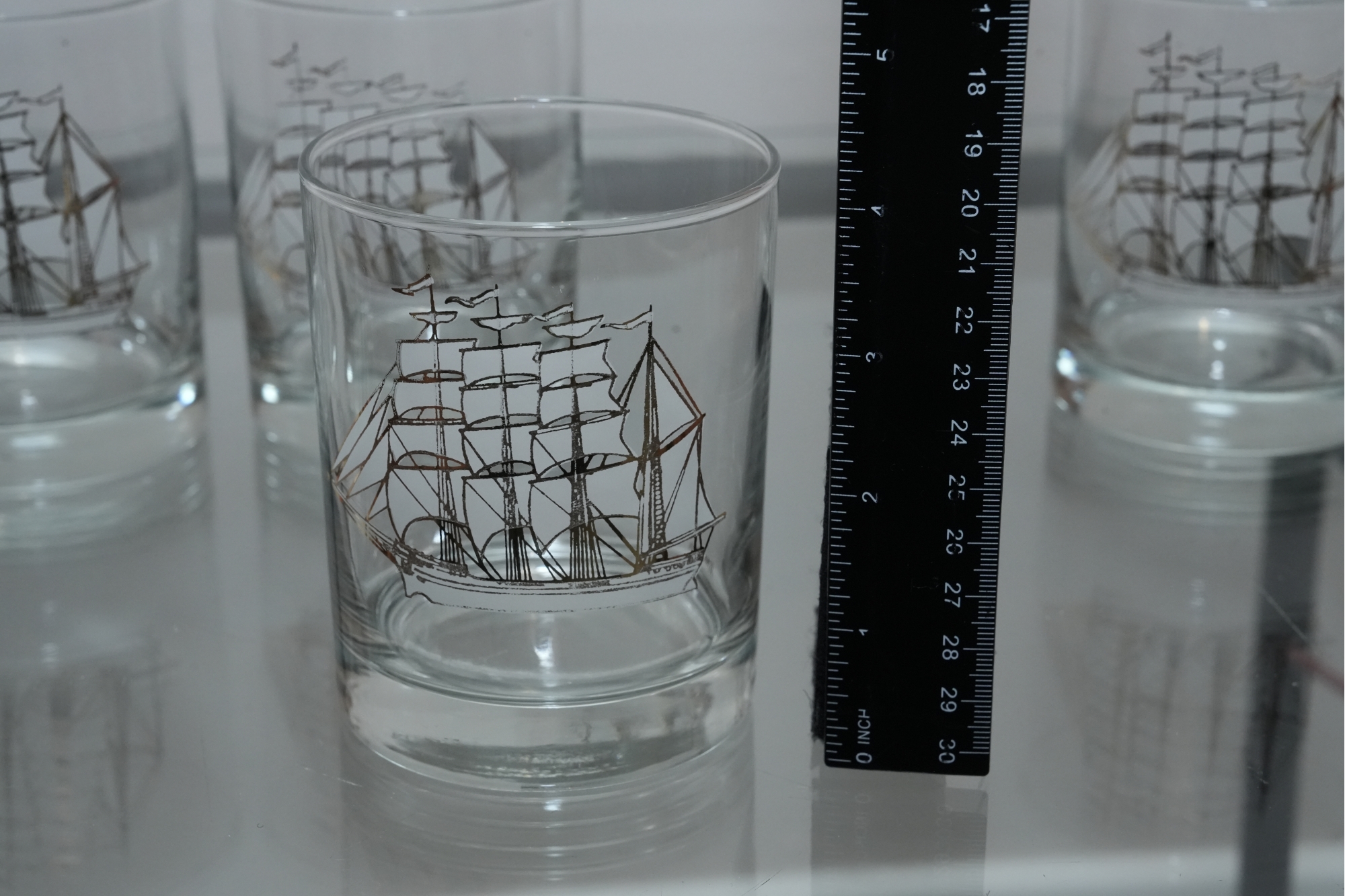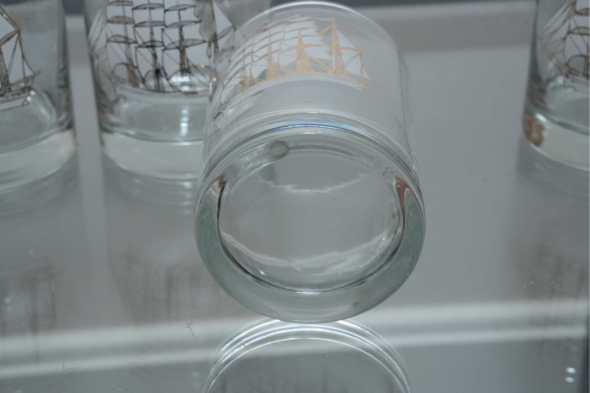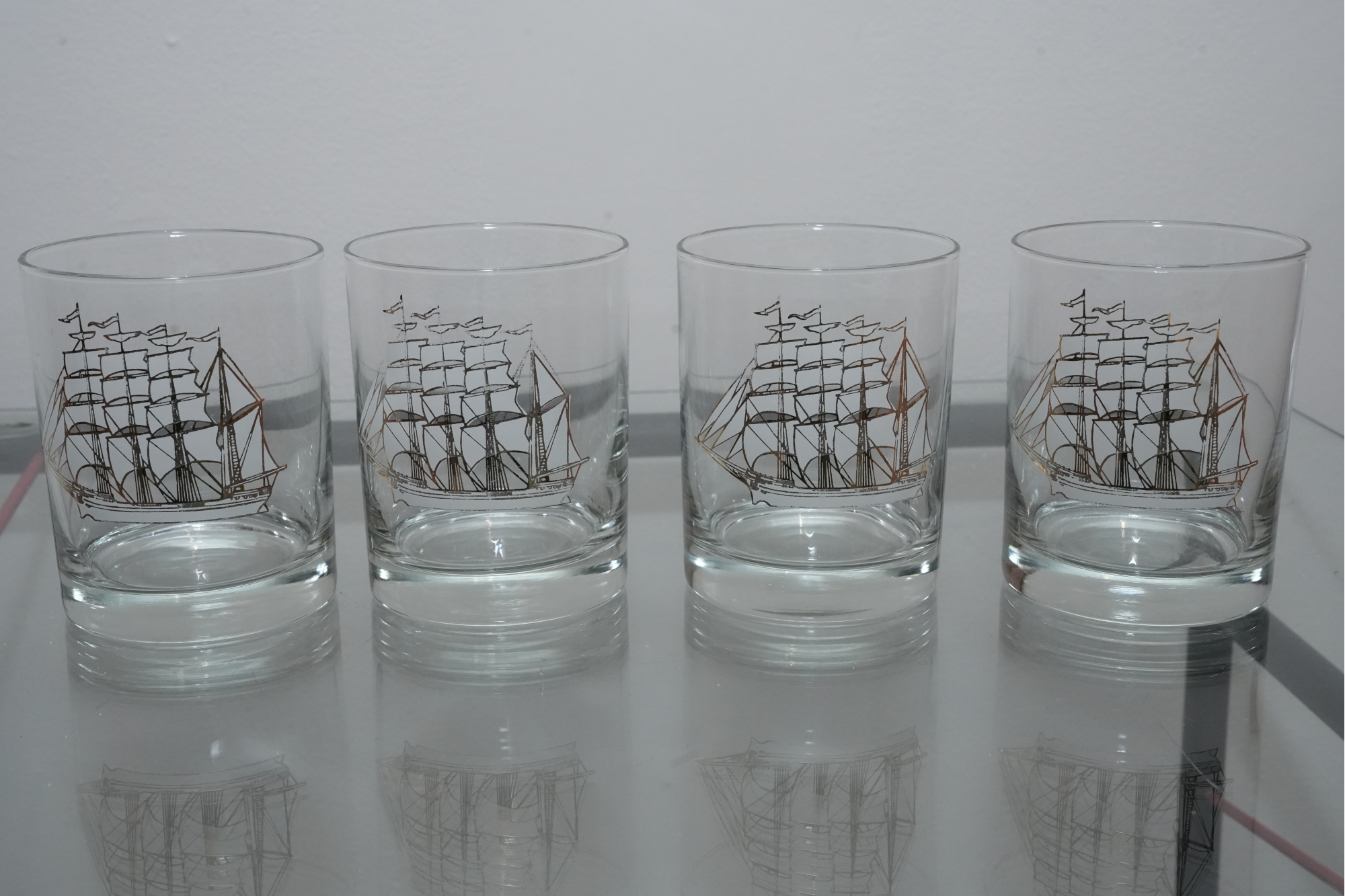 Set Of Four Nautical Motif Lowball Glasses