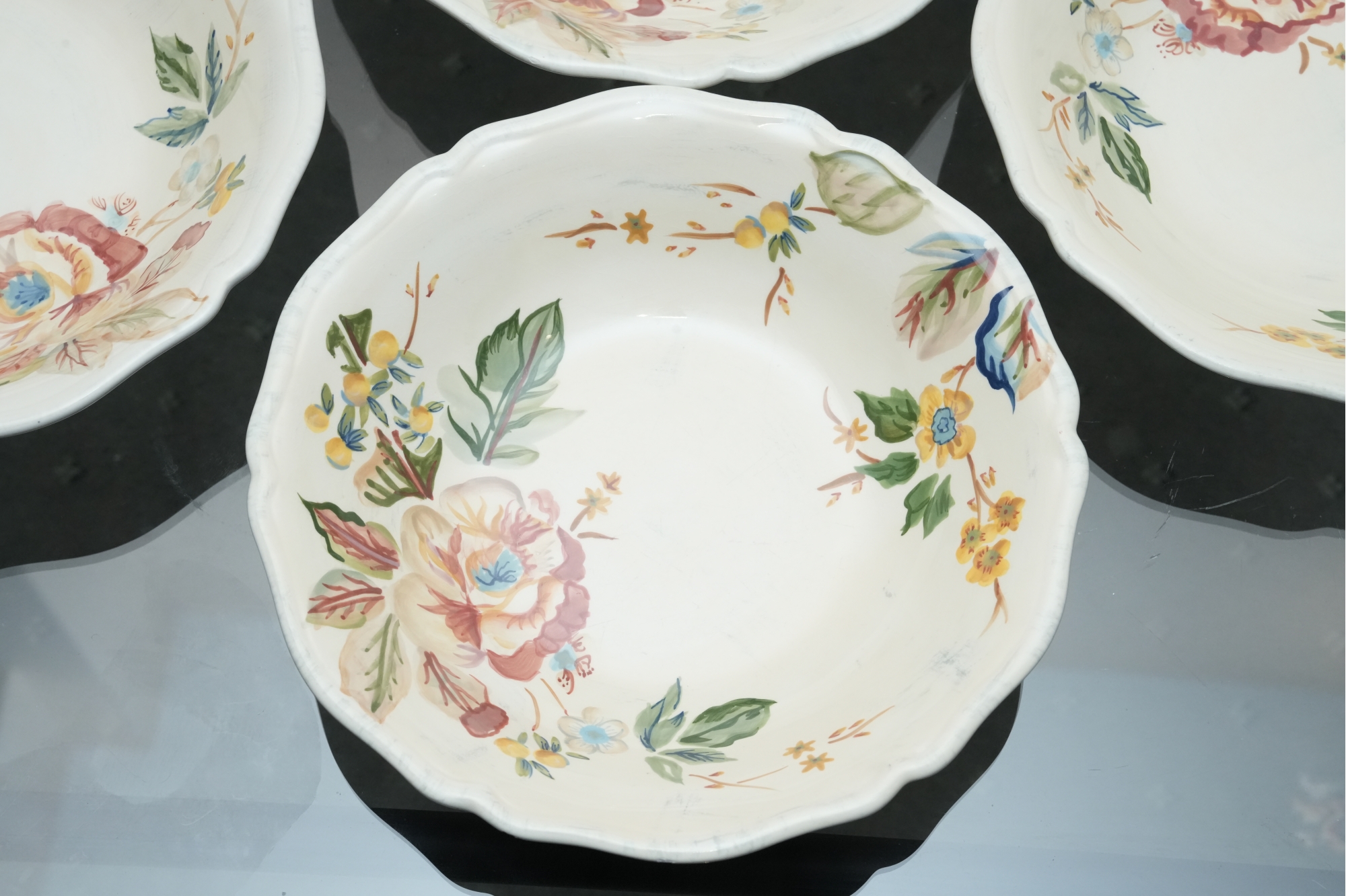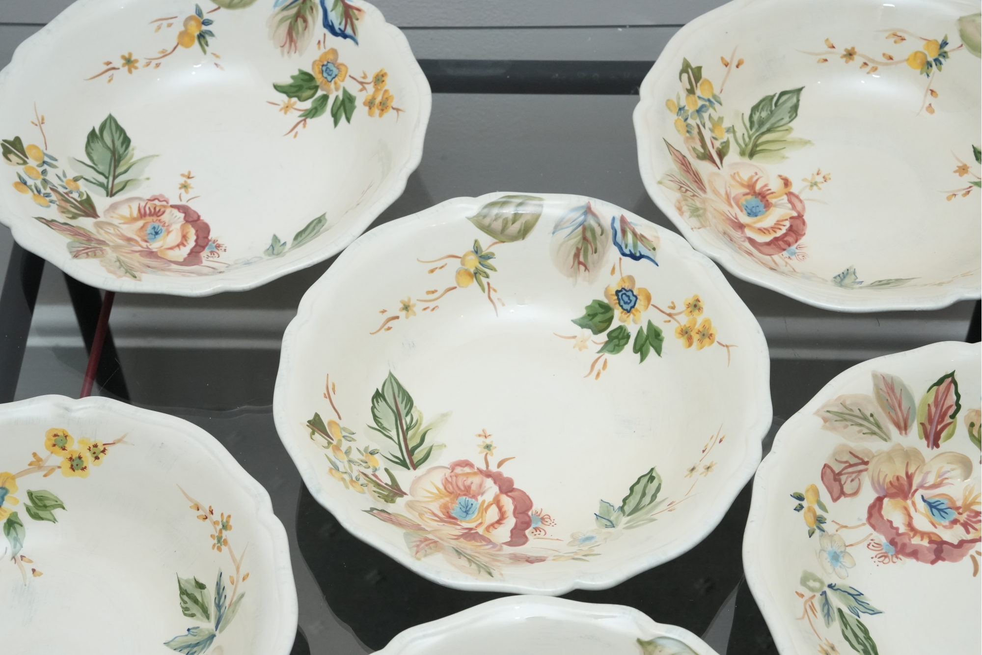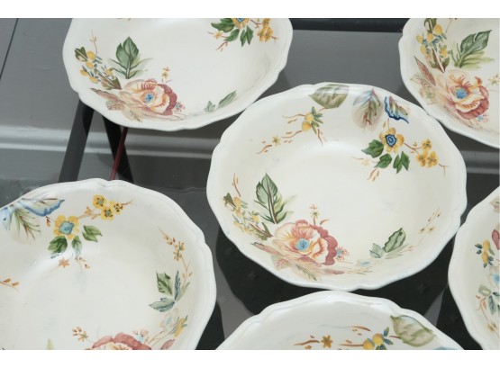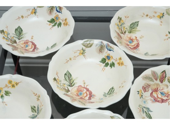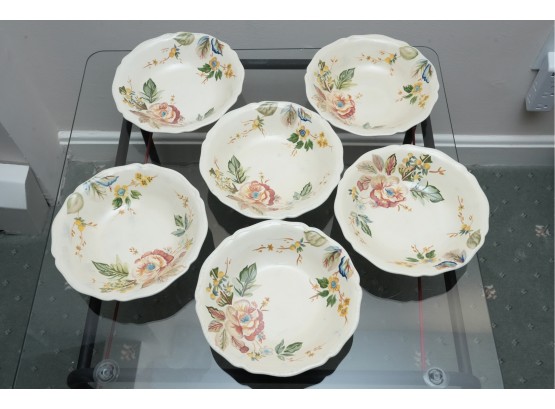 Set Of Six Floral Pattern Porcelain Dessert Bowls