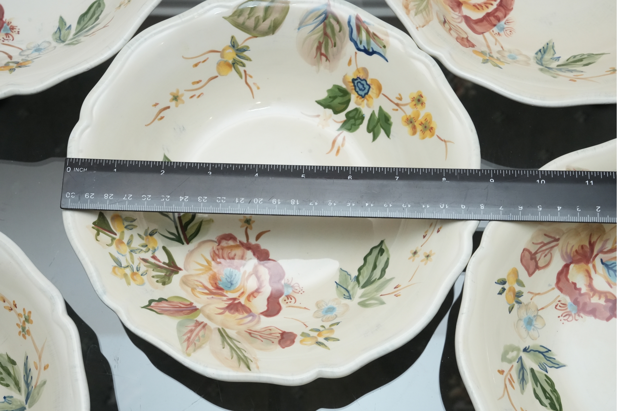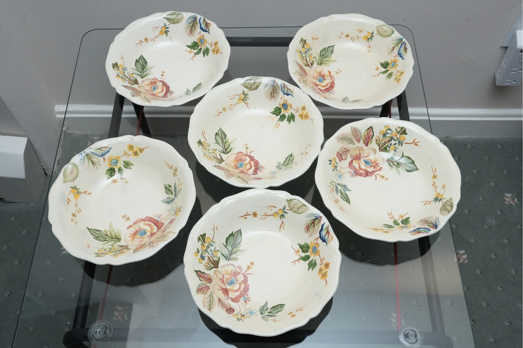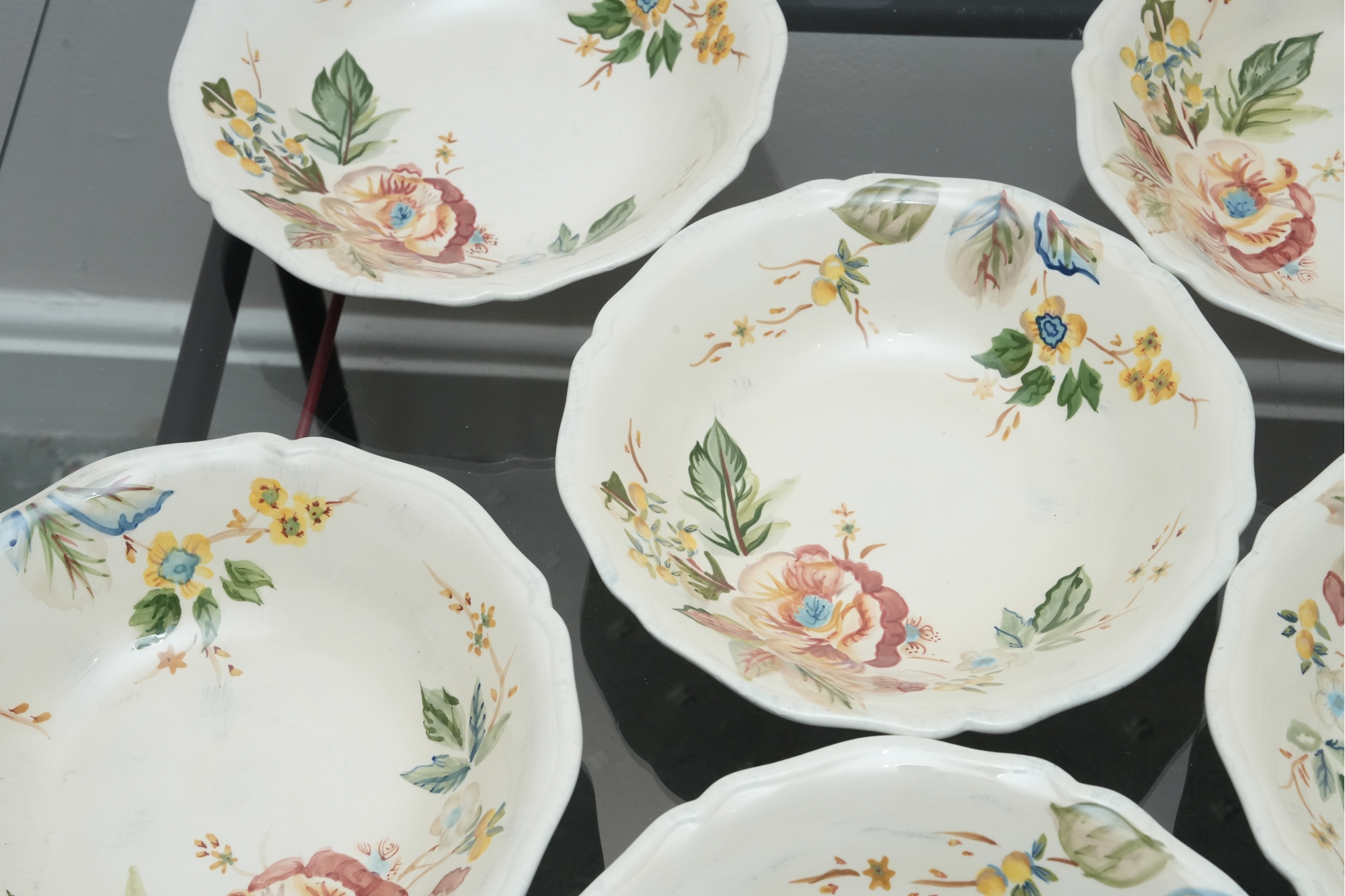 Set Of Six Floral Pattern Porcelain Dessert Bowls