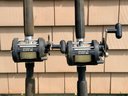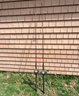 Good used condition with noticeable wear including surface corrosion and oxidation on reel components, scuffing to rods and handles, and general signs of outdoor use