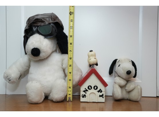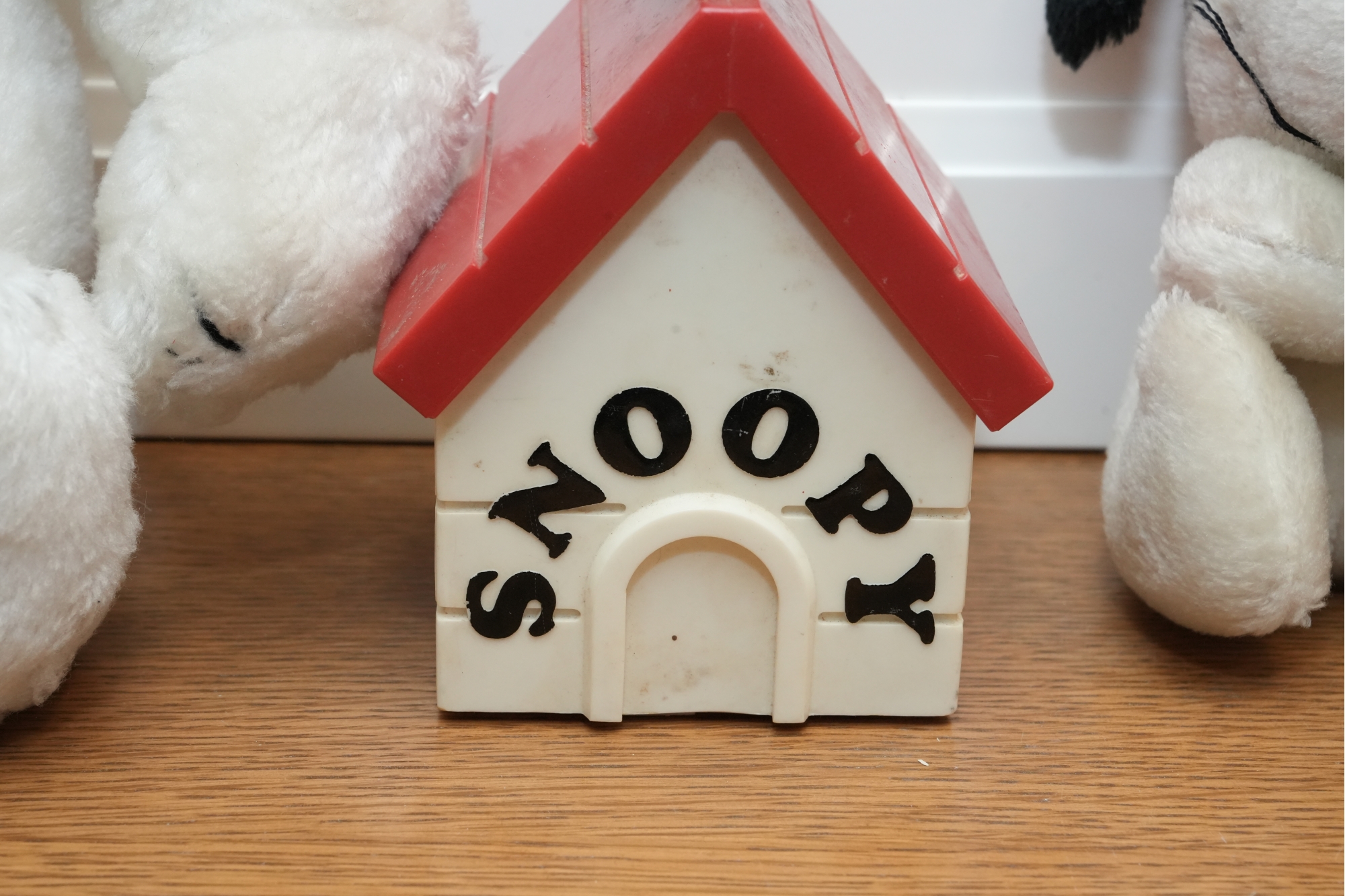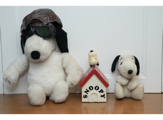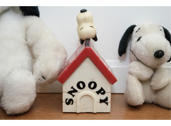Snoopy Plush Figures And Snoopy Doghouse Bank