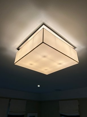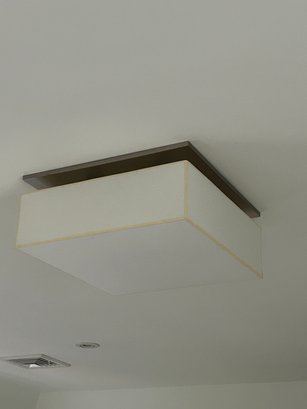 satin nickel metal finish with white linen shade - light will be taken down and ready for pickup
