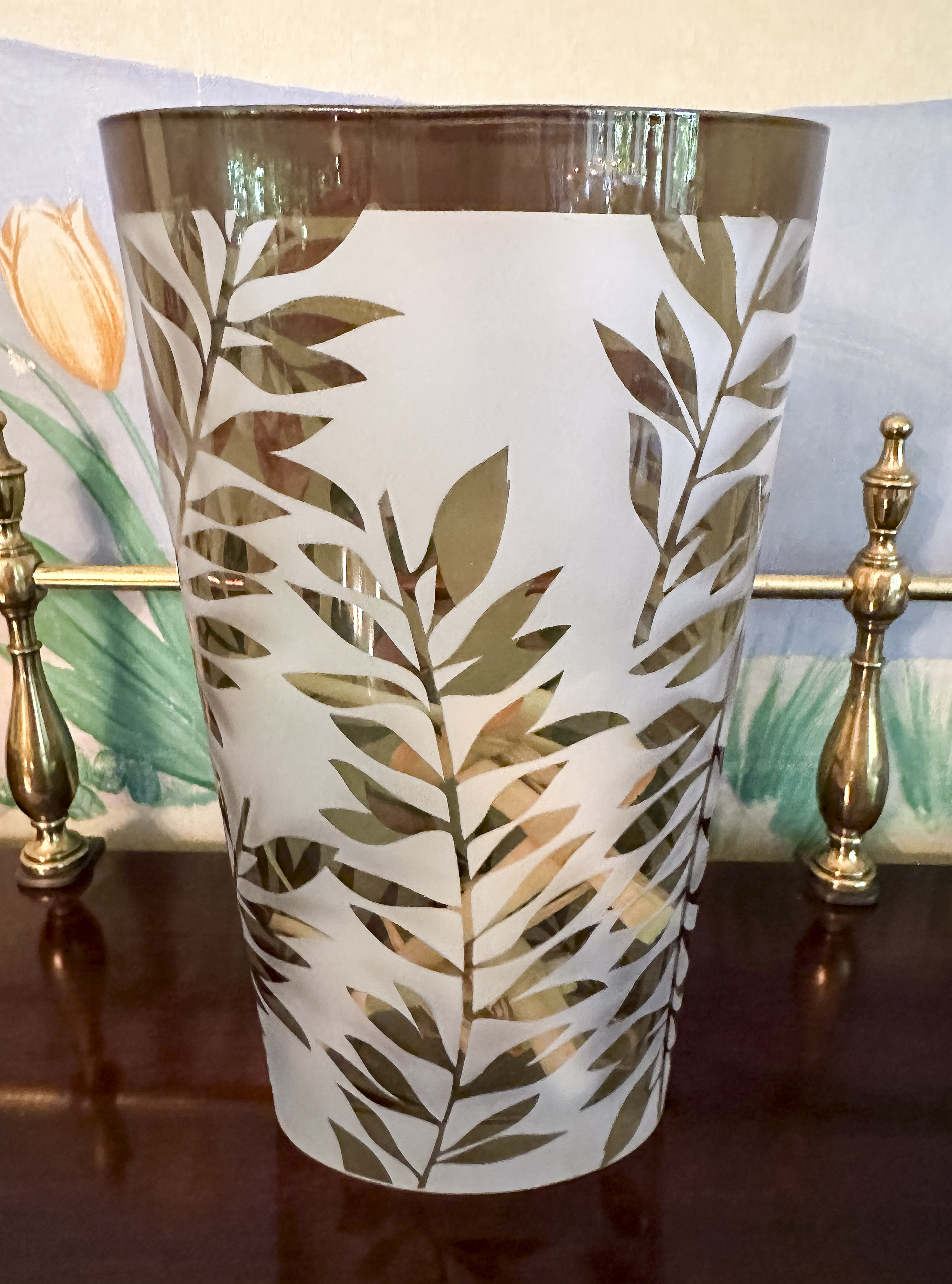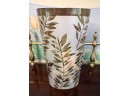 Tall Clouded Glass Vase With Gold Painted Leaves