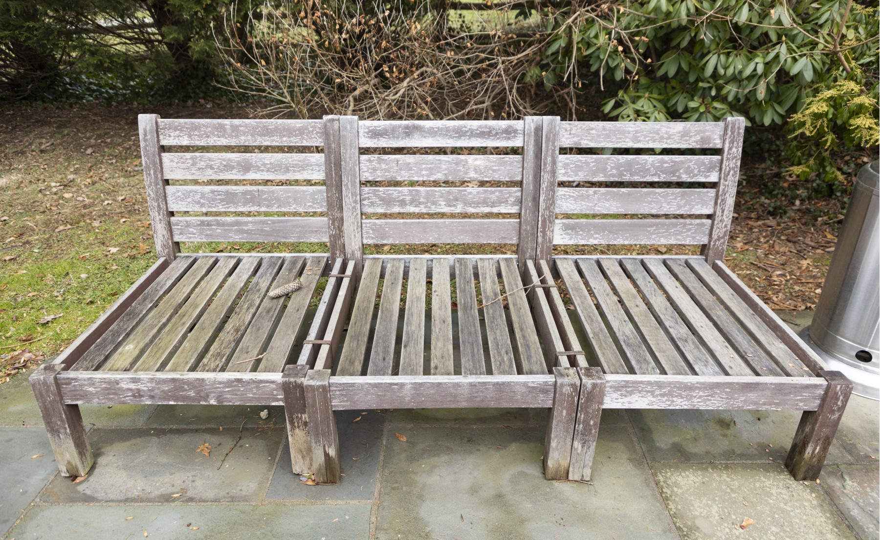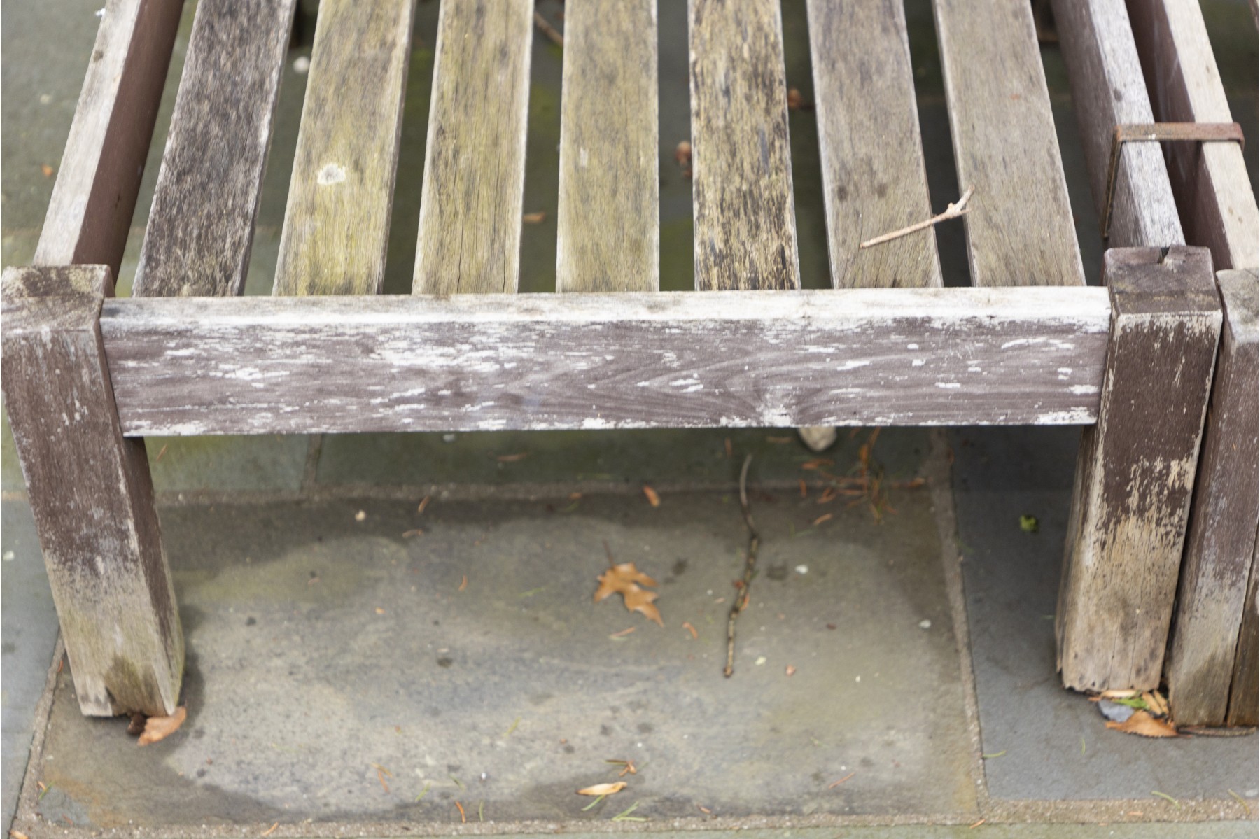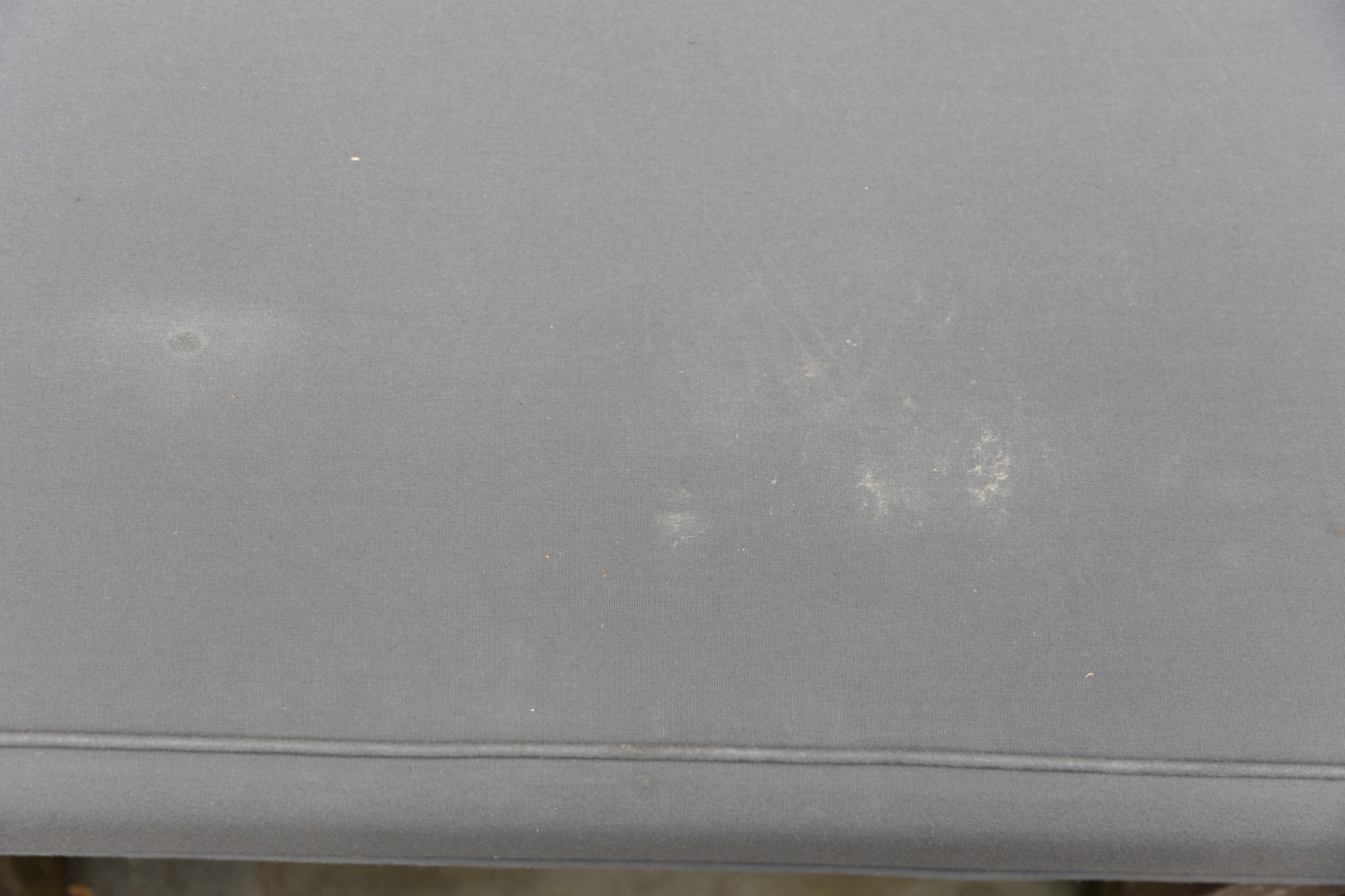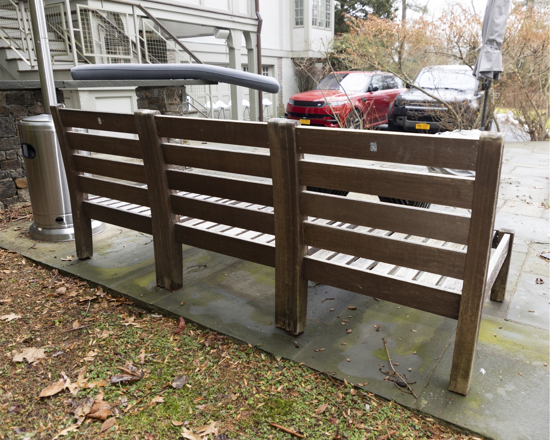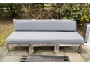 teak frame shows weathering and needs to be polished to bring back to life- cushion in good condition