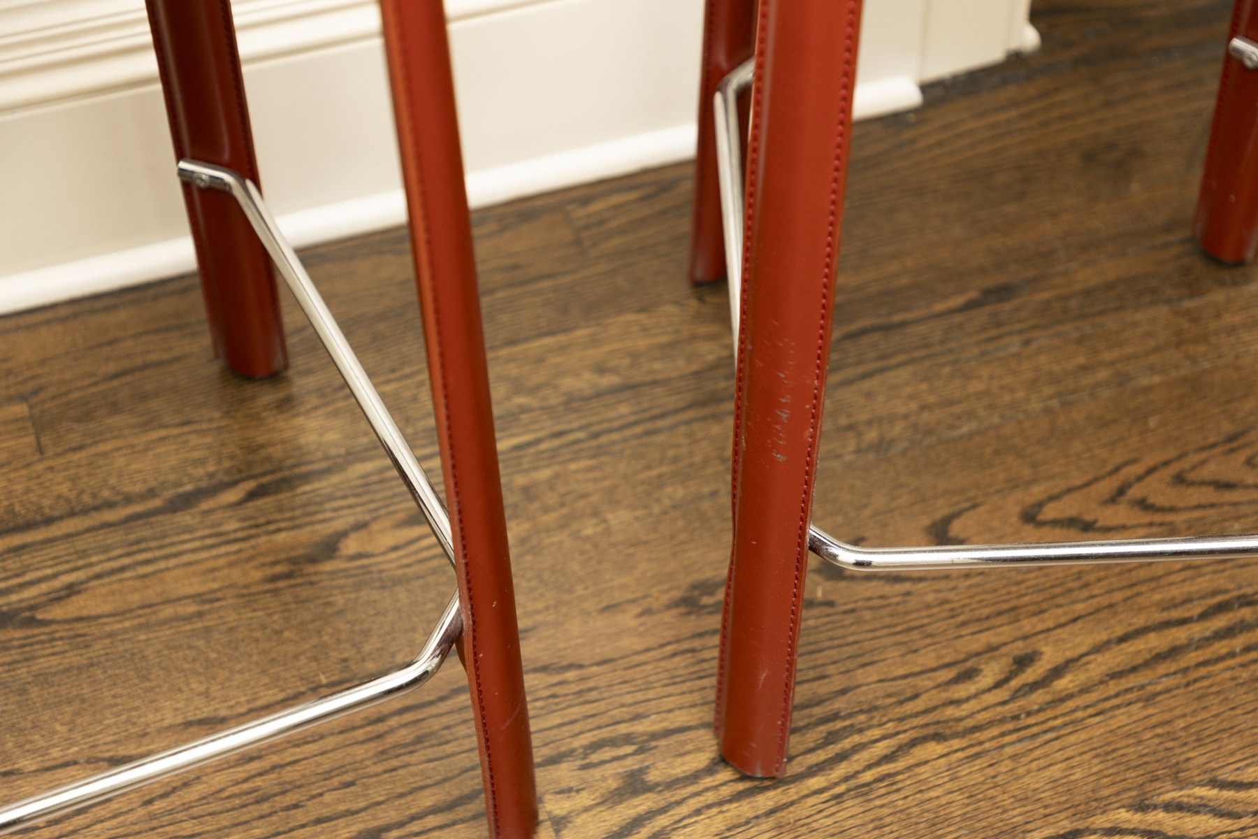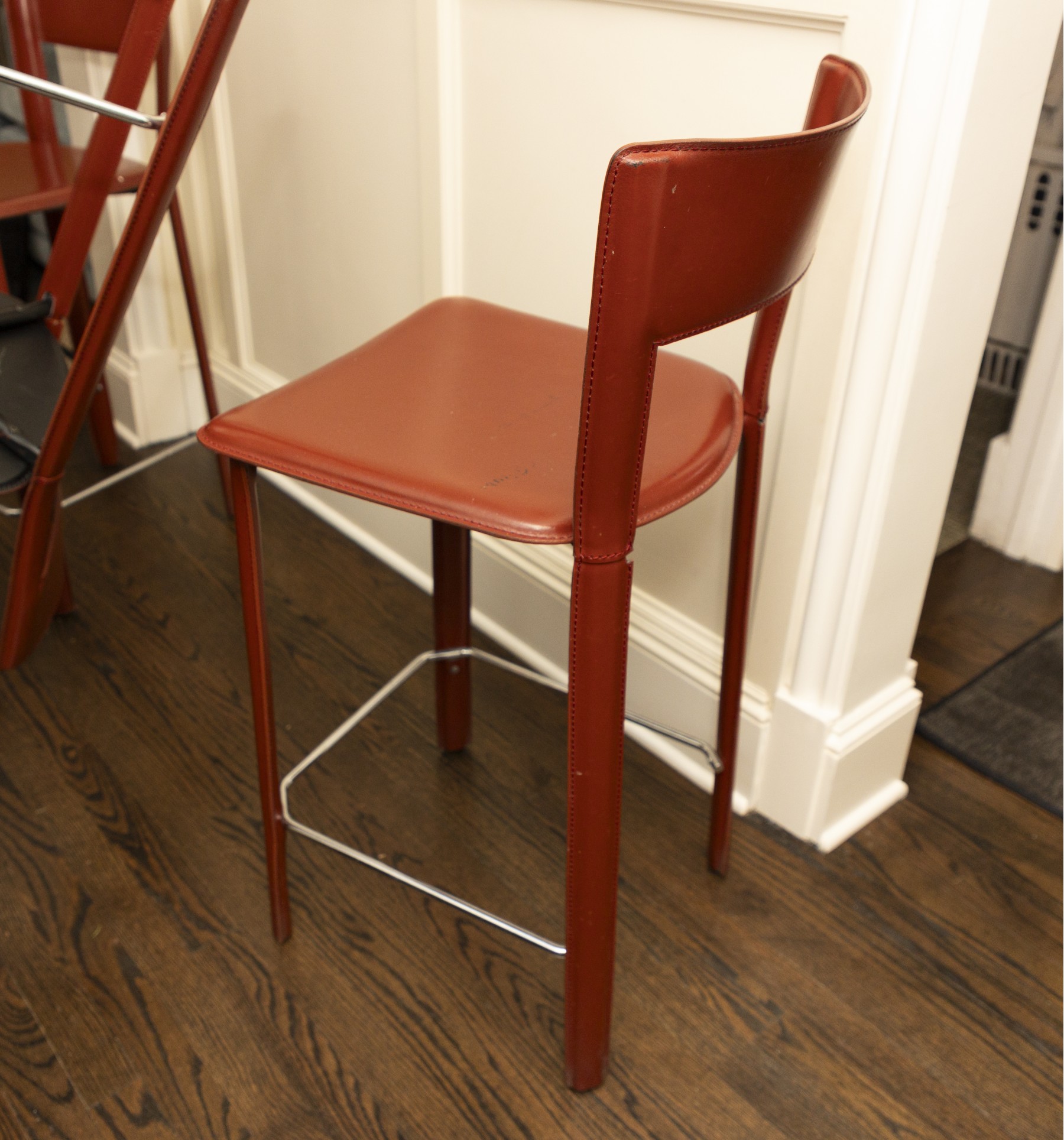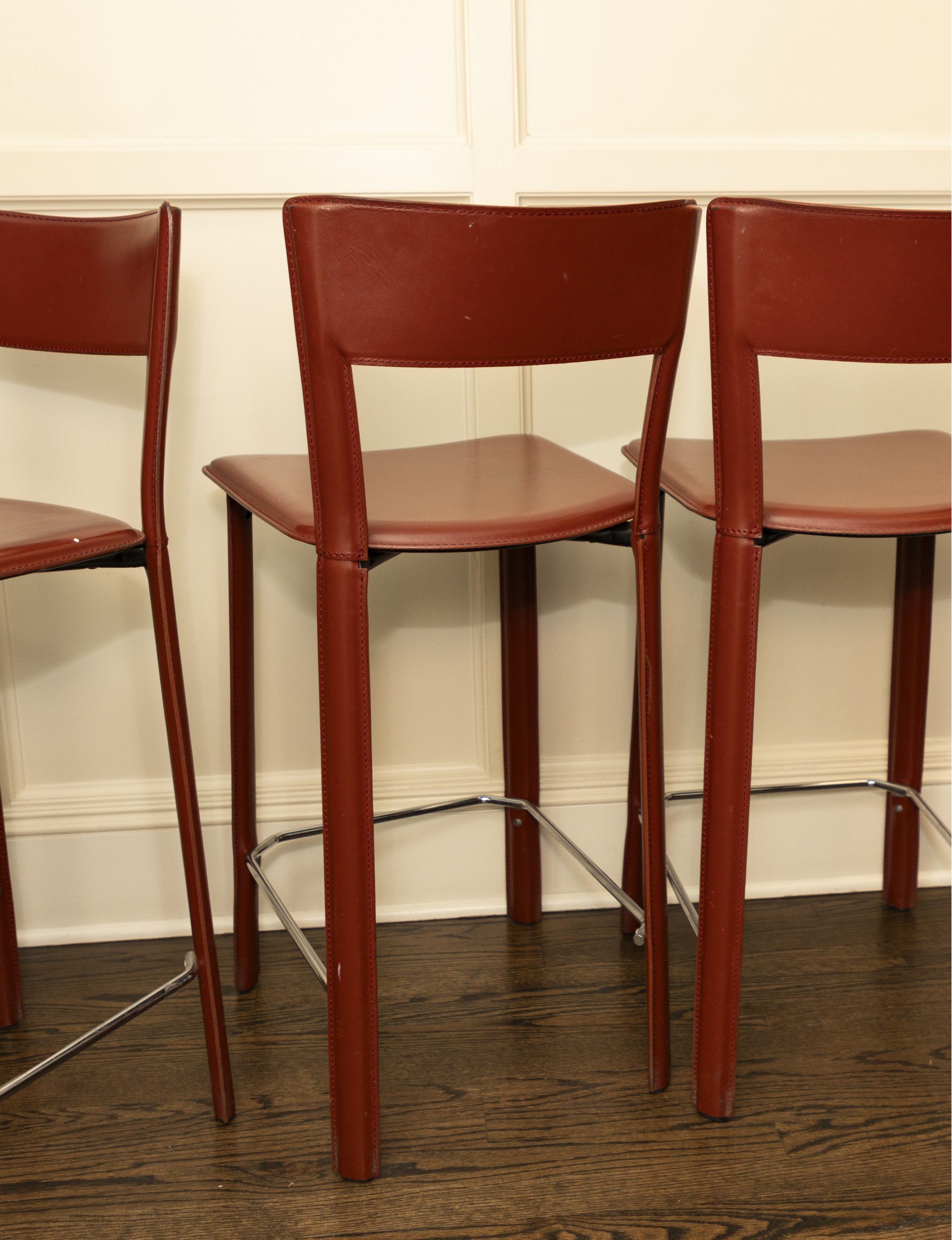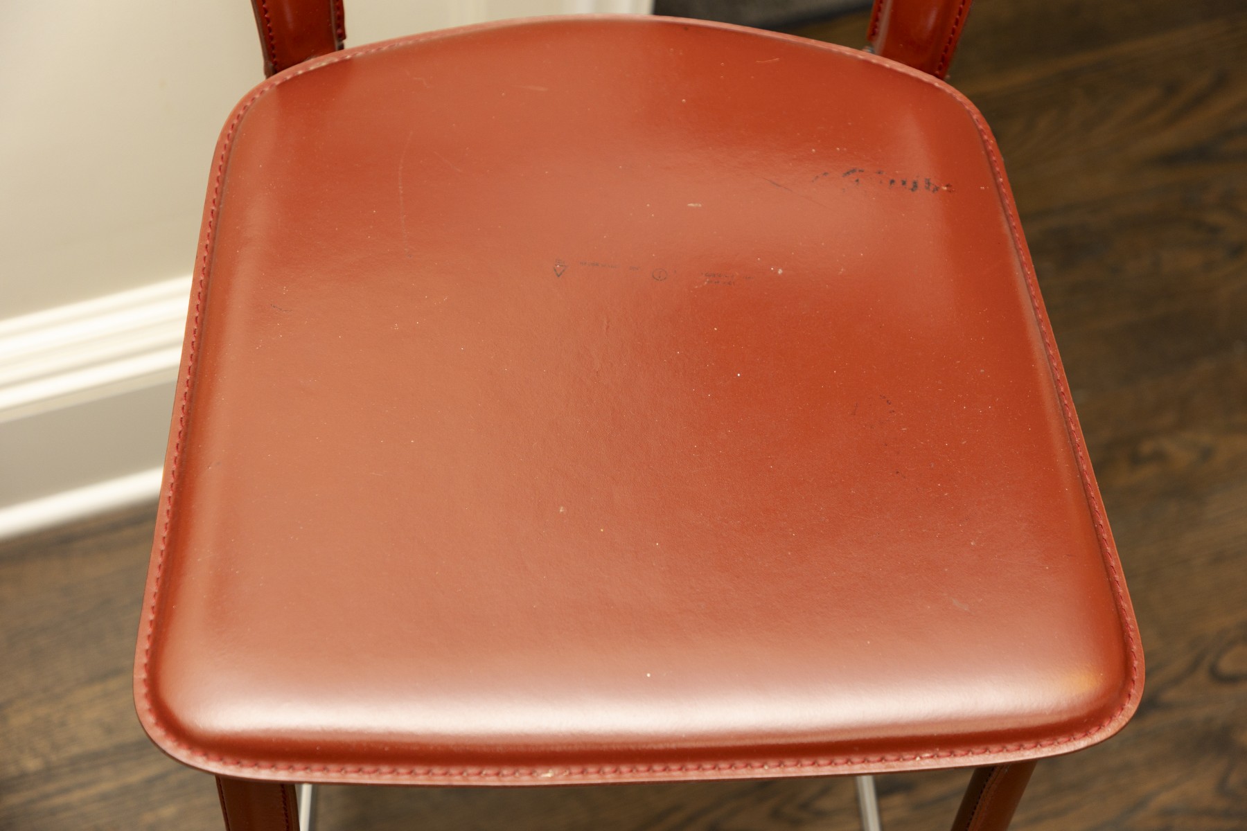 chairs in overall good condition with marks on the seats- will need some goo-gone to clean up the marks- Fantastic MCM italian stools
