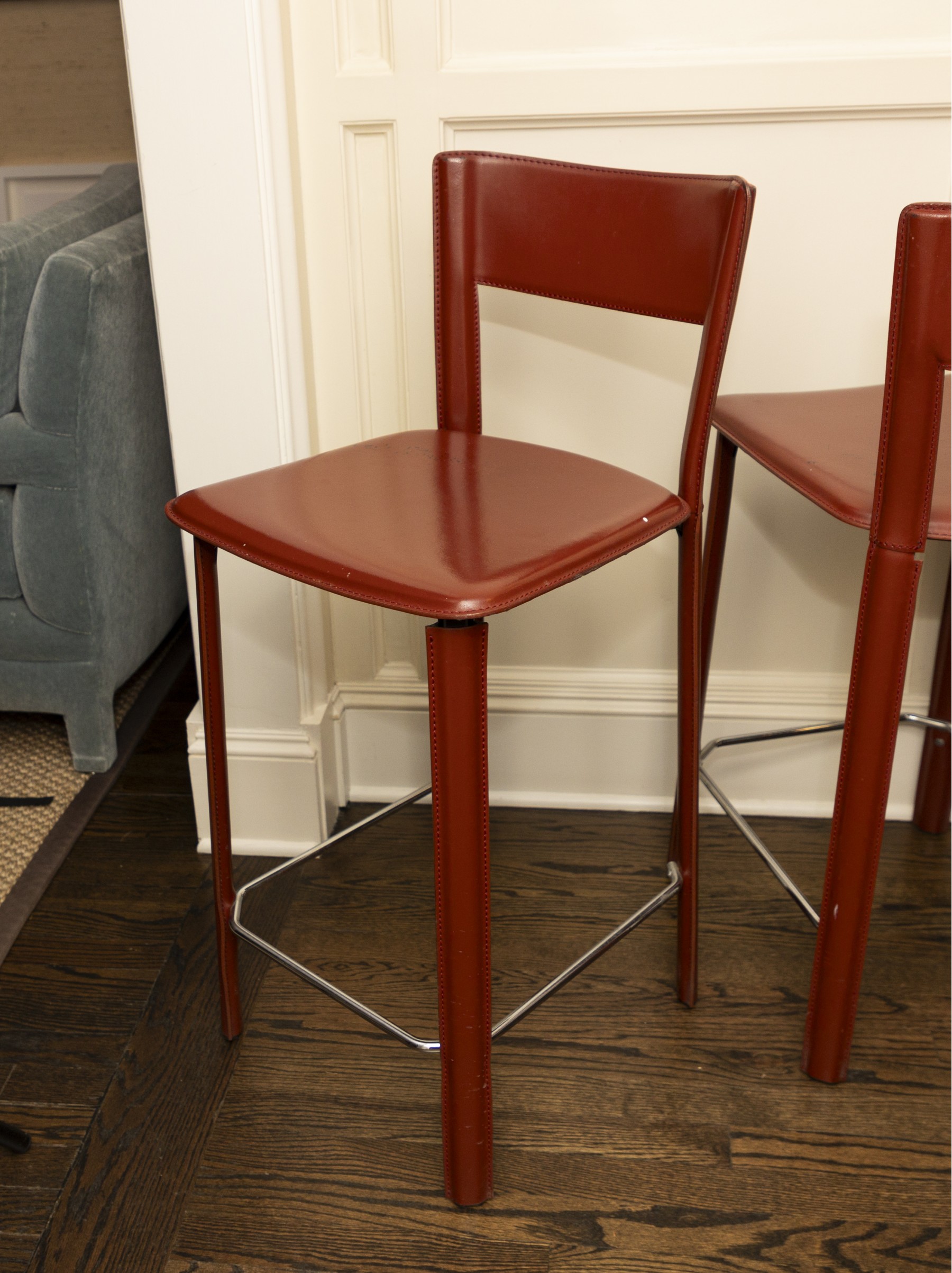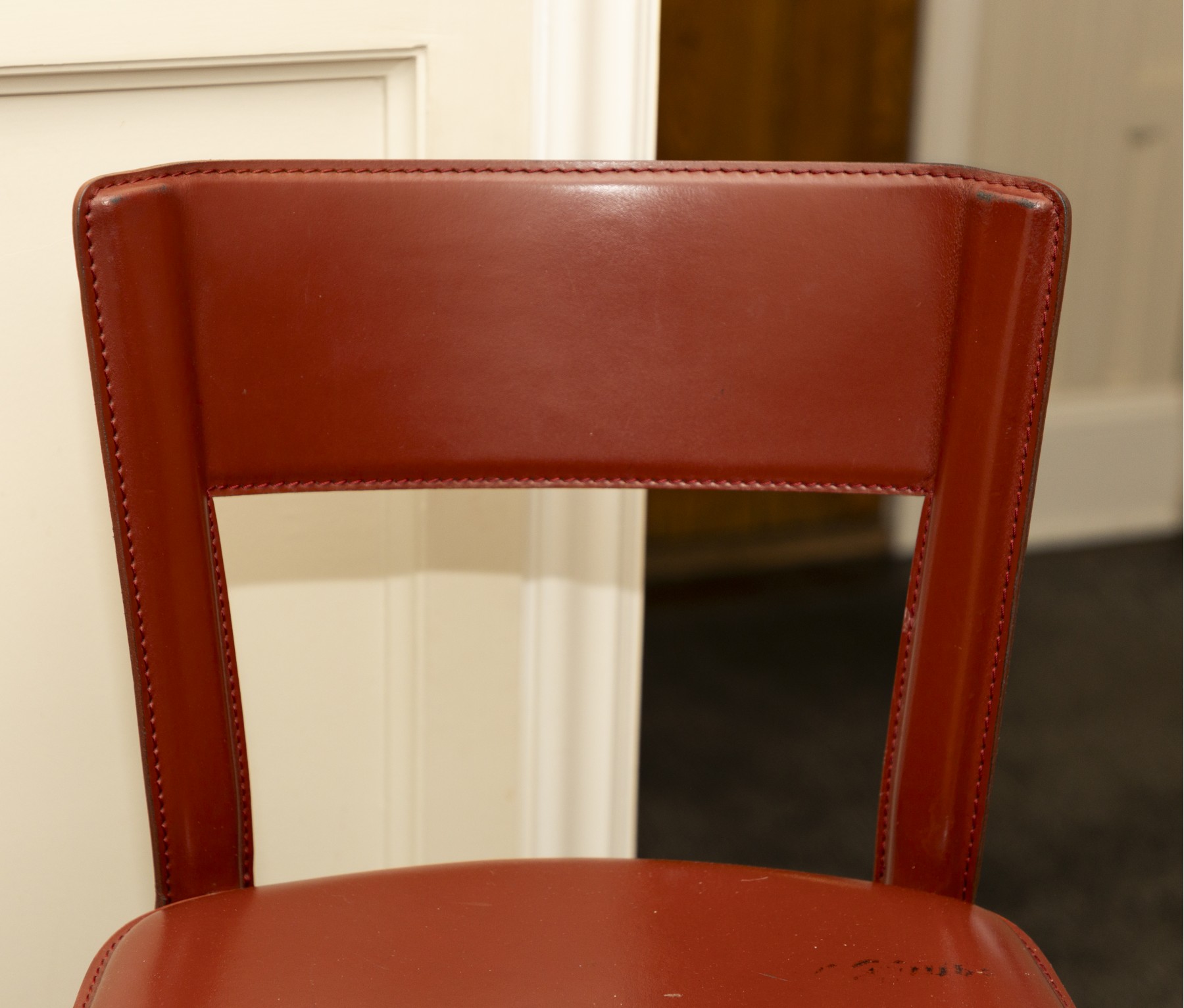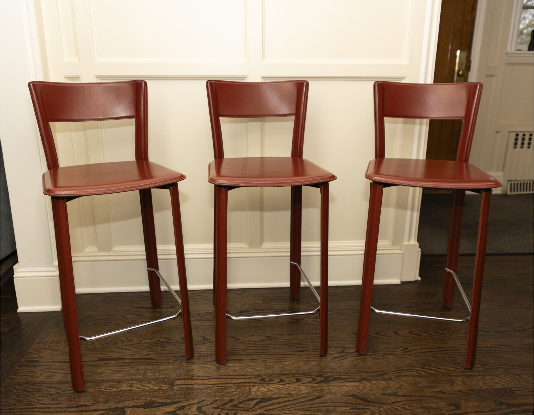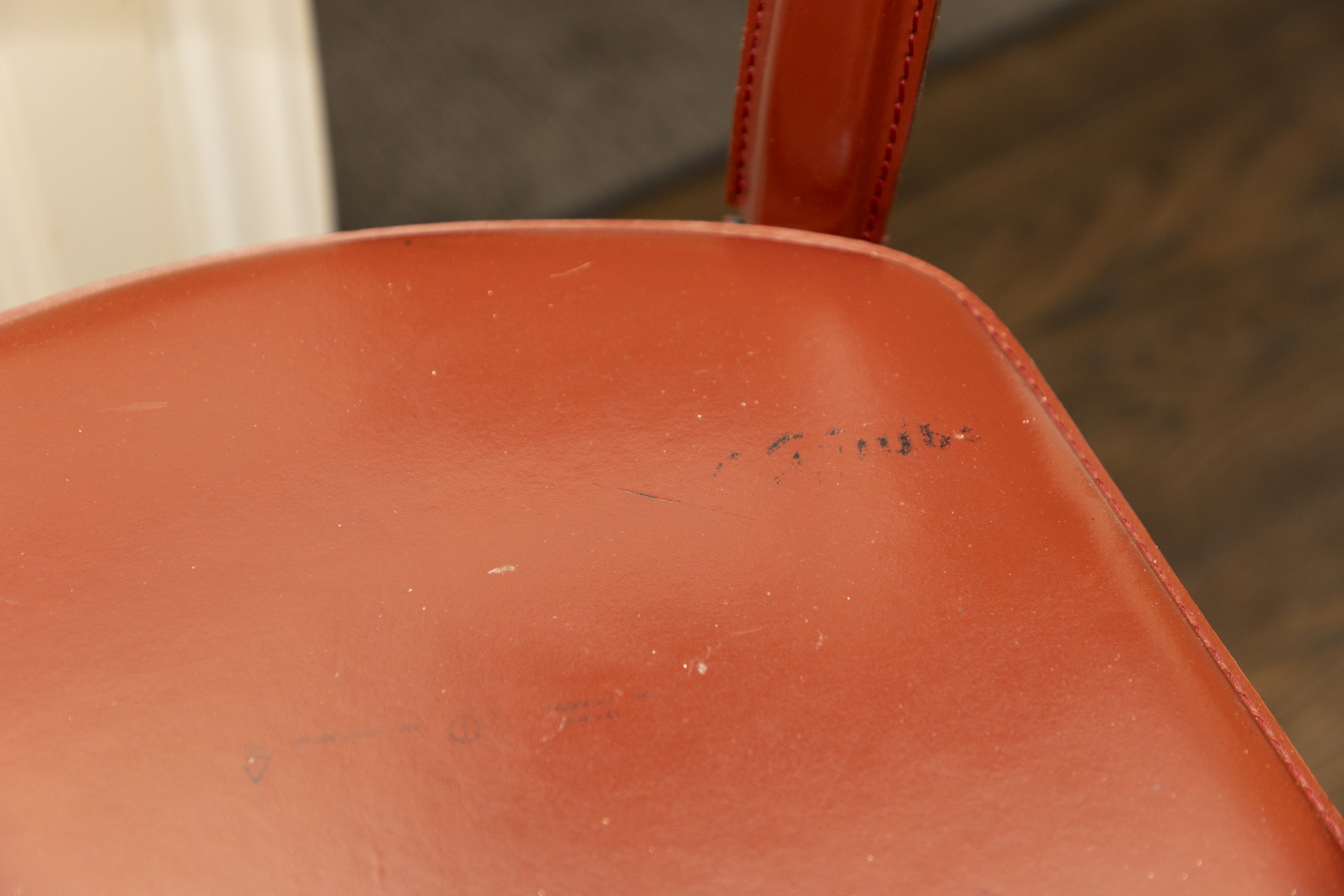 chairs in overall good condition with marks on the seats- will need some goo-gone to clean up the marks- Fantastic MCM italian stools