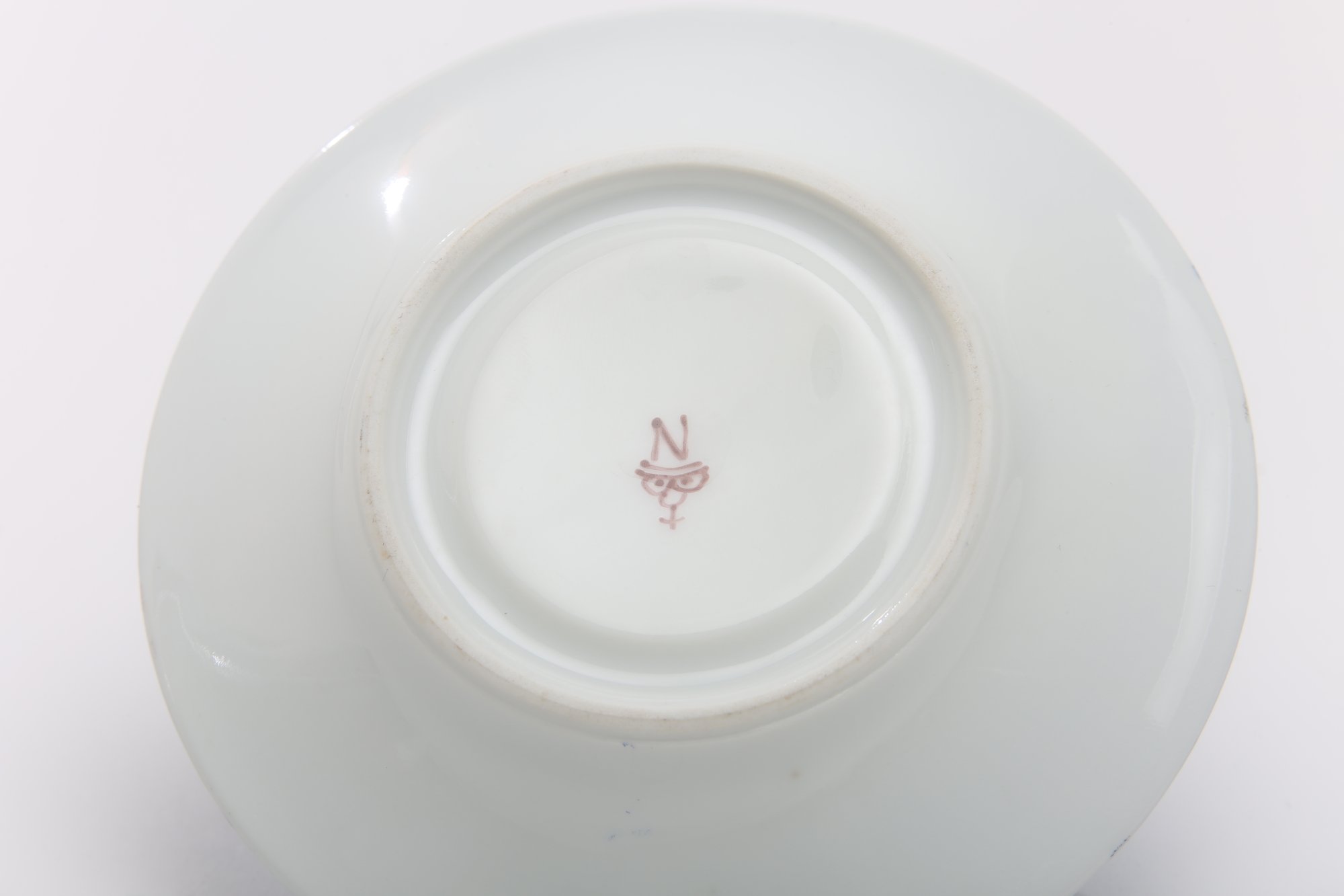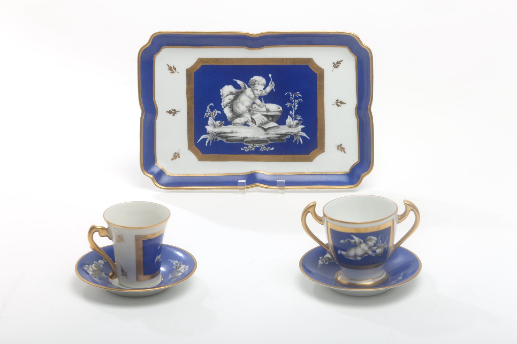 Plates 4 in, tray 9 x 6 in, cups 2.5 in