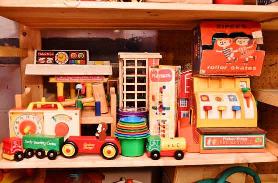 Toy Shelf 2 Including Vintage Fisher Price And Play School