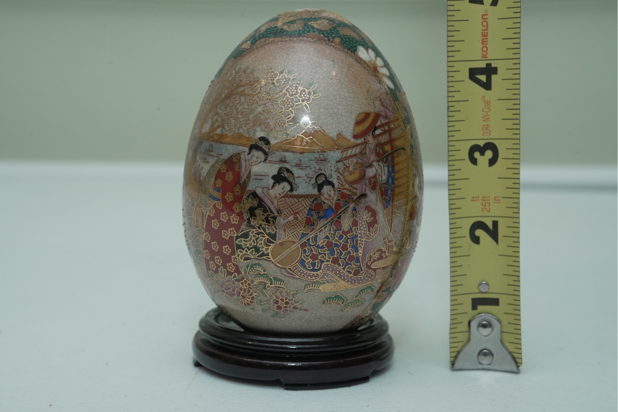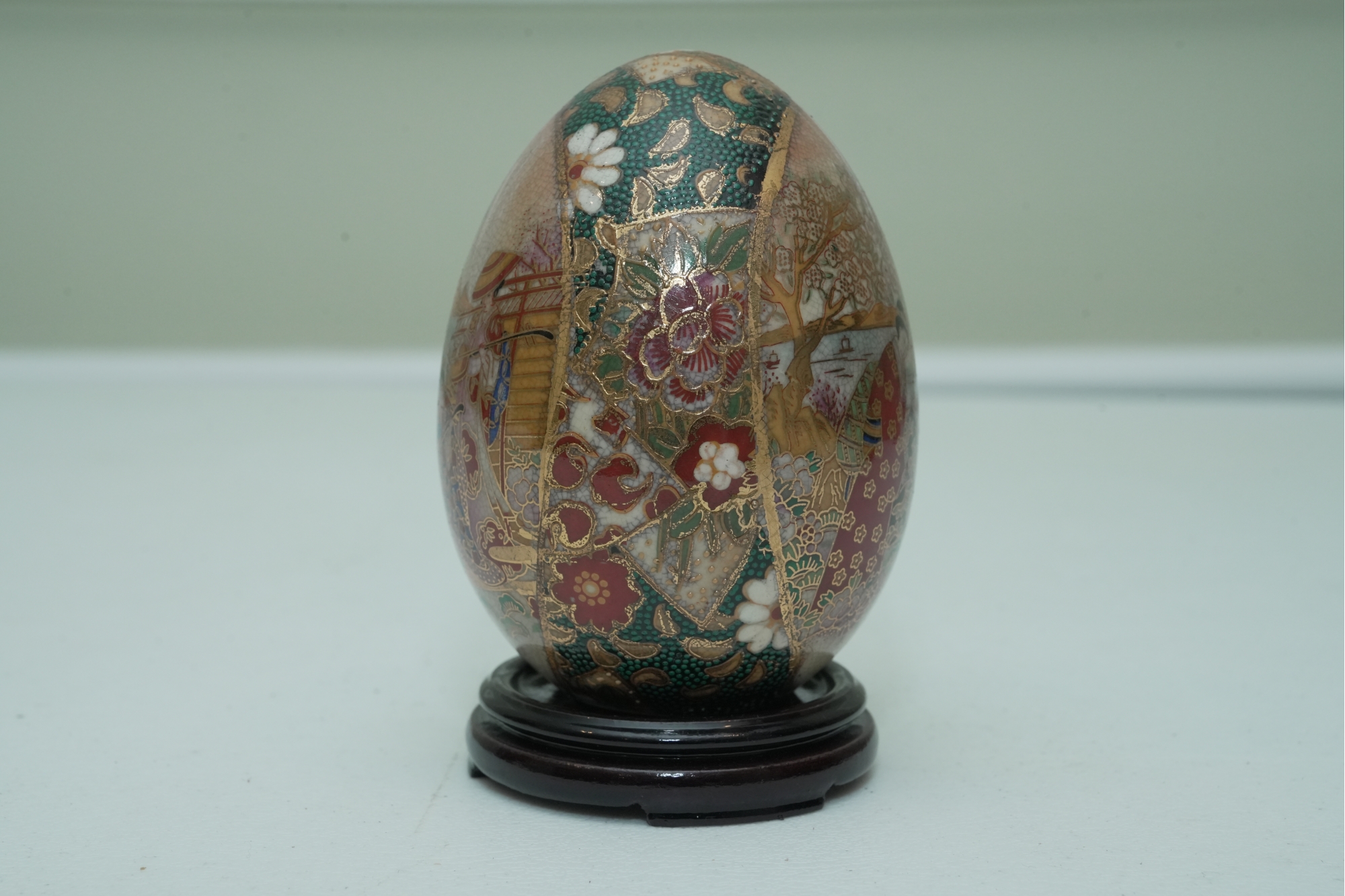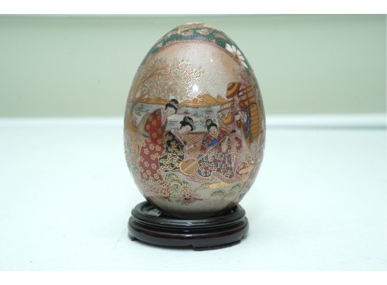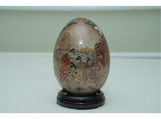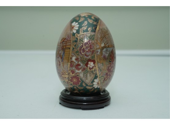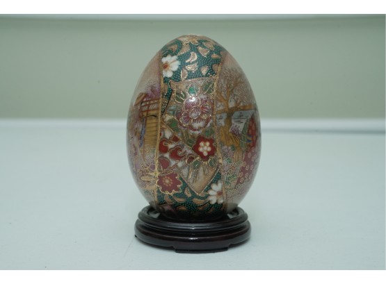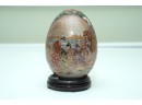 Intricately Painted Asian Decorative Egg On Wooden Stand