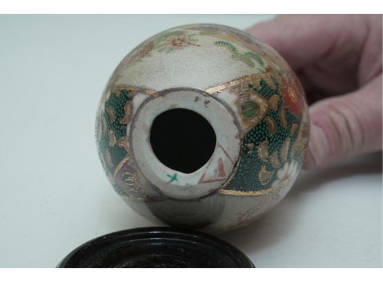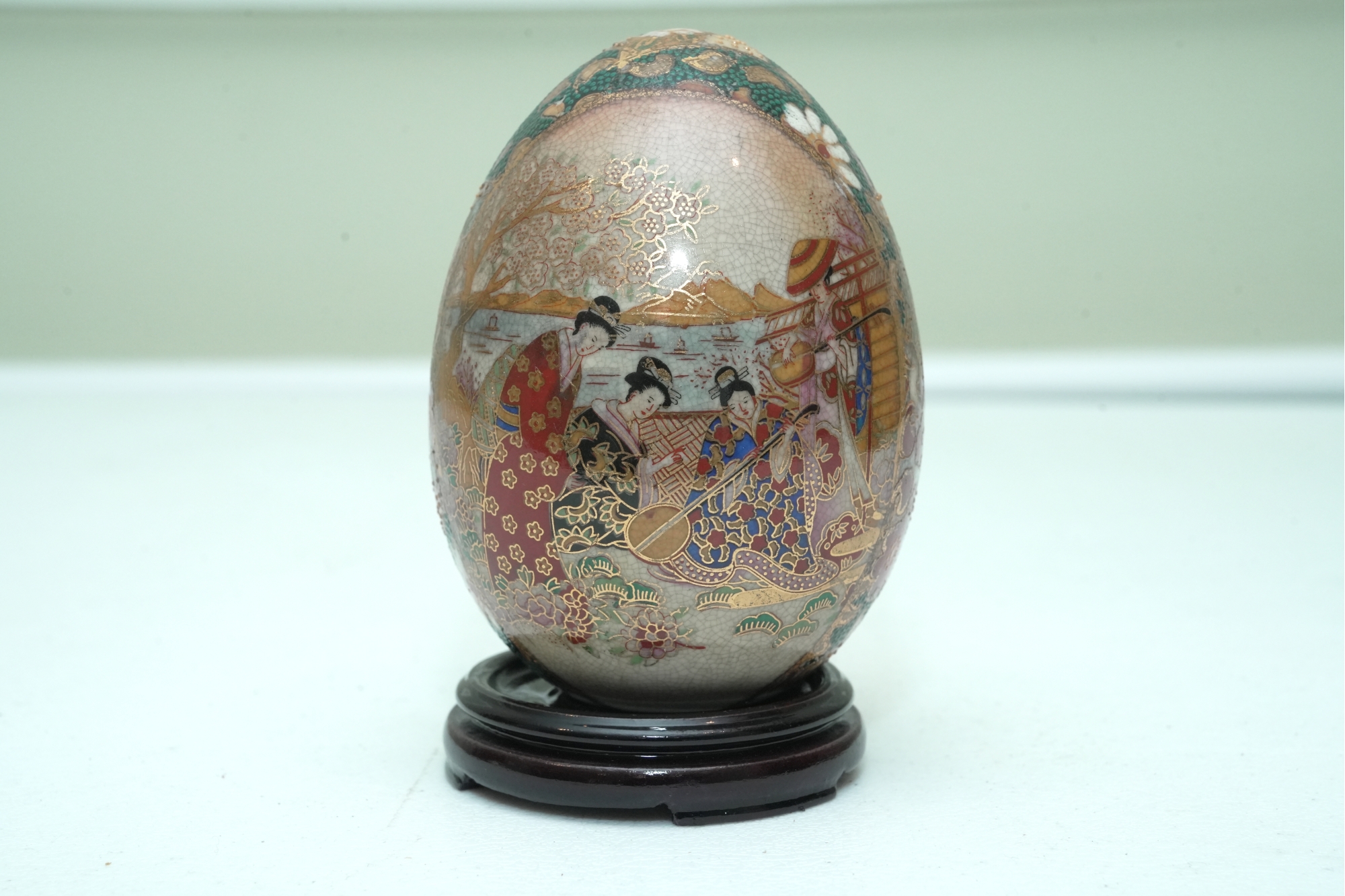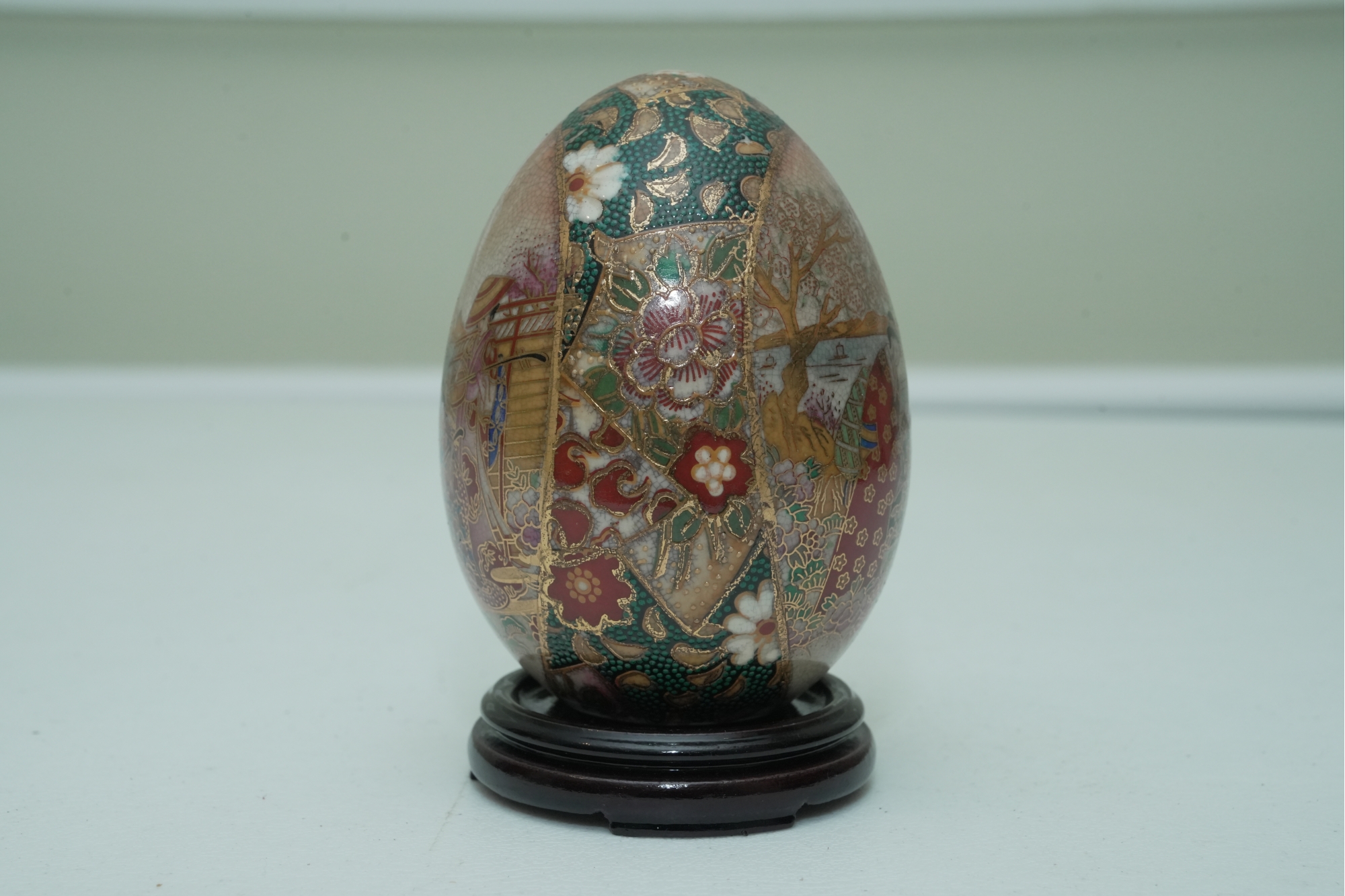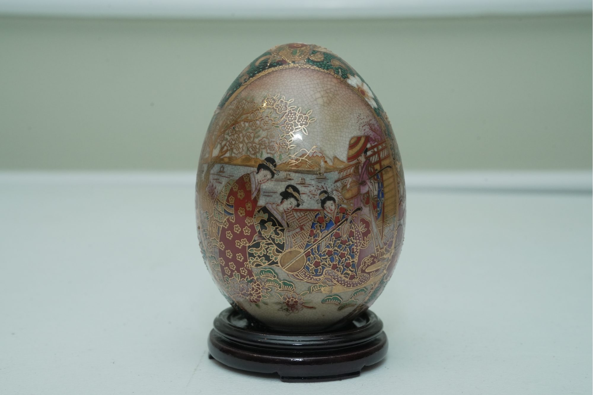 Intricately Painted Asian Decorative Egg On Wooden Stand