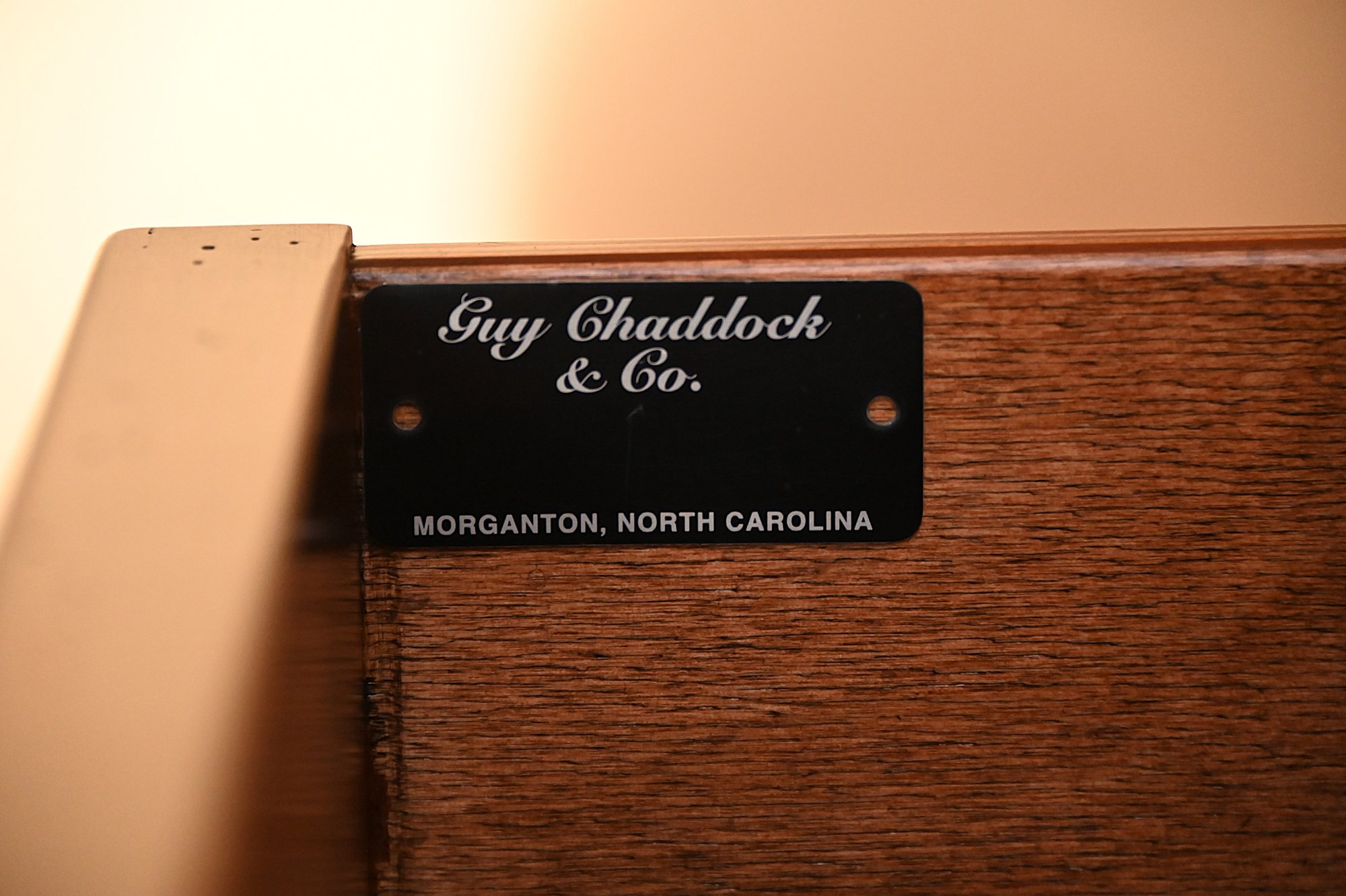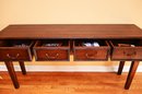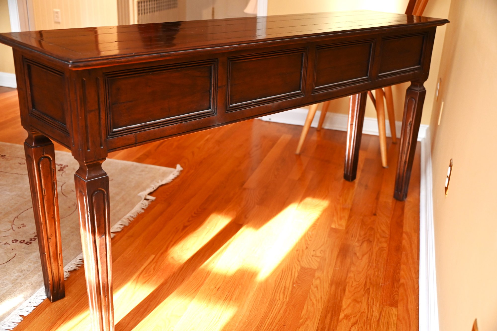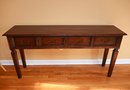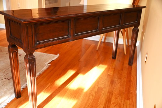 This Guy Chaddock console table exhibits the classic craftsmanship and design The table features a rich, warm wood finish with a subtly distressed patina, enhancing its traditional and elegant character.