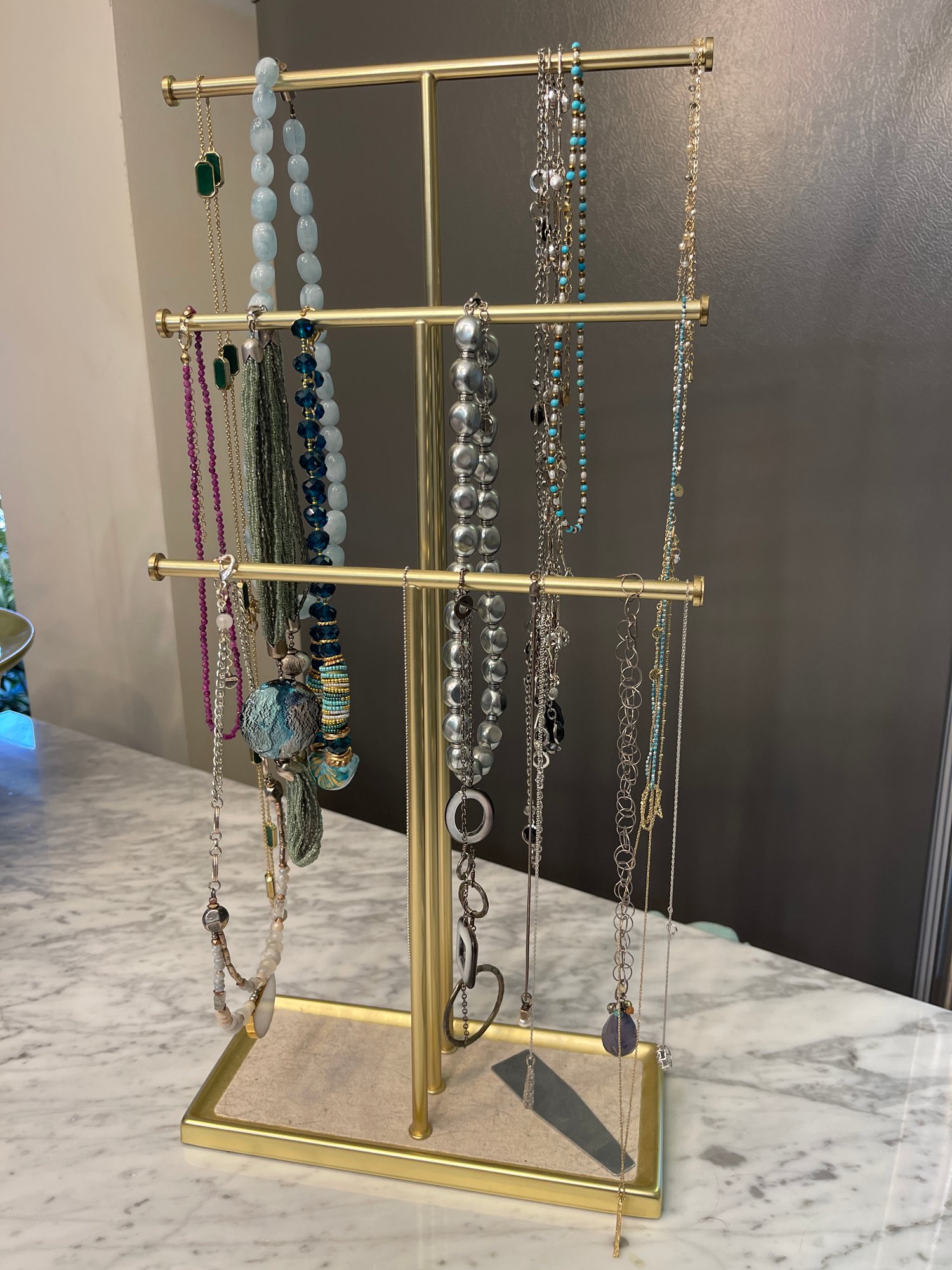 Selection of necklaces including the brass stand. All are in good condition.