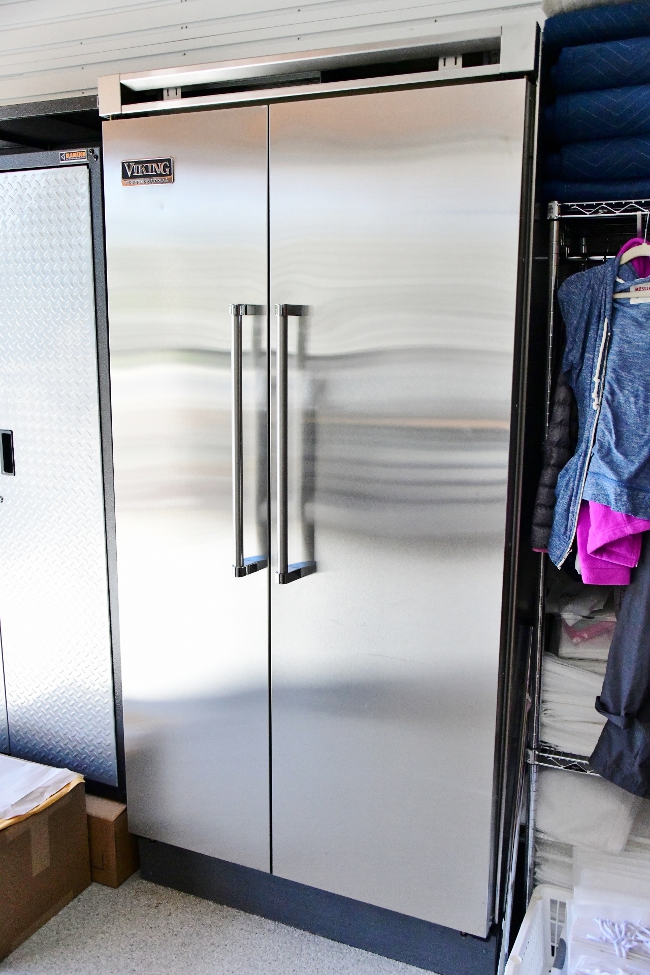 Fully functional deluxe refrigerator/freezer. Recent servicing performed by technician, completely operational. There is some minor imperfections such as the cracked plastic in the inner door compartment and a minor dent on the outer face under the Viking tag.