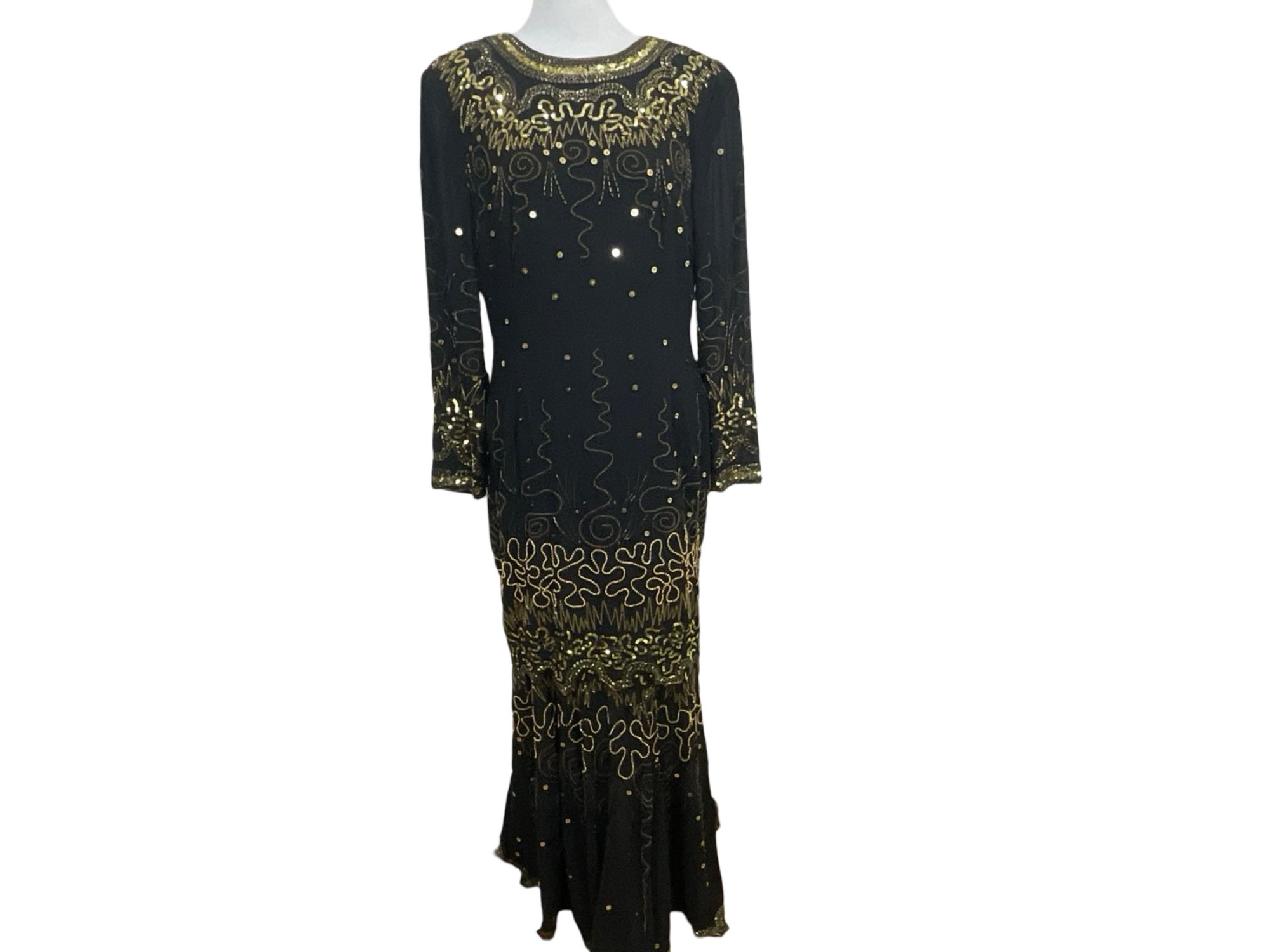 Vintage Fabrice Silhouette Black Gown With Gold Beading