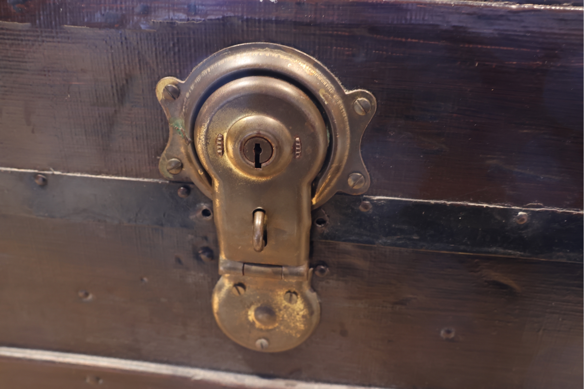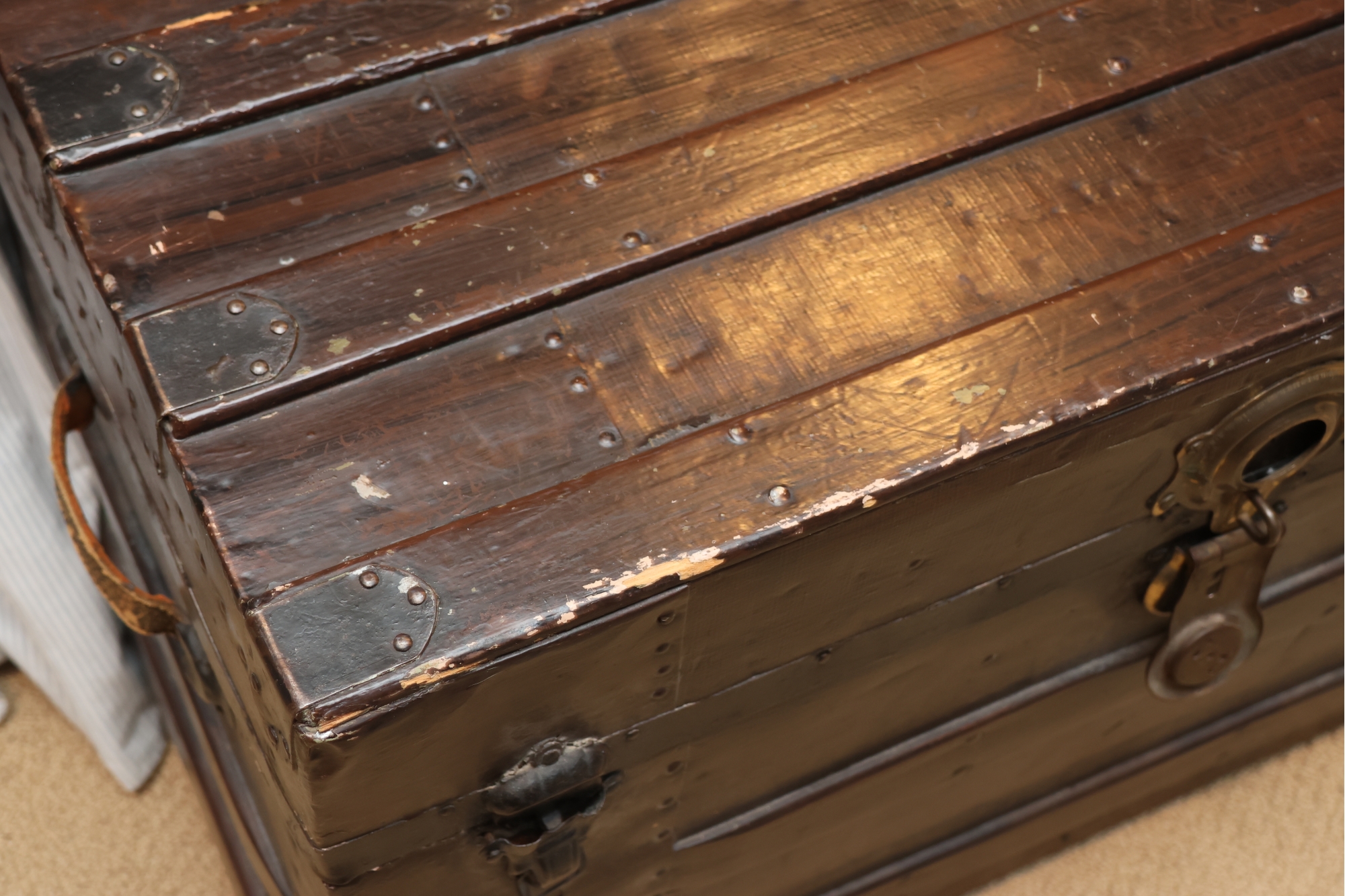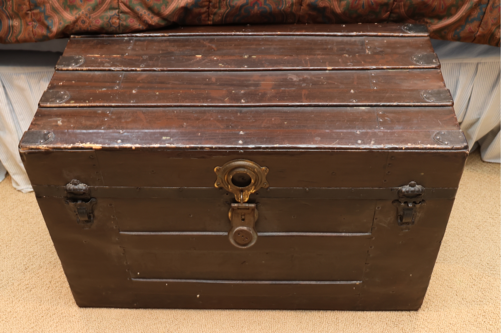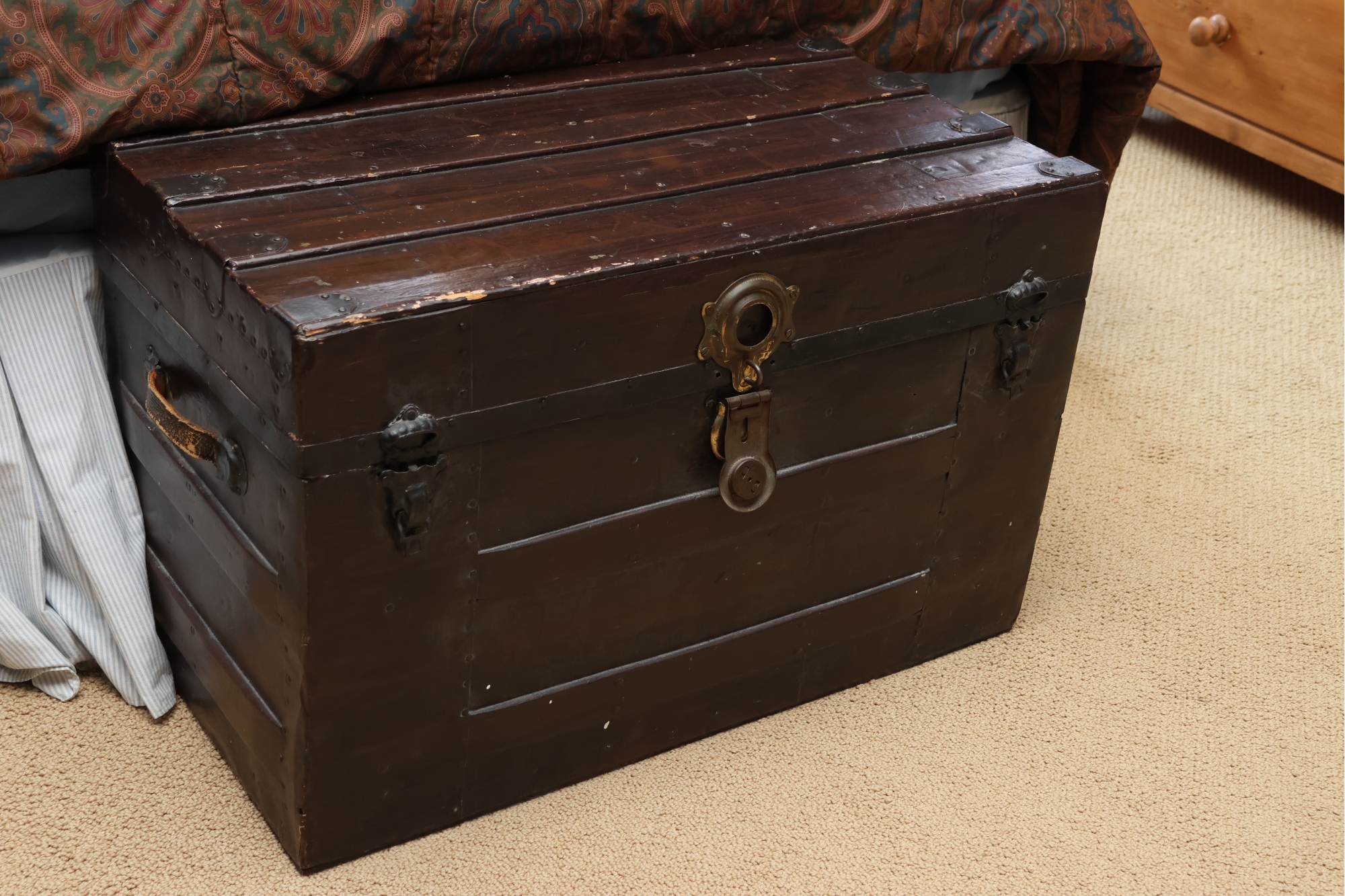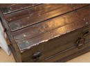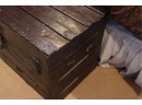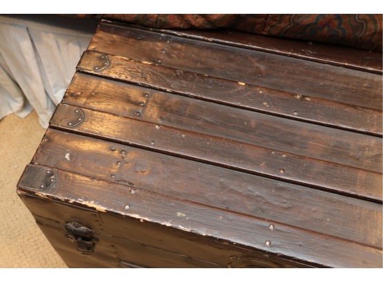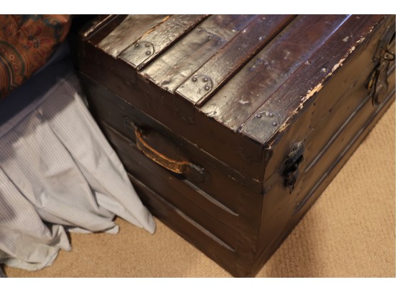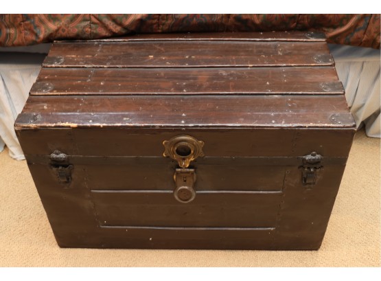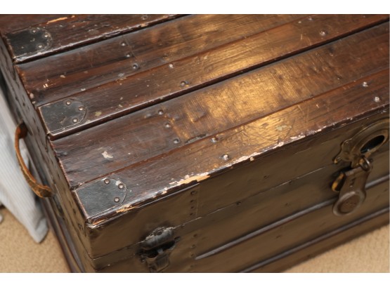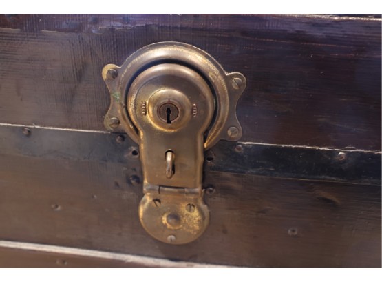 Vintage Storage Trunk With Metal Straps And Brass Lock