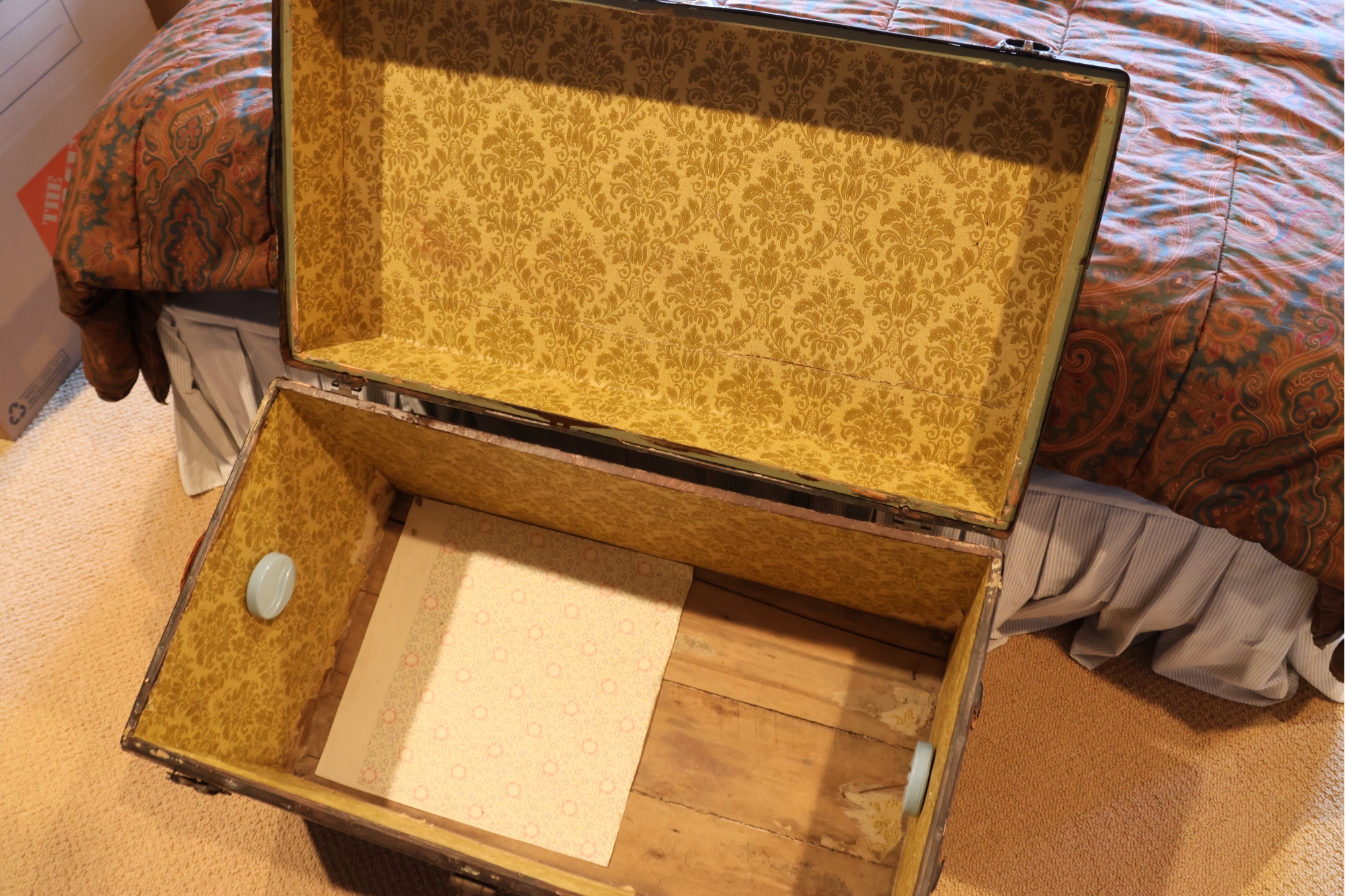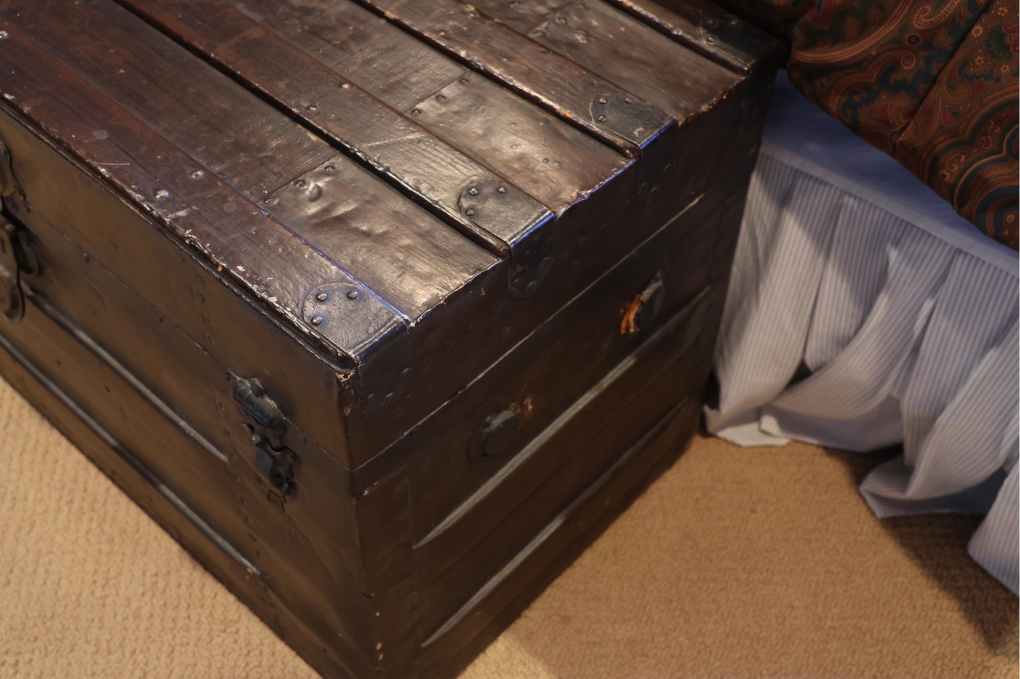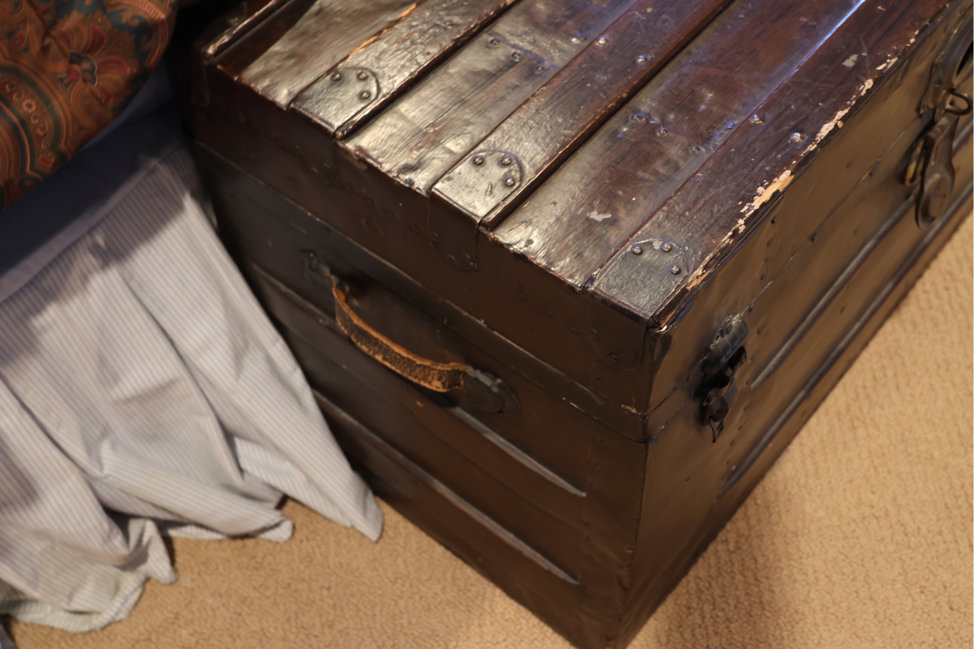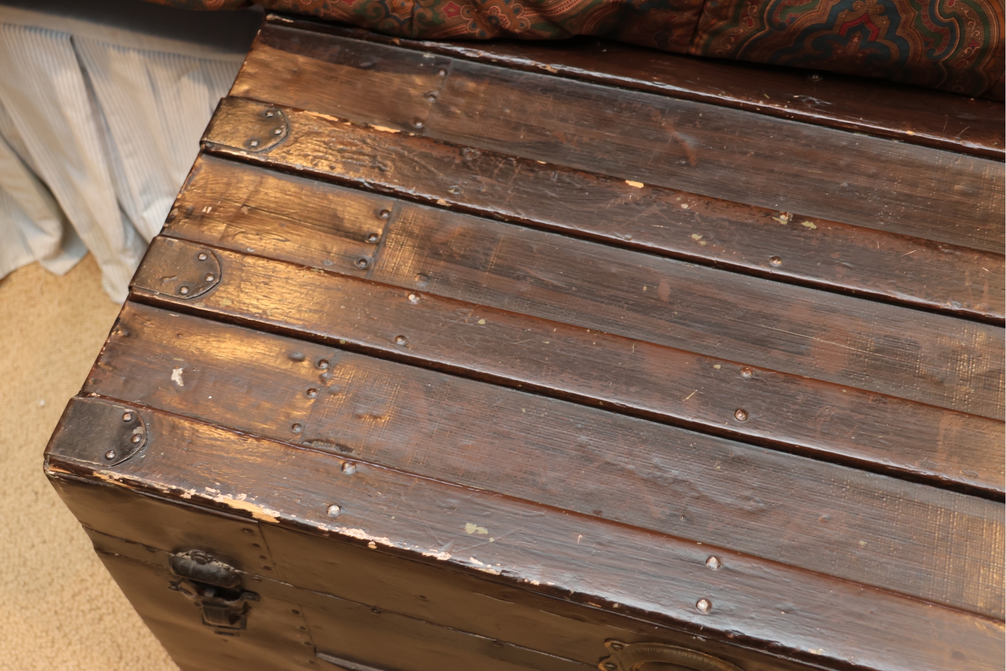 Vintage Storage Trunk With Metal Straps And Brass Lock
