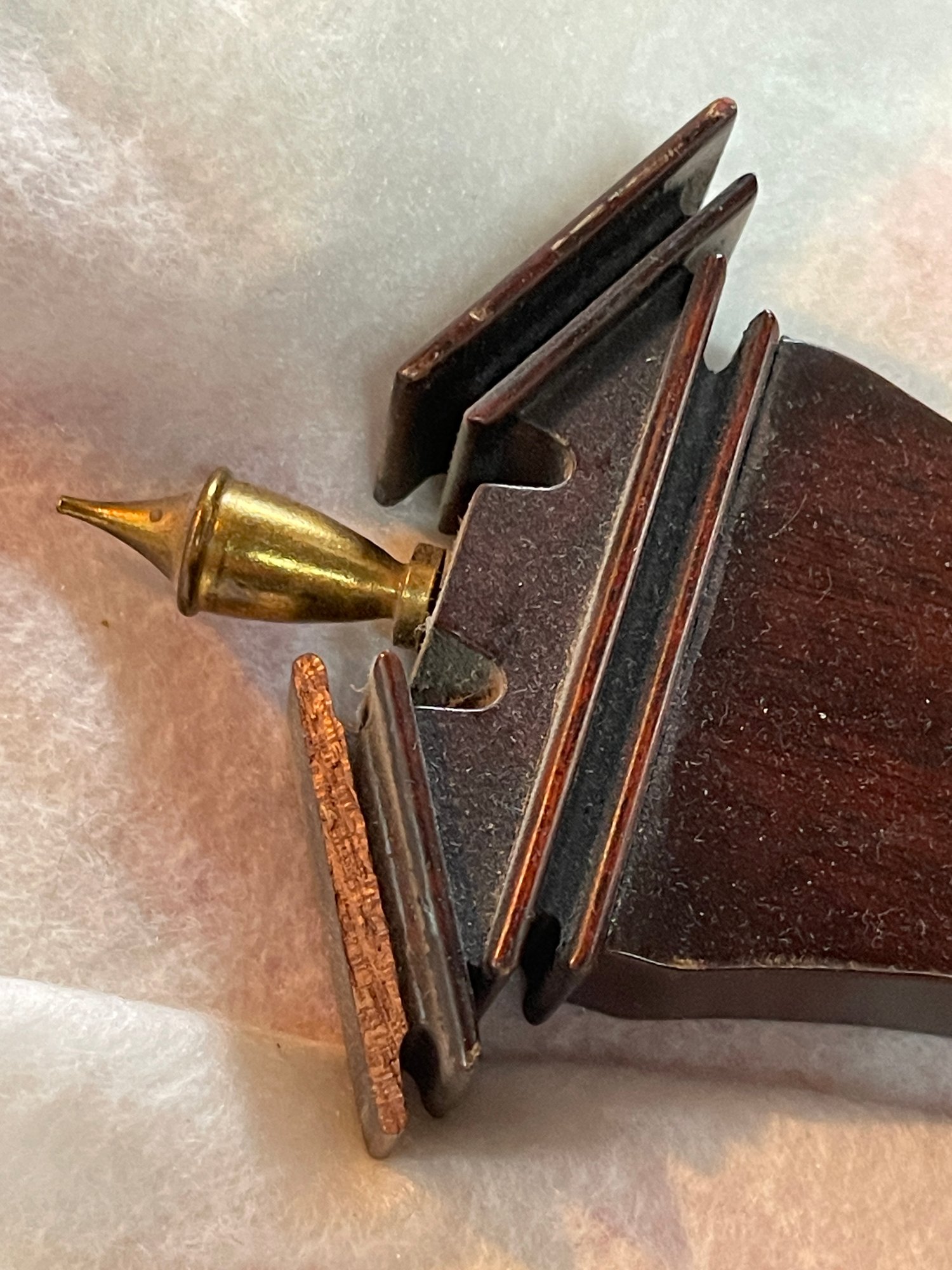 good used condition with a Chip to the top as shown with a gold tone finial topping the item