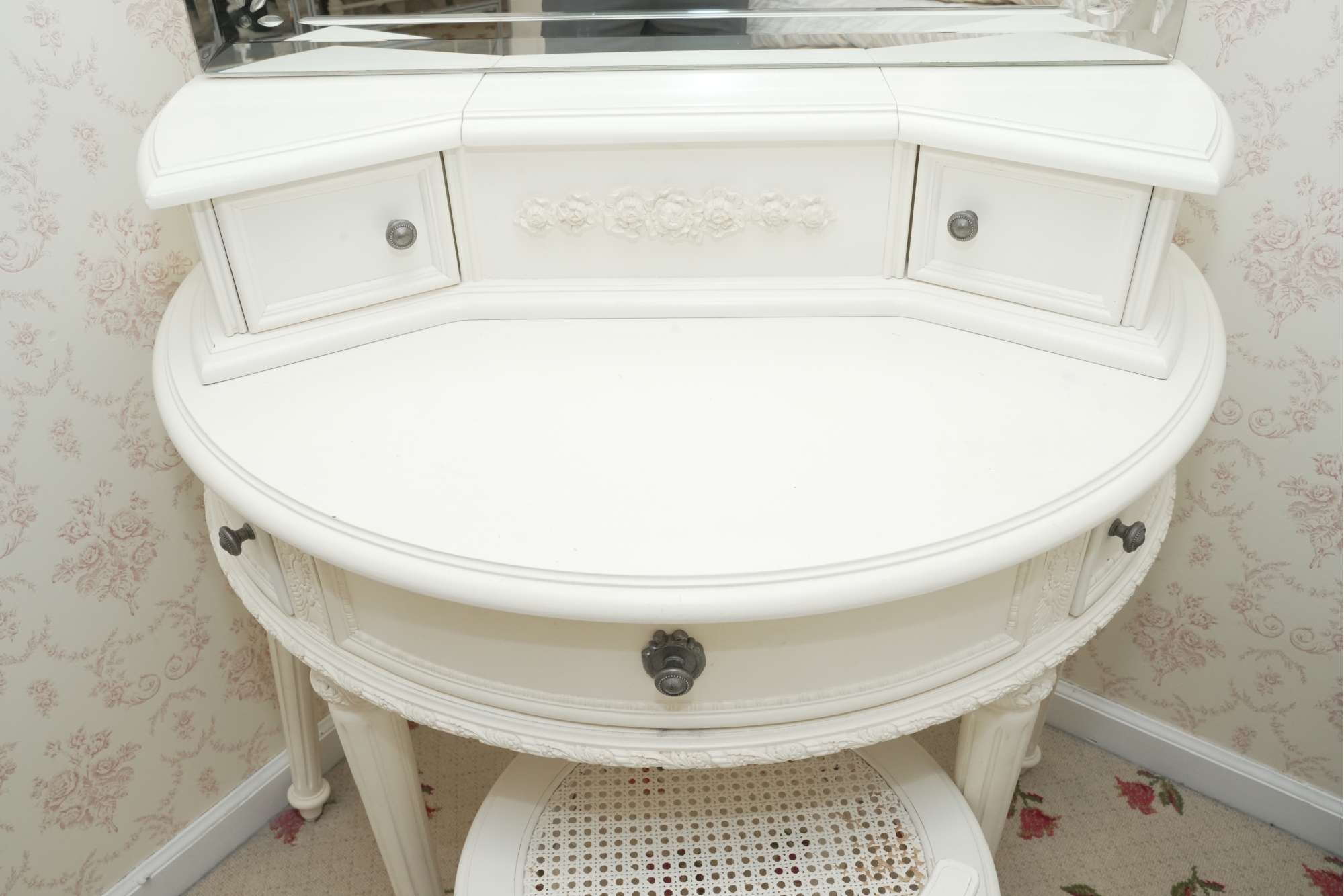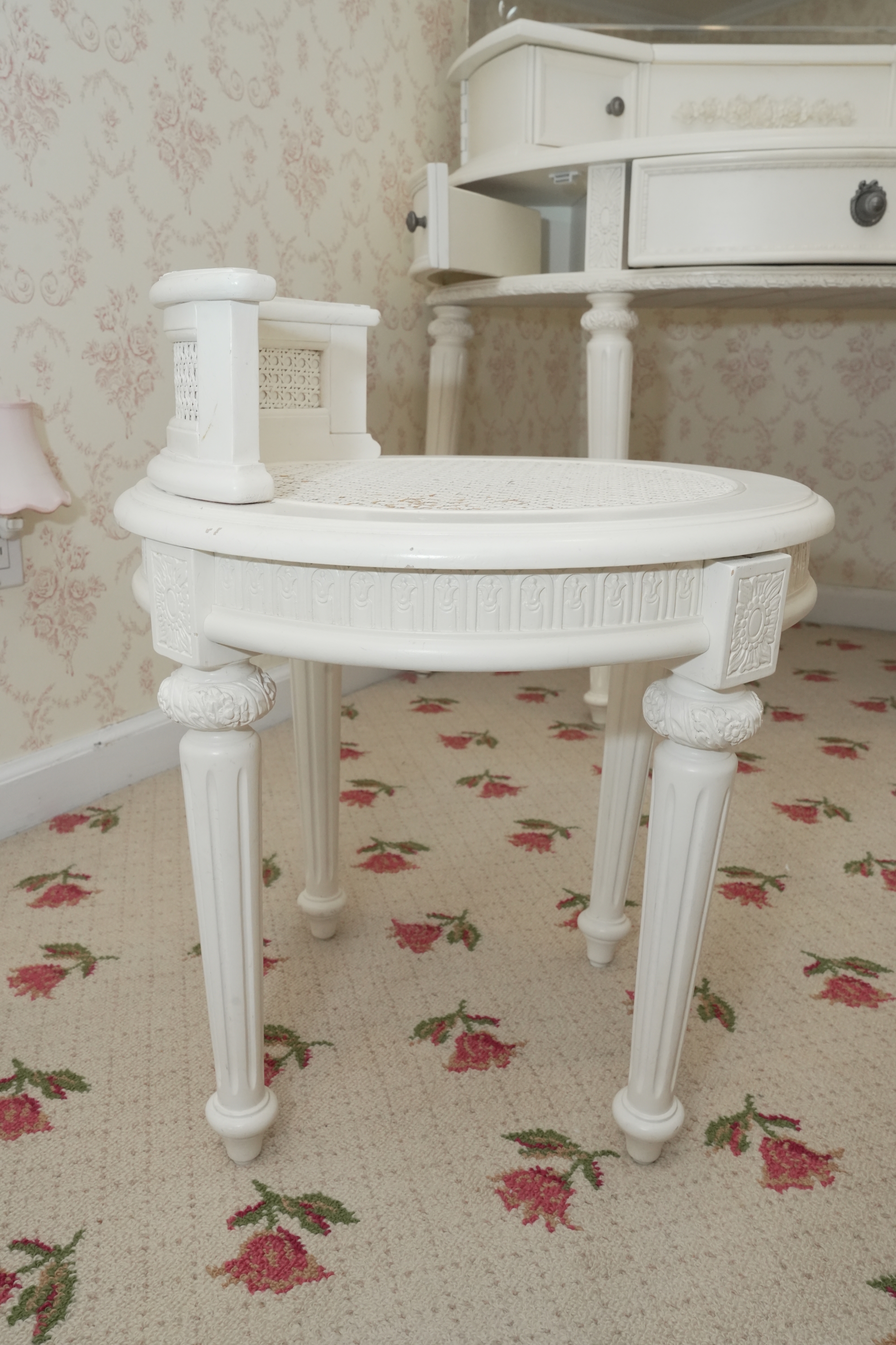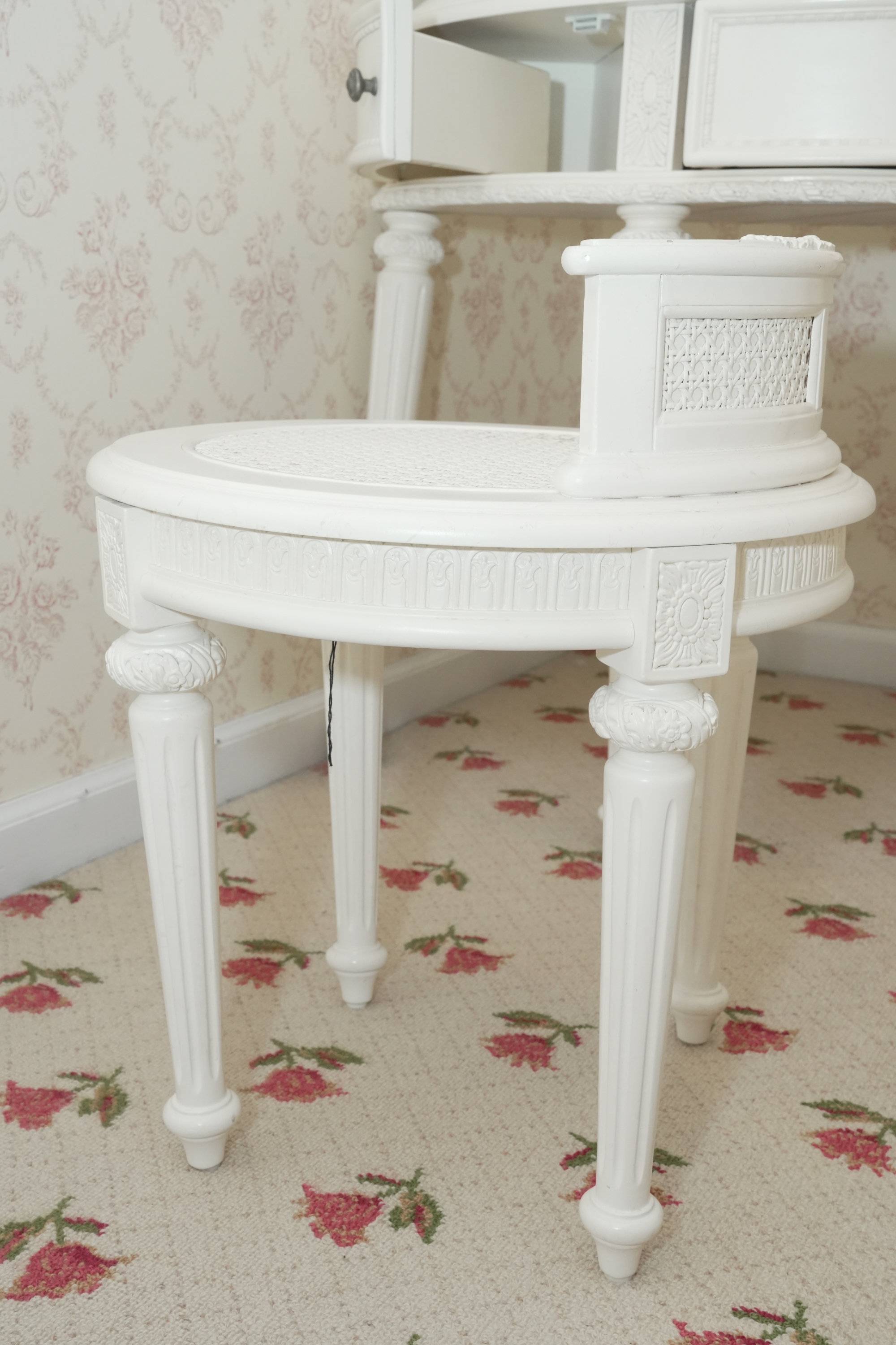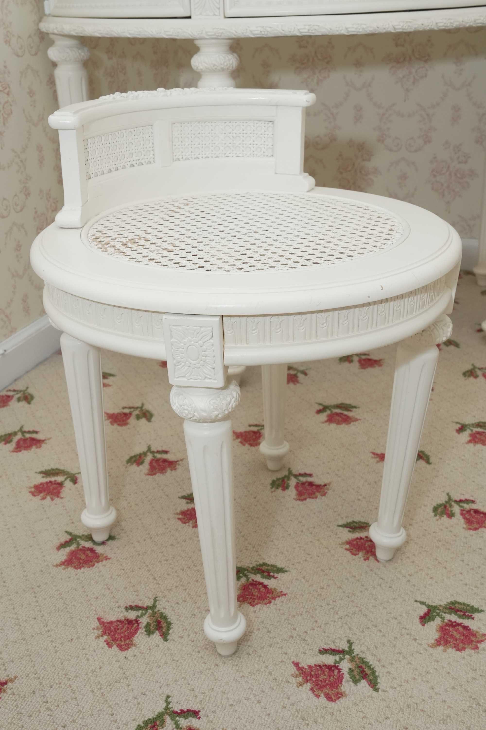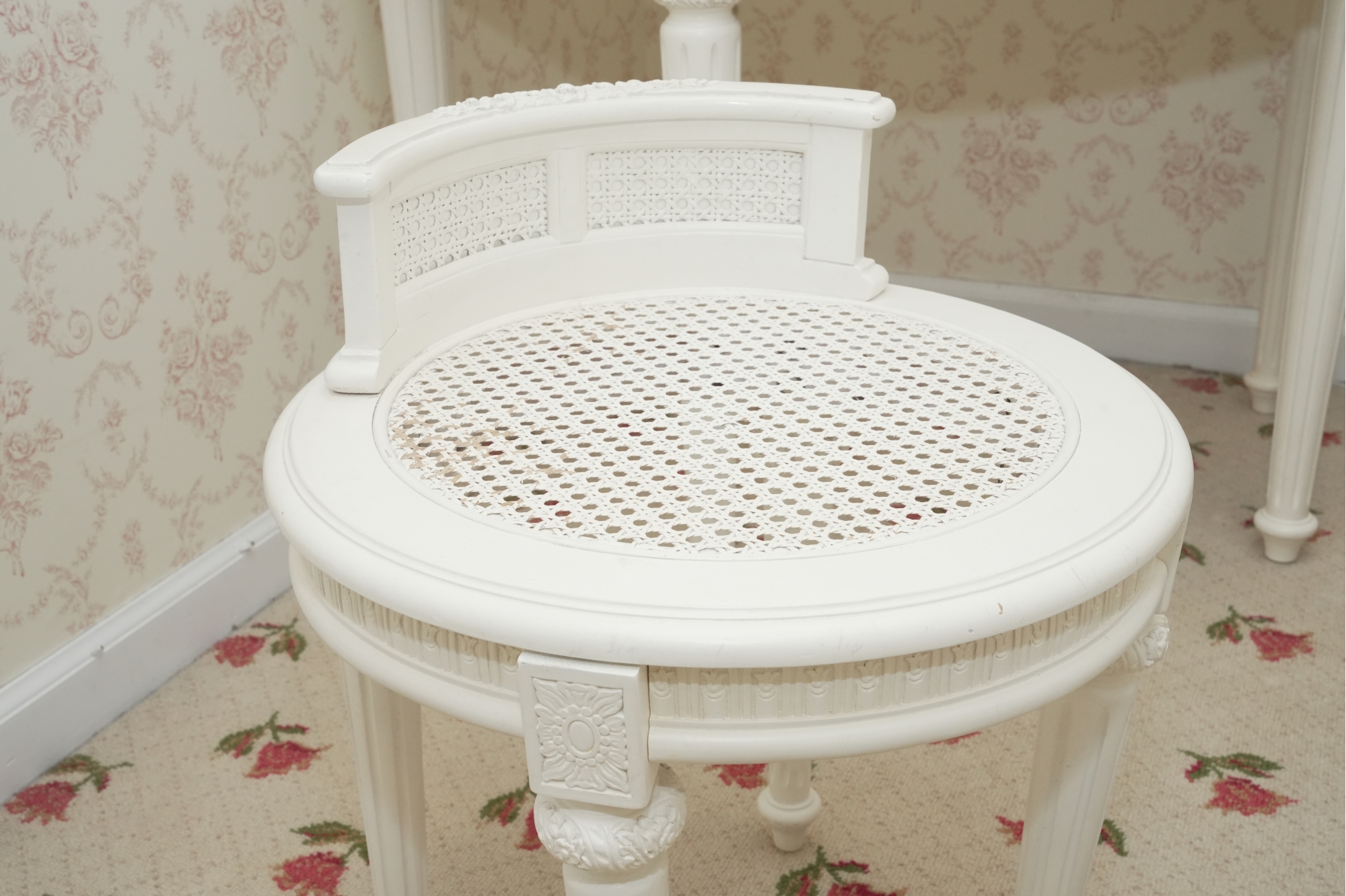 Condition: Light wear to desk top surface and caning on seat. One of the desk legs is also loose.