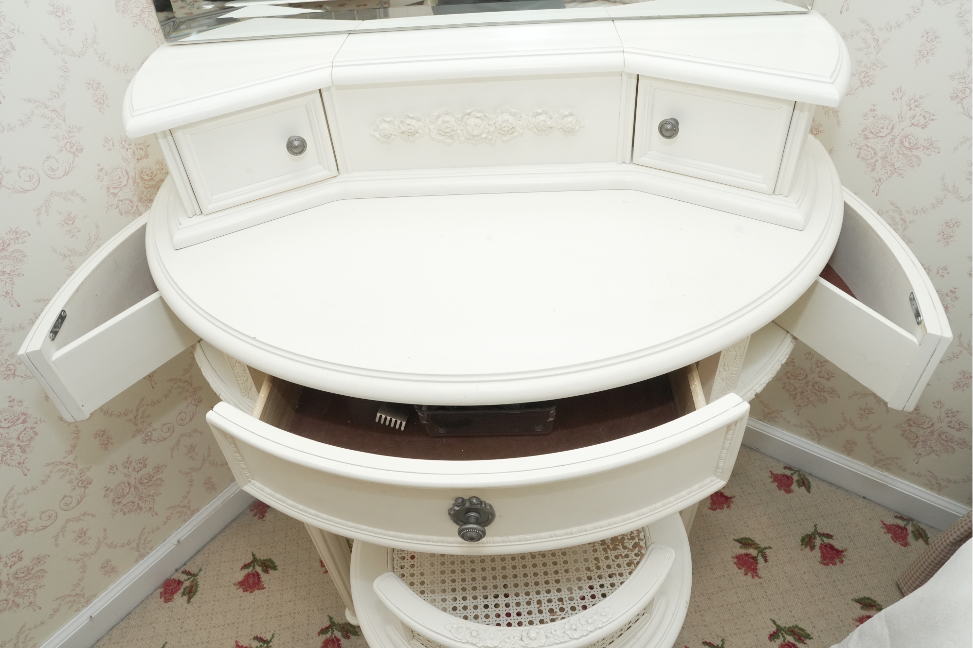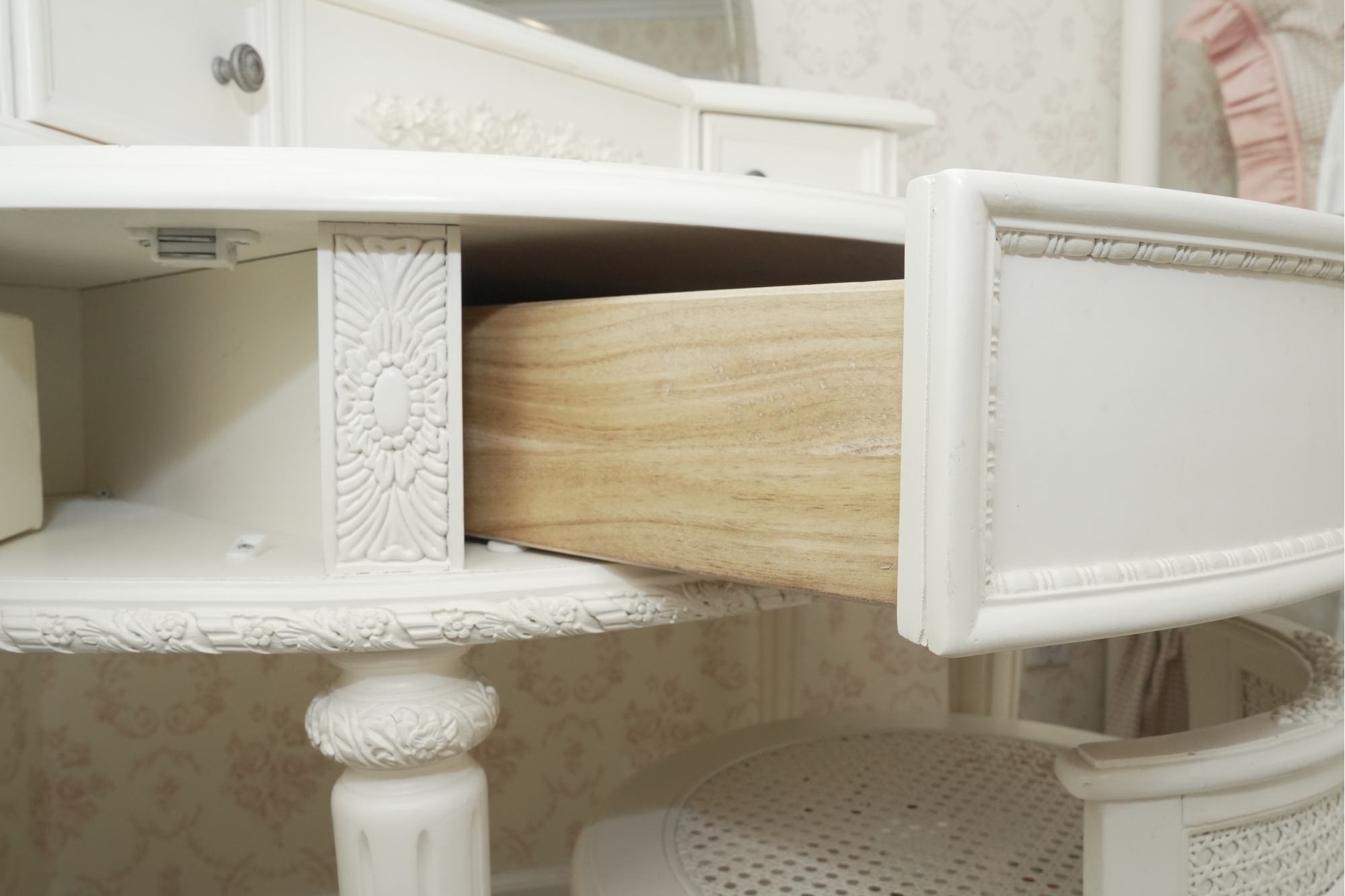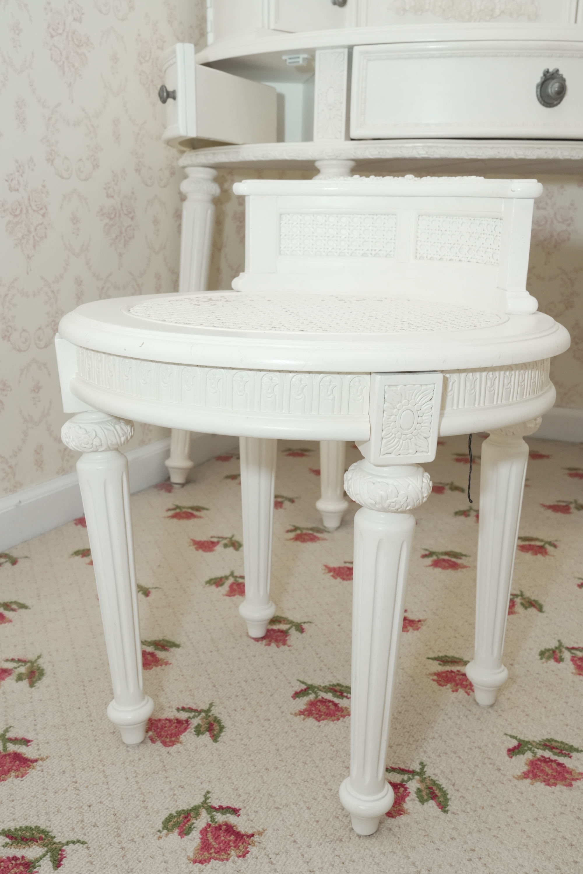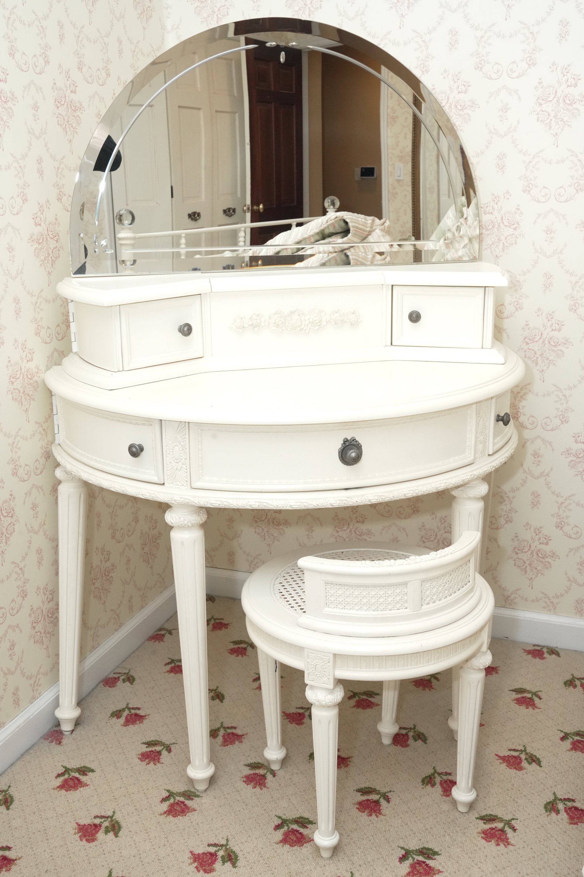 Condition: Light wear to desk top surface and caning on seat. One of the desk legs is also loose.