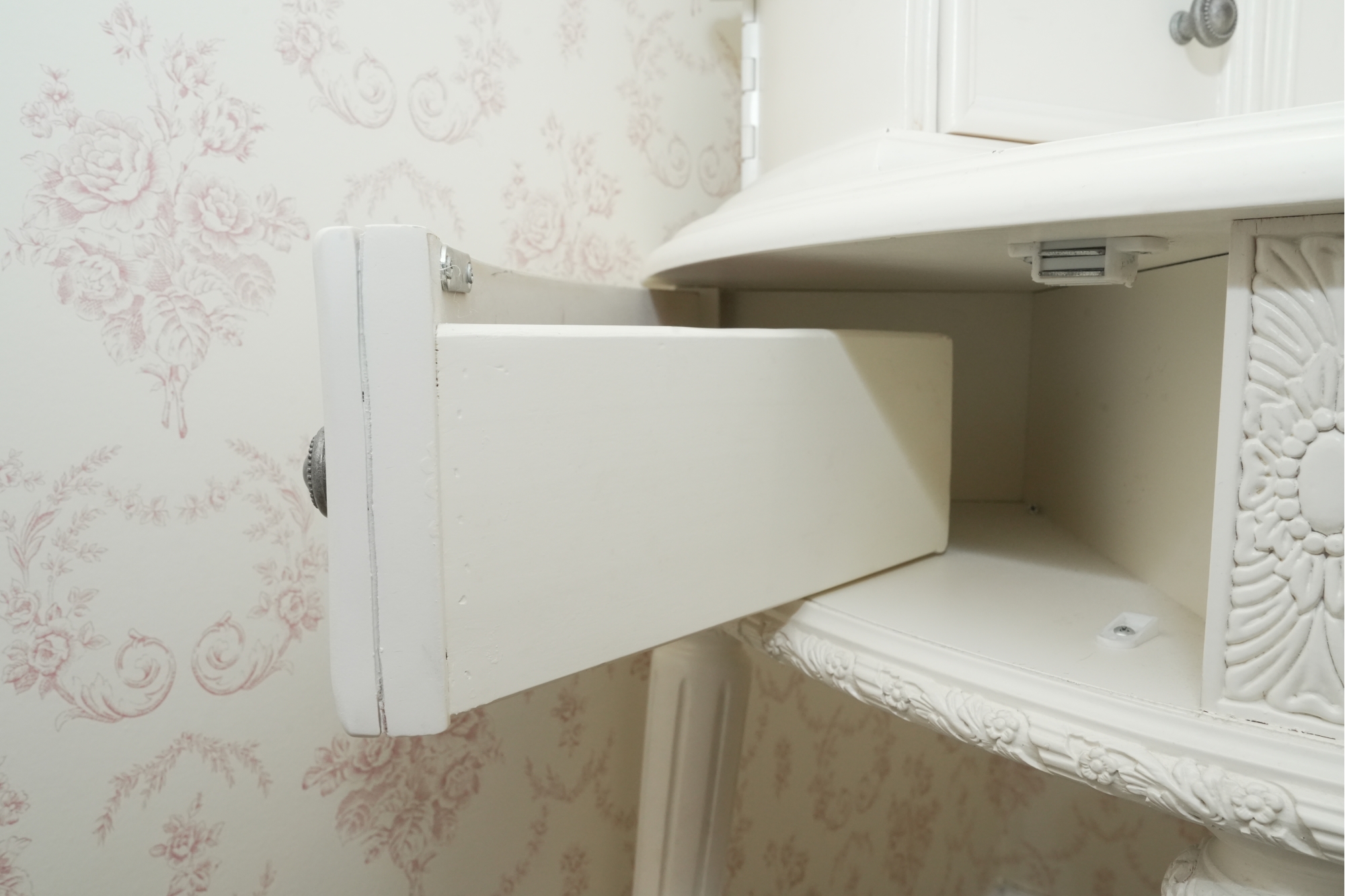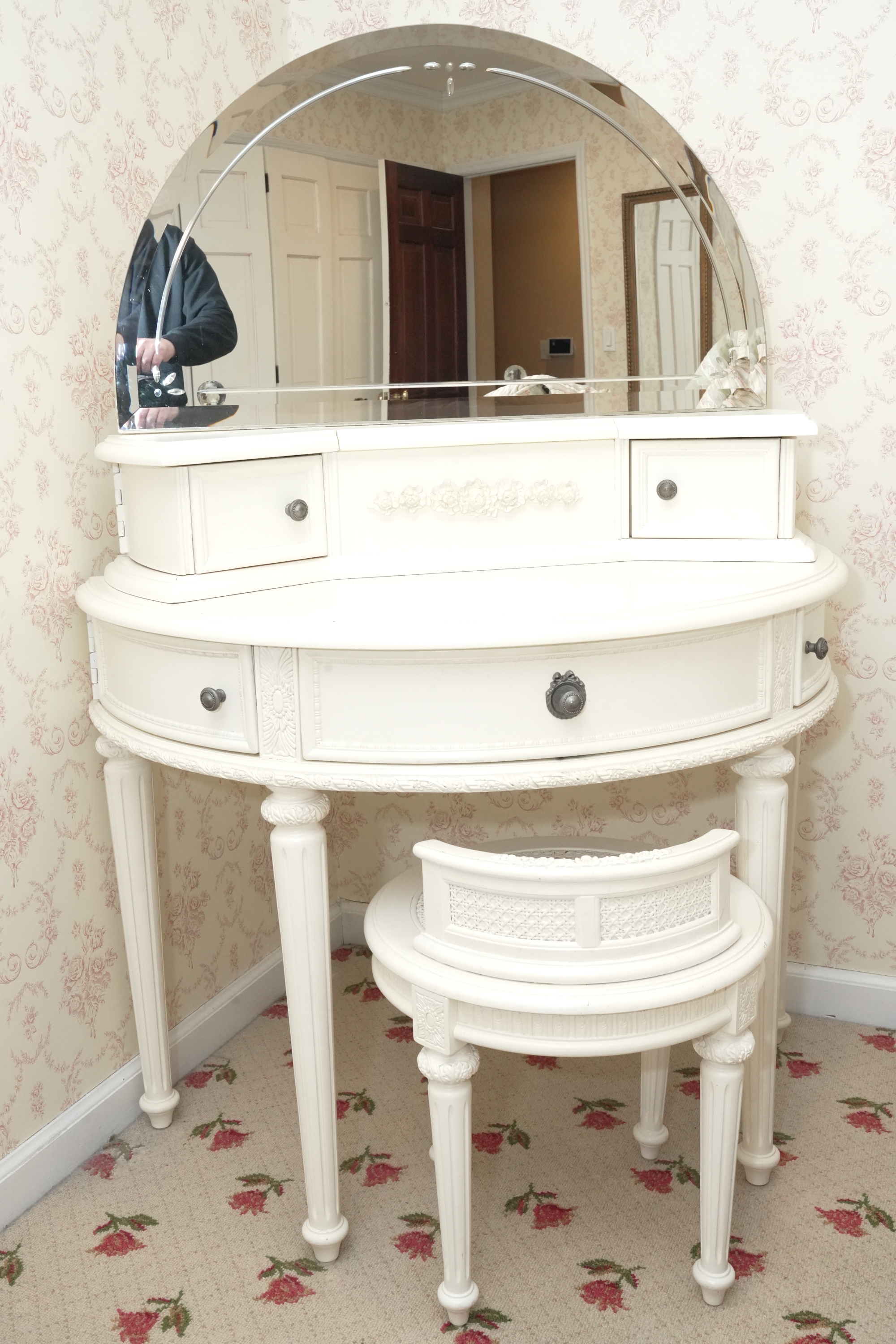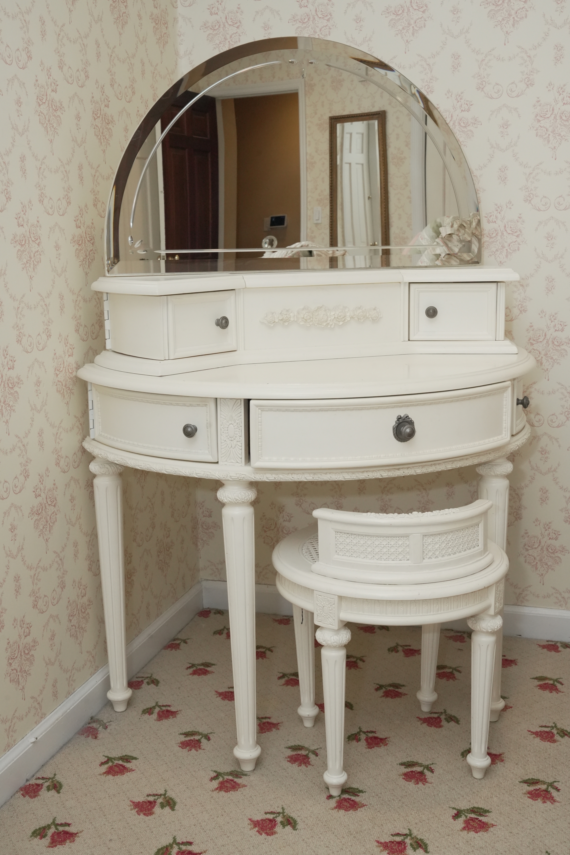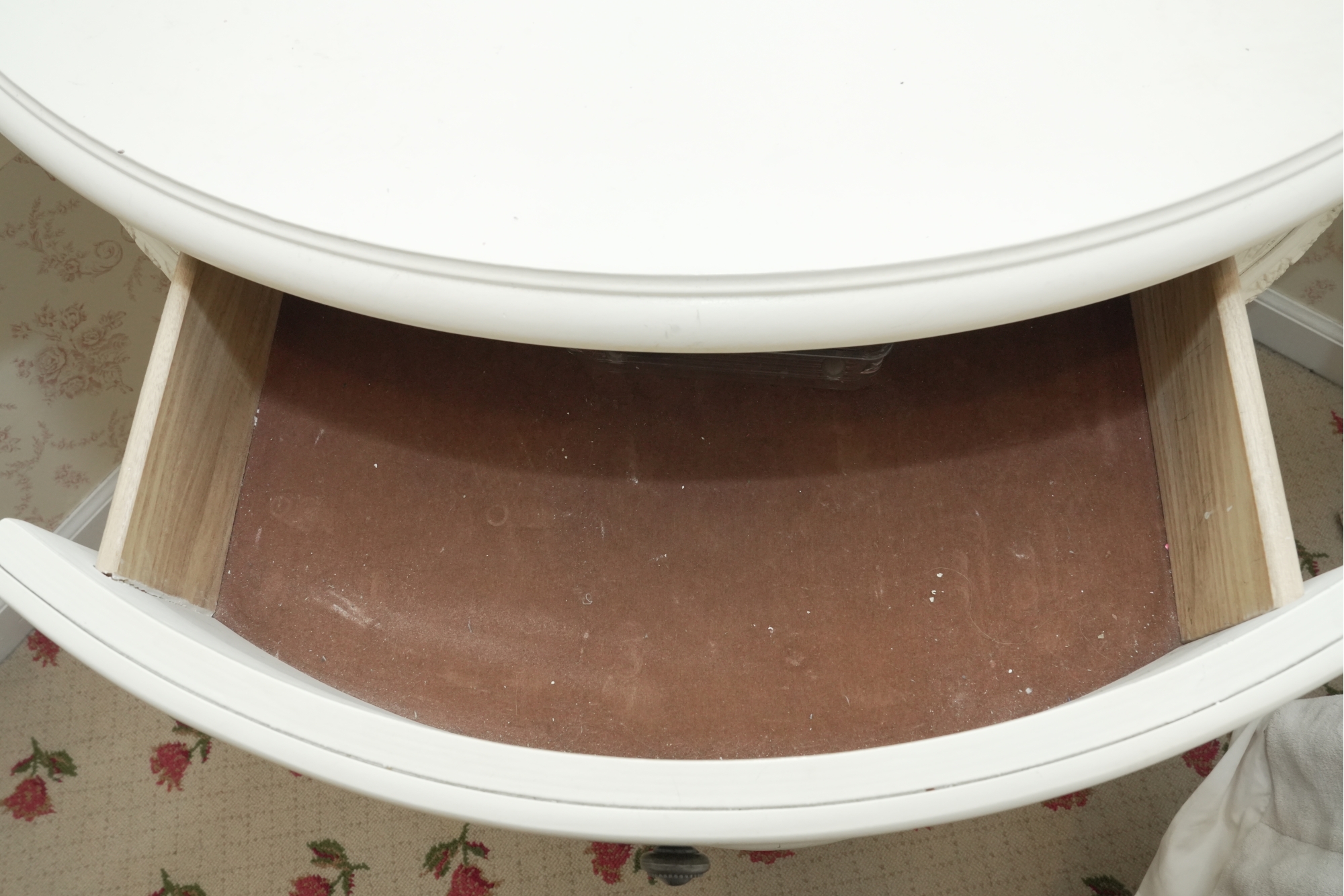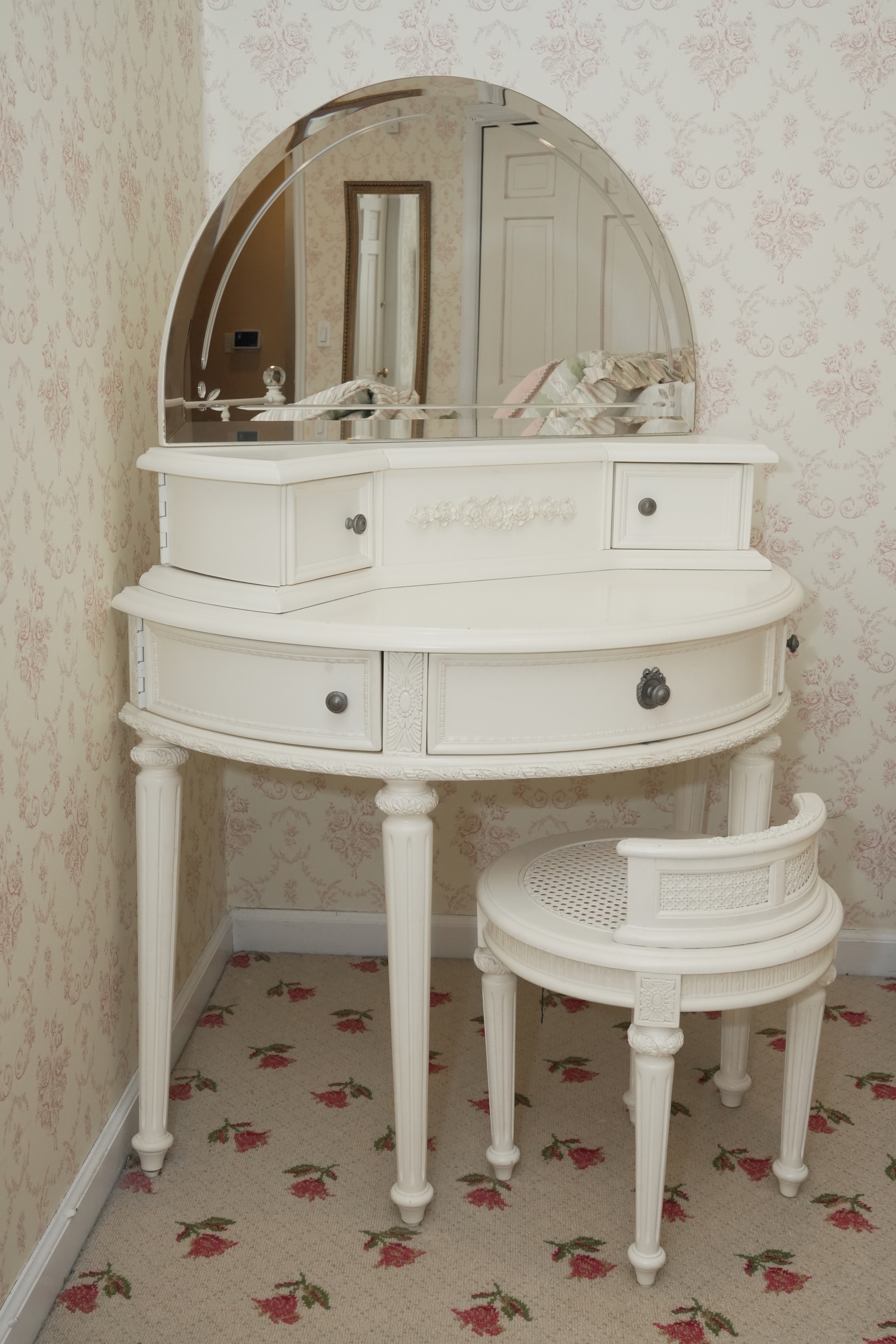 Condition: Light wear to desk top surface and caning on seat. One of the desk legs is also loose.