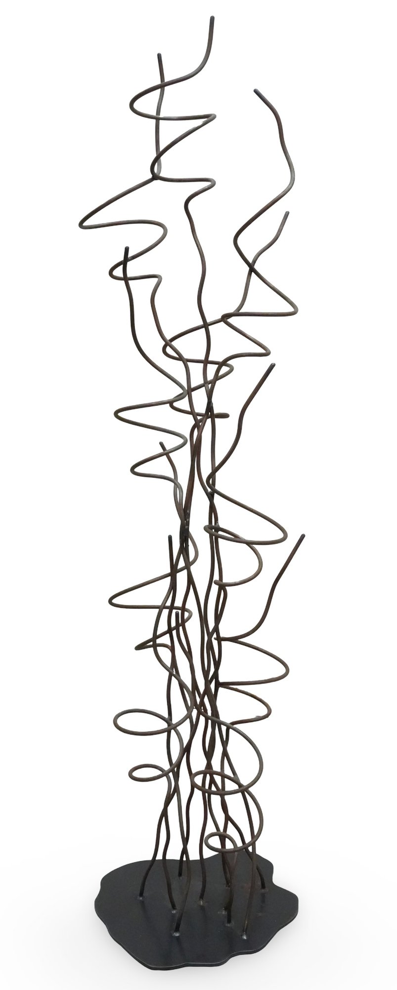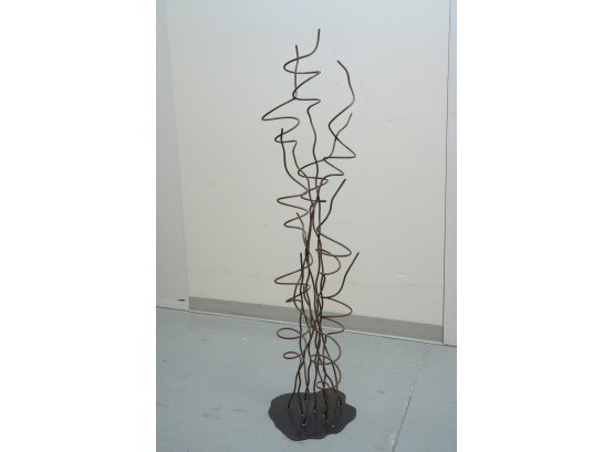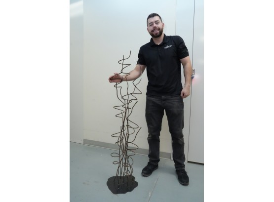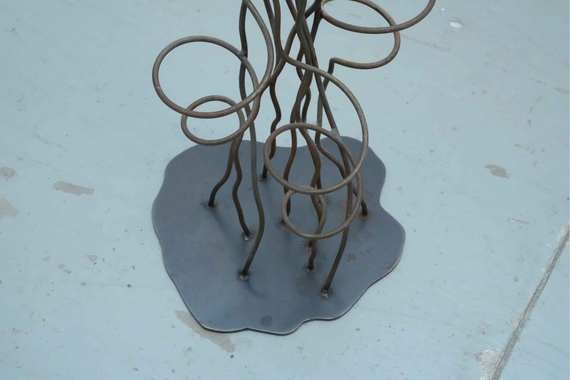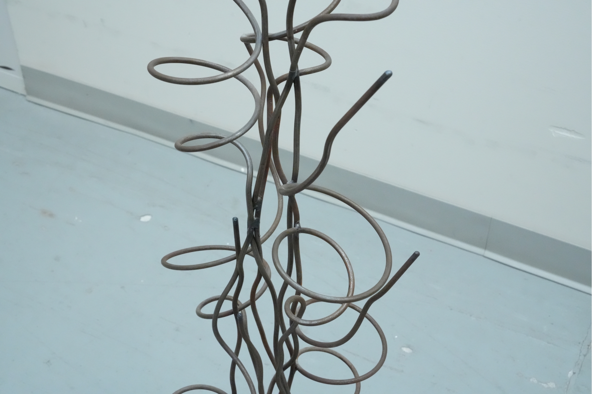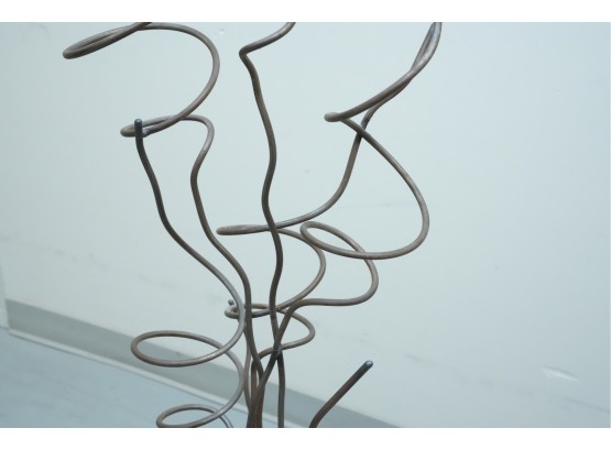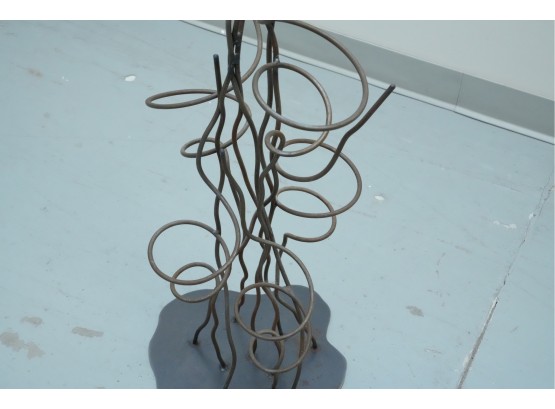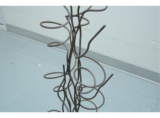 Vintage 1990s Brutalist or Post-Modern style wrought iron sculptural wine tree rack.