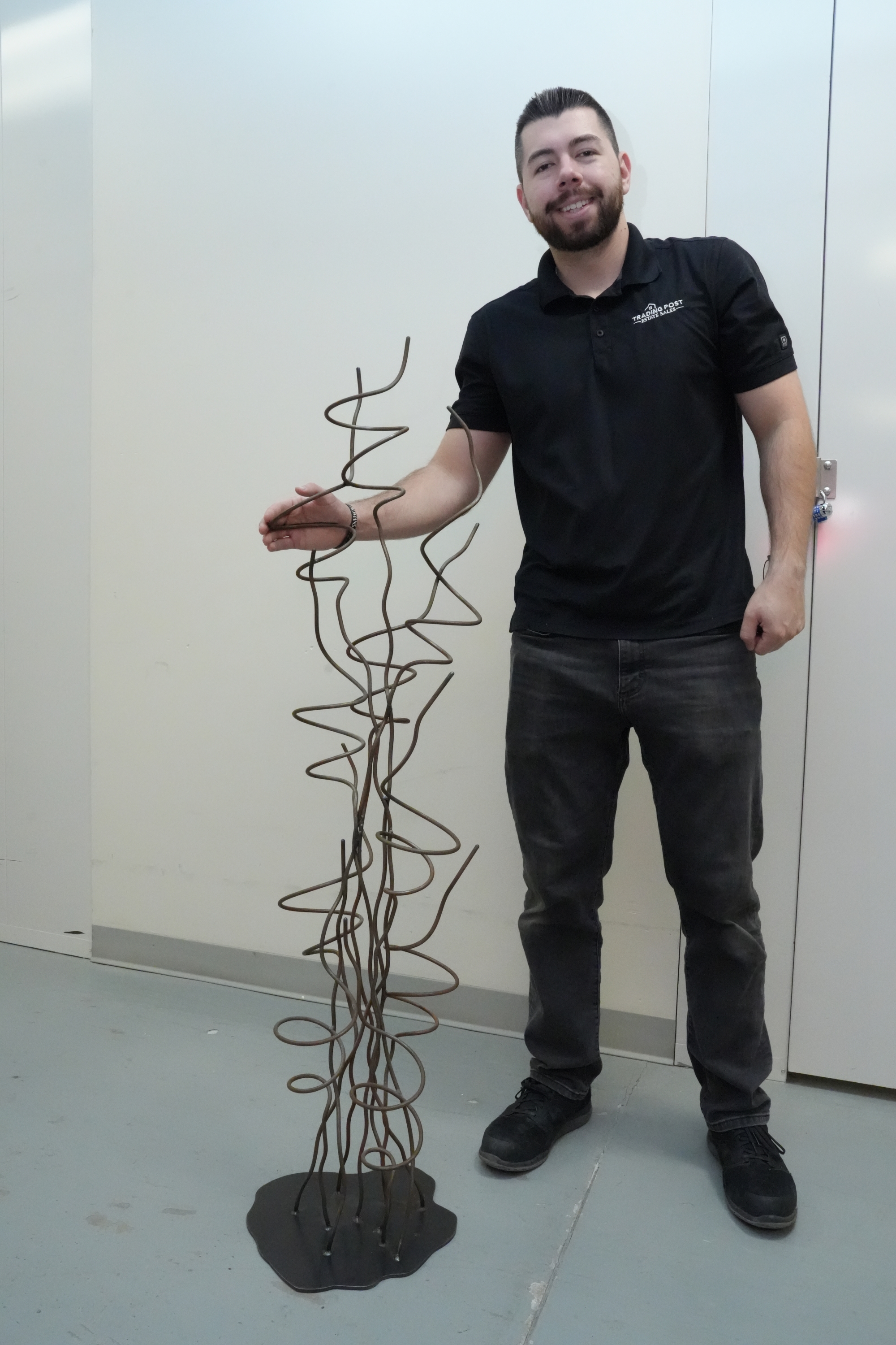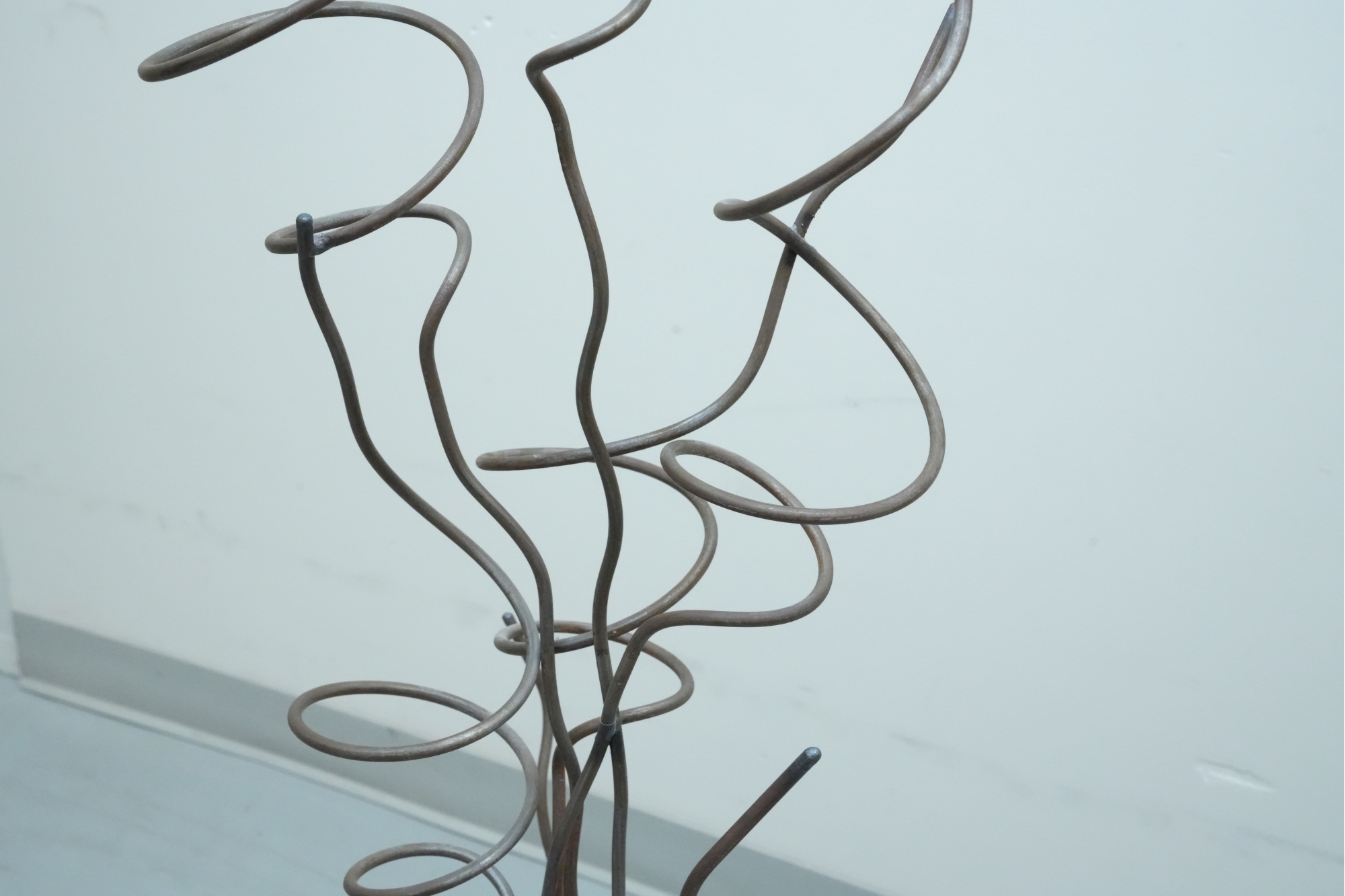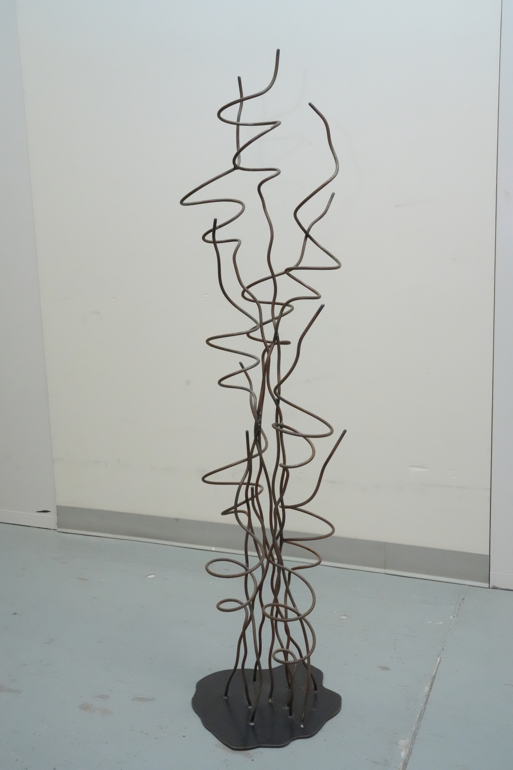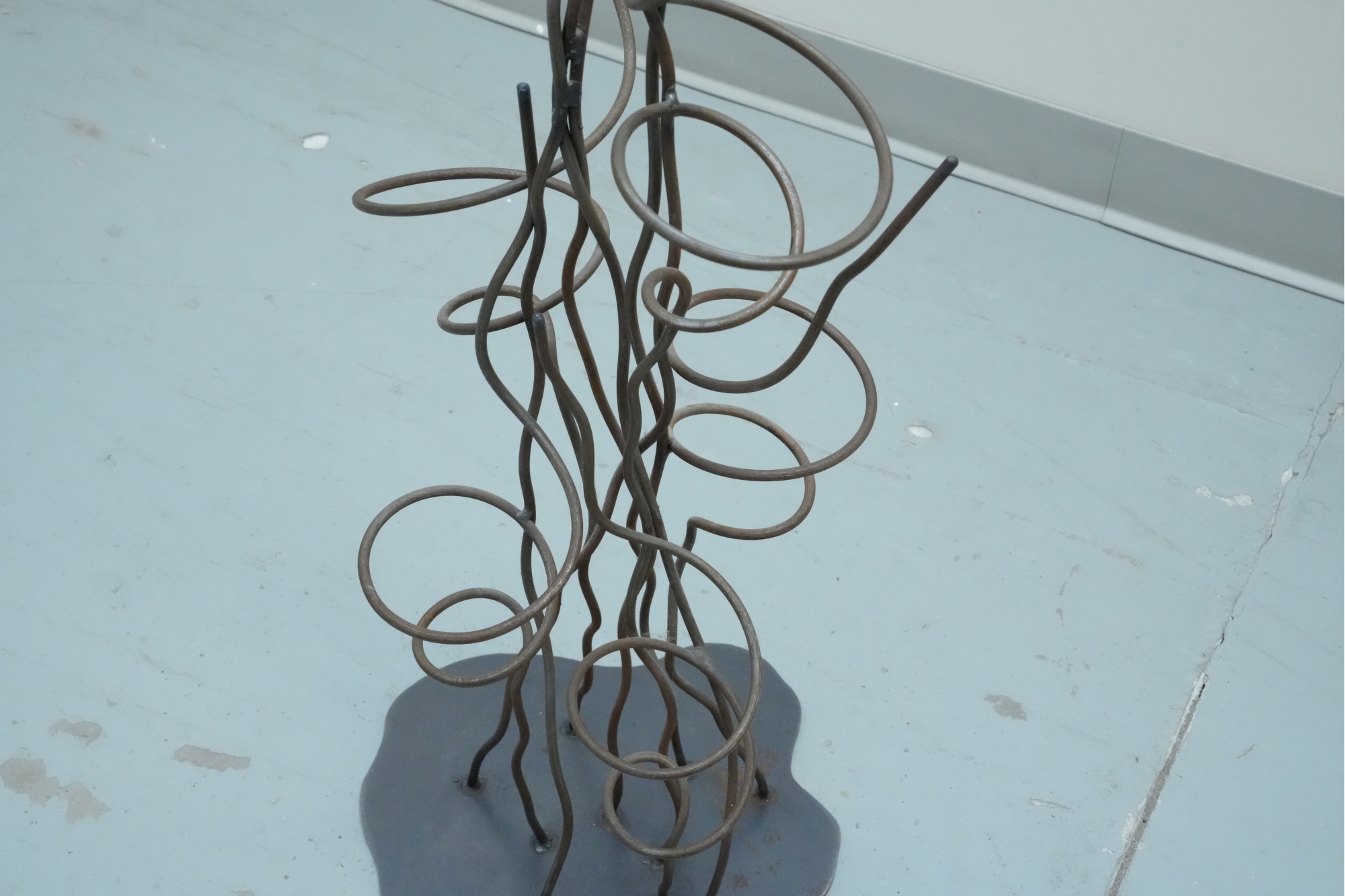 Vintage 1990s Brutalist or Post-Modern style wrought iron sculptural wine tree rack.