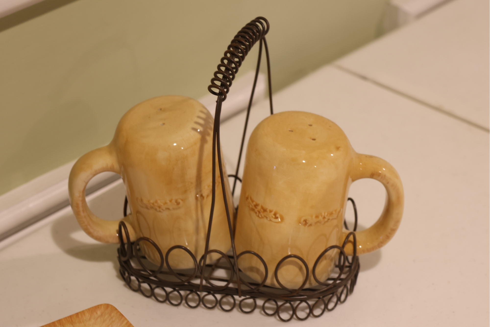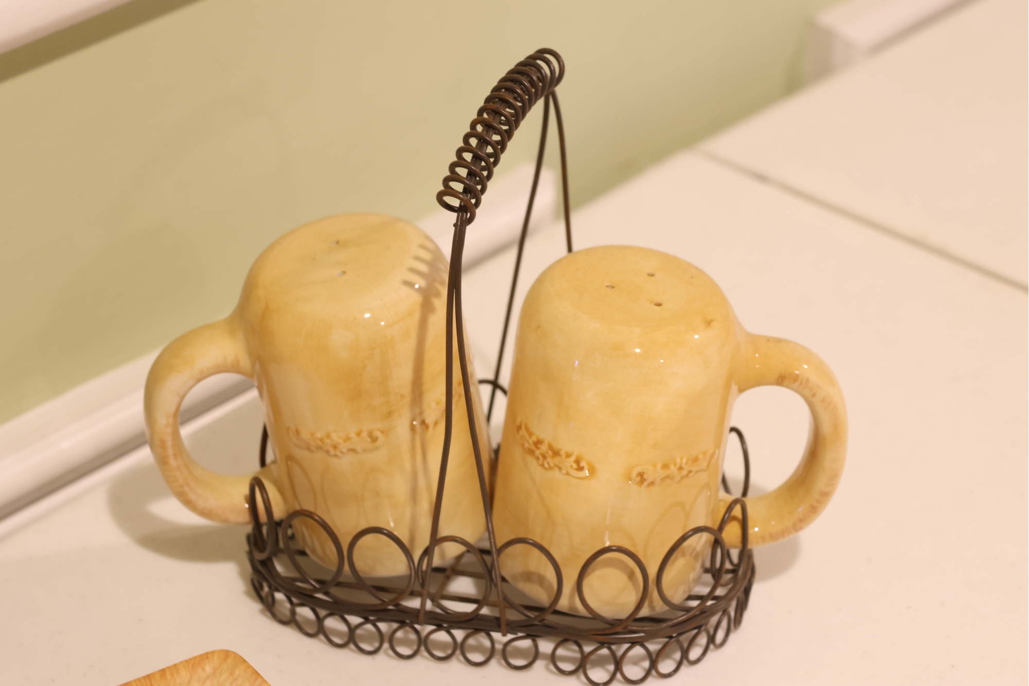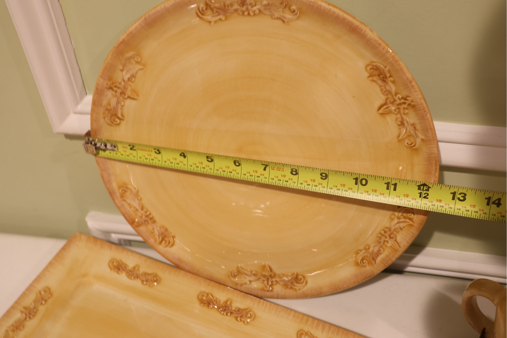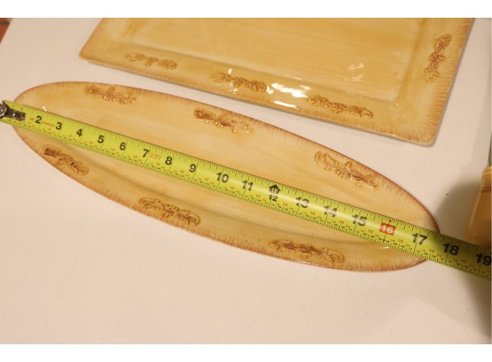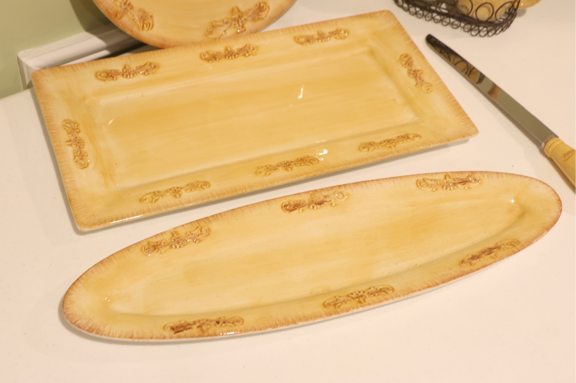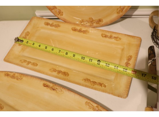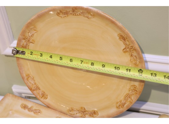 Yellow Glazed Ceramic Serving Ware And Mug Set With Wire Caddy