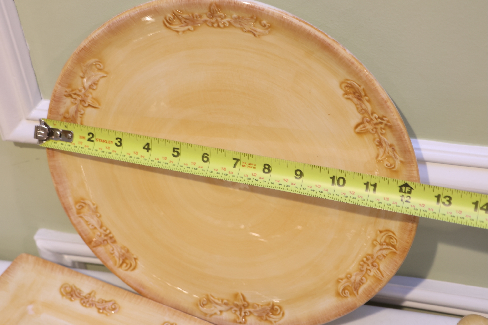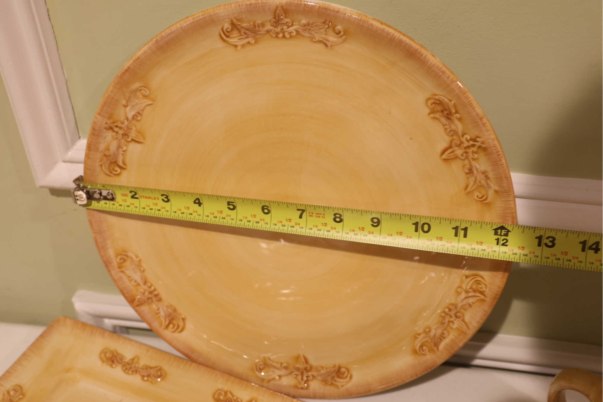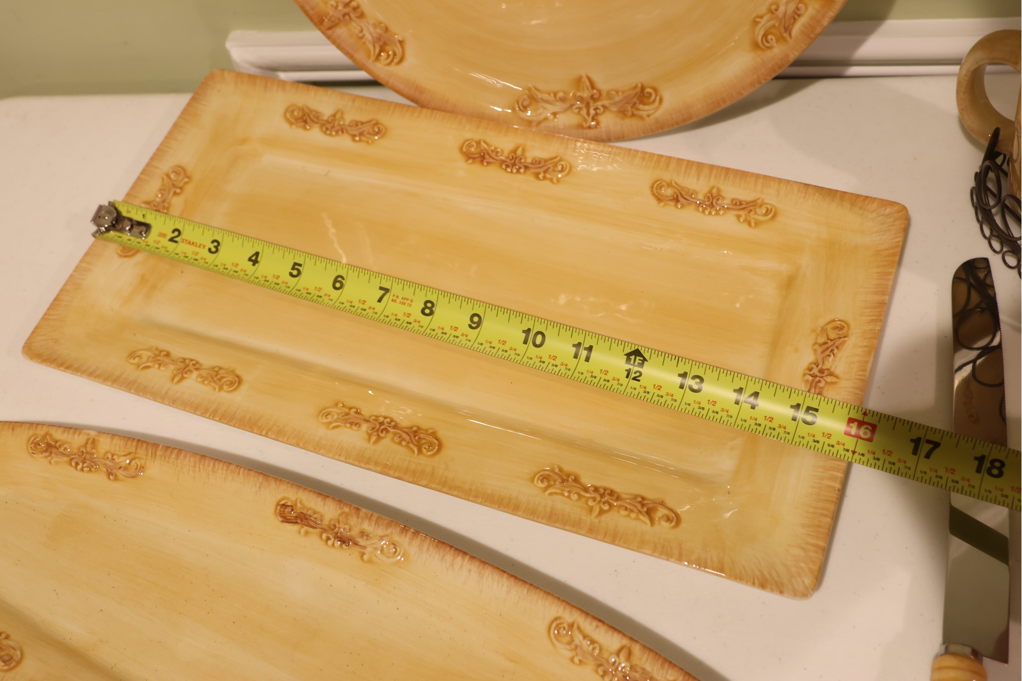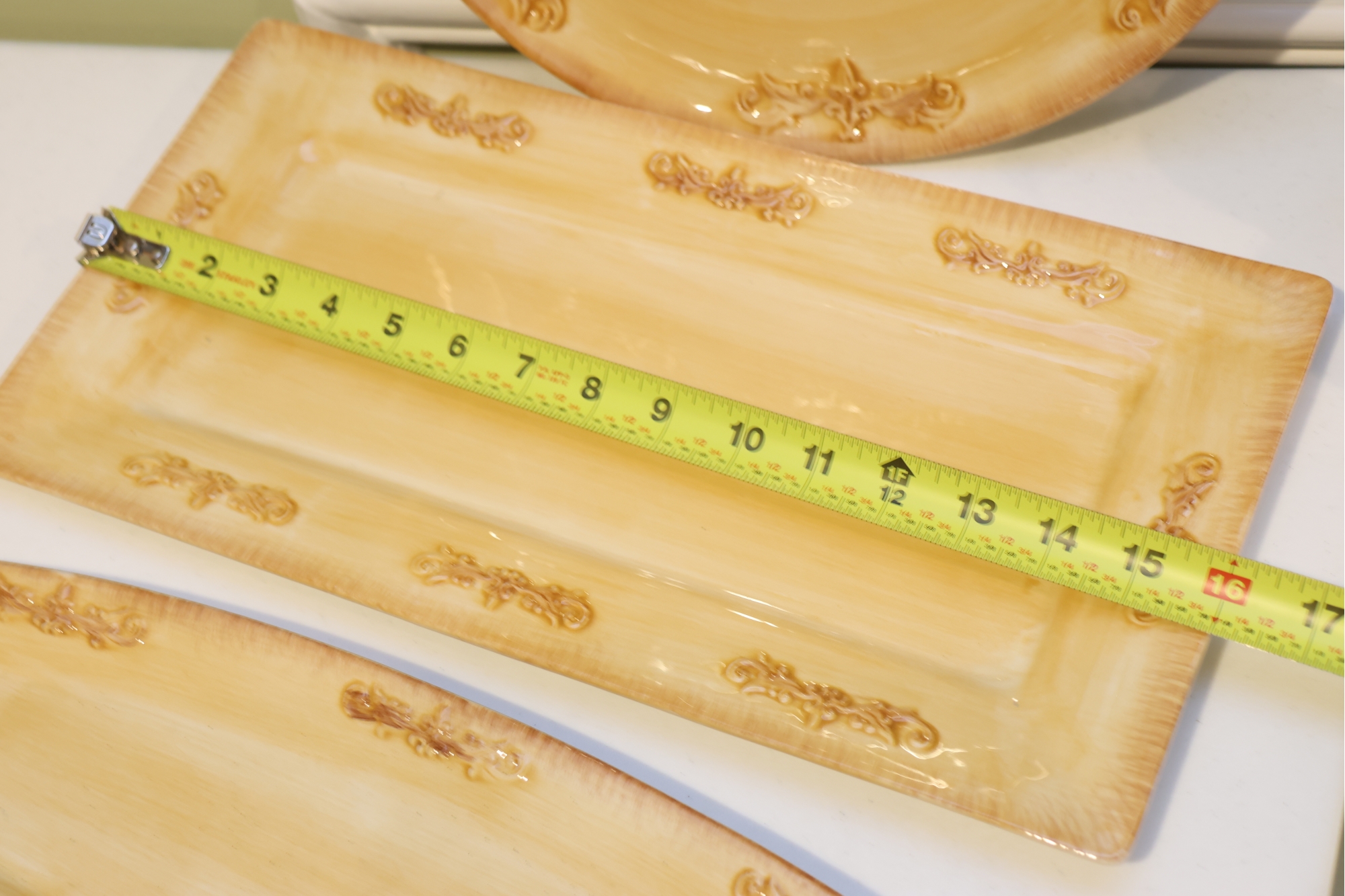 Yellow Glazed Ceramic Serving Ware And Mug Set With Wire Caddy