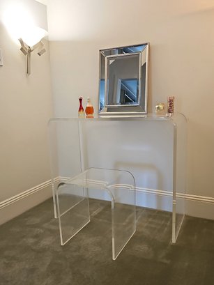 Clear Modern Acrylic Waterfall Vanity Table And Stool Set And Beveled Accent Wall Mirror #45
