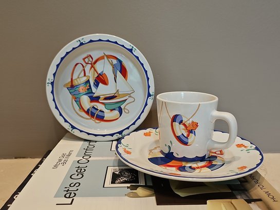Three Piece Child's Dish Set With A "Seashore" Theme By Tiffany & Co #98