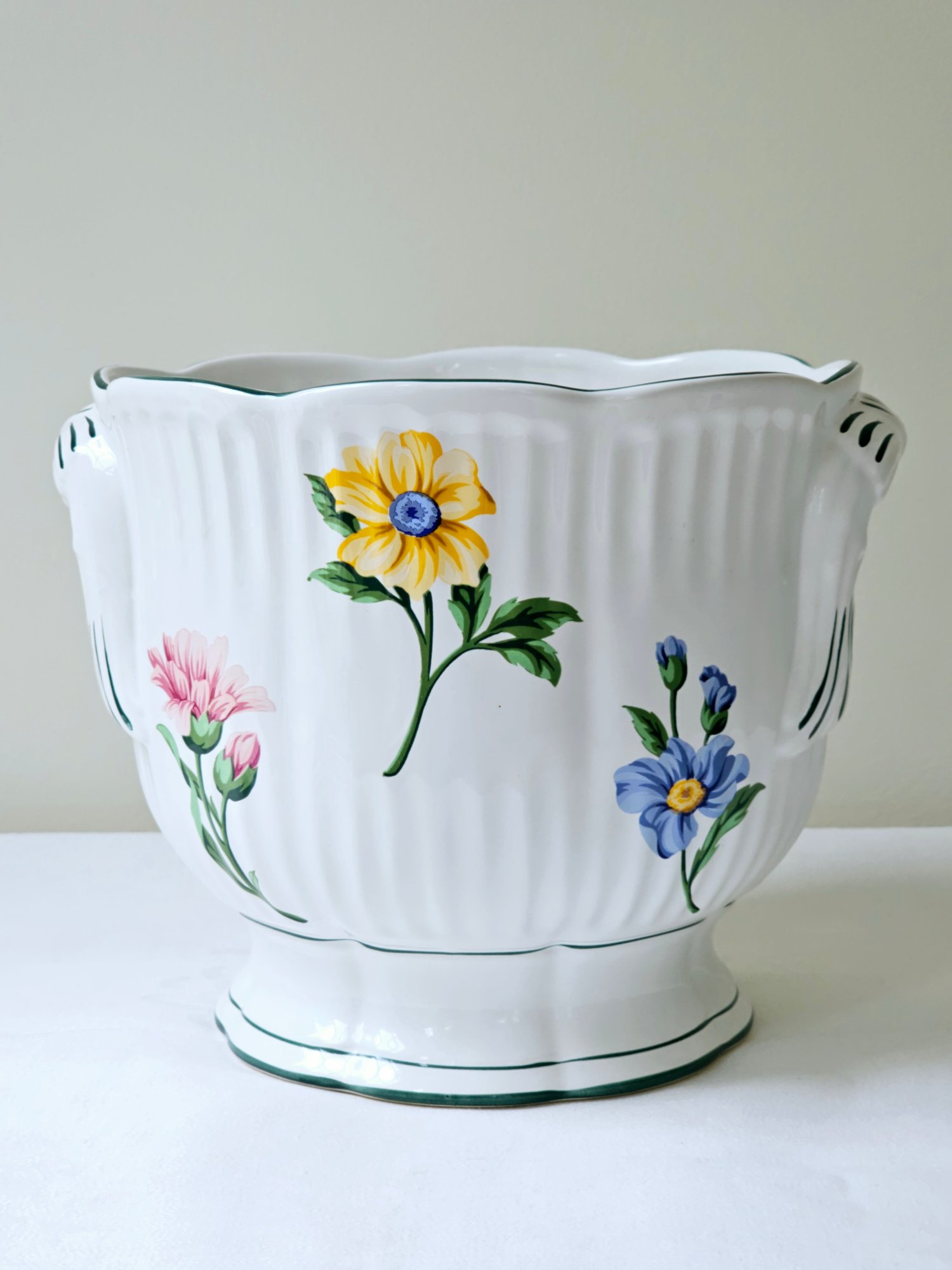 Tiffany Co Planter Cachepot Multicolored Hand Painted Floral Motif 7"H X 8.5"D #7