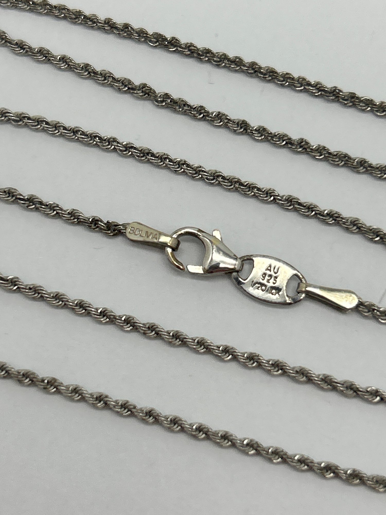1/20 10K White Gold Filled On Sterling Silver Rope Chain Necklace, 20 Inch, Bolivia