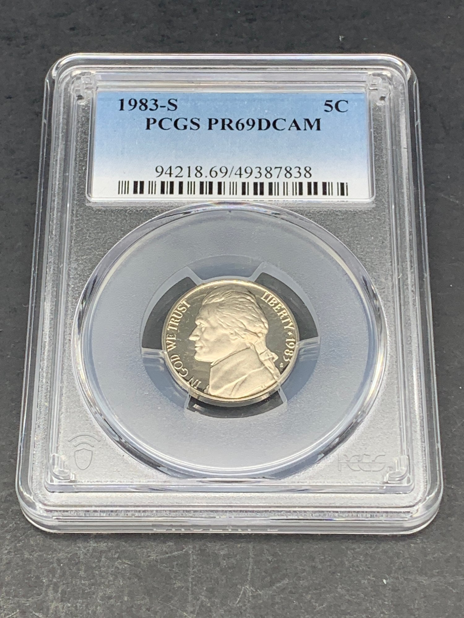 1983-S PCGS Graded PR69DCAM 5c, Mirrored Background Nickel