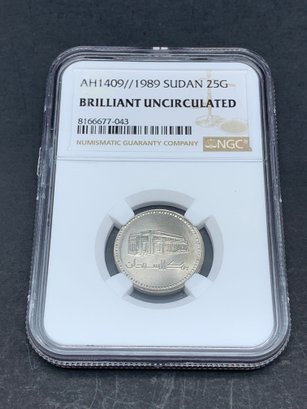 1989/AH1409 Sudan 25G Coin, NGC Brilliant Uncirculated, 25 Qirsh