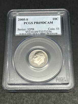 2005-S 10c Coin, PCGS Graded Dime, PR 69 DCAM