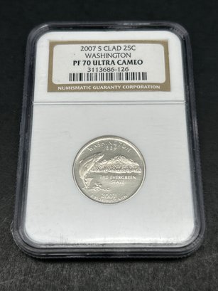 2007 S Clad 25c, Washington Quarter, NGC Graded PF 70 Ultra Cameo