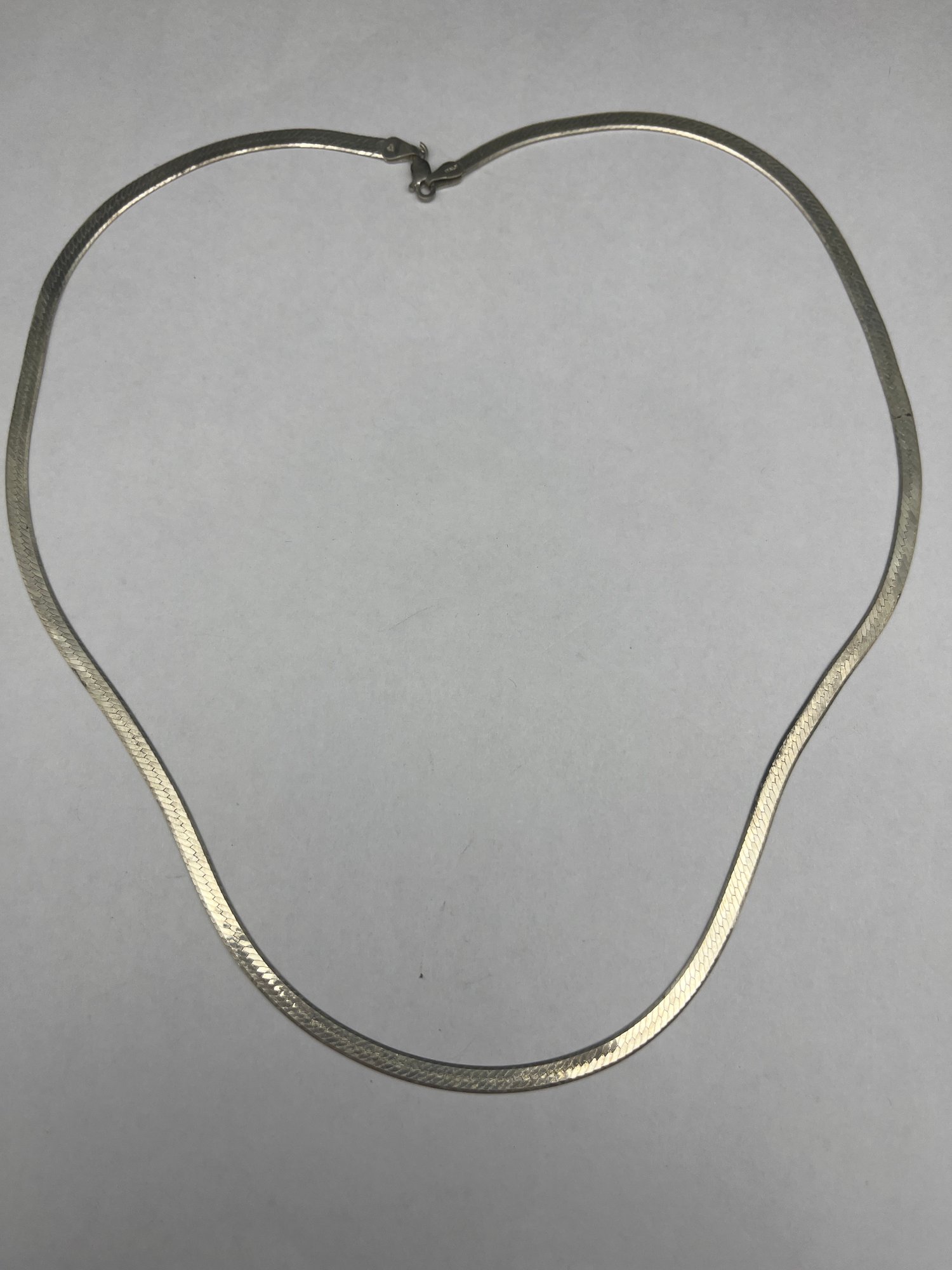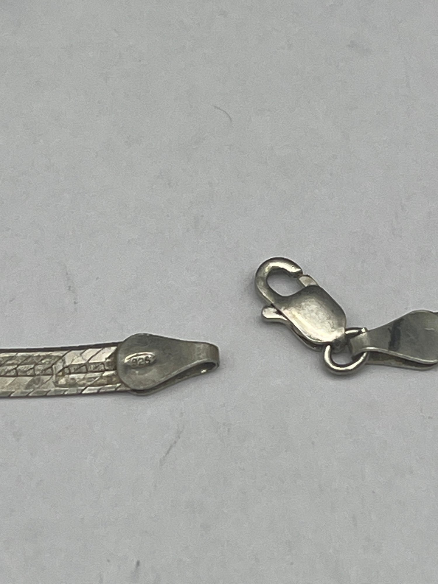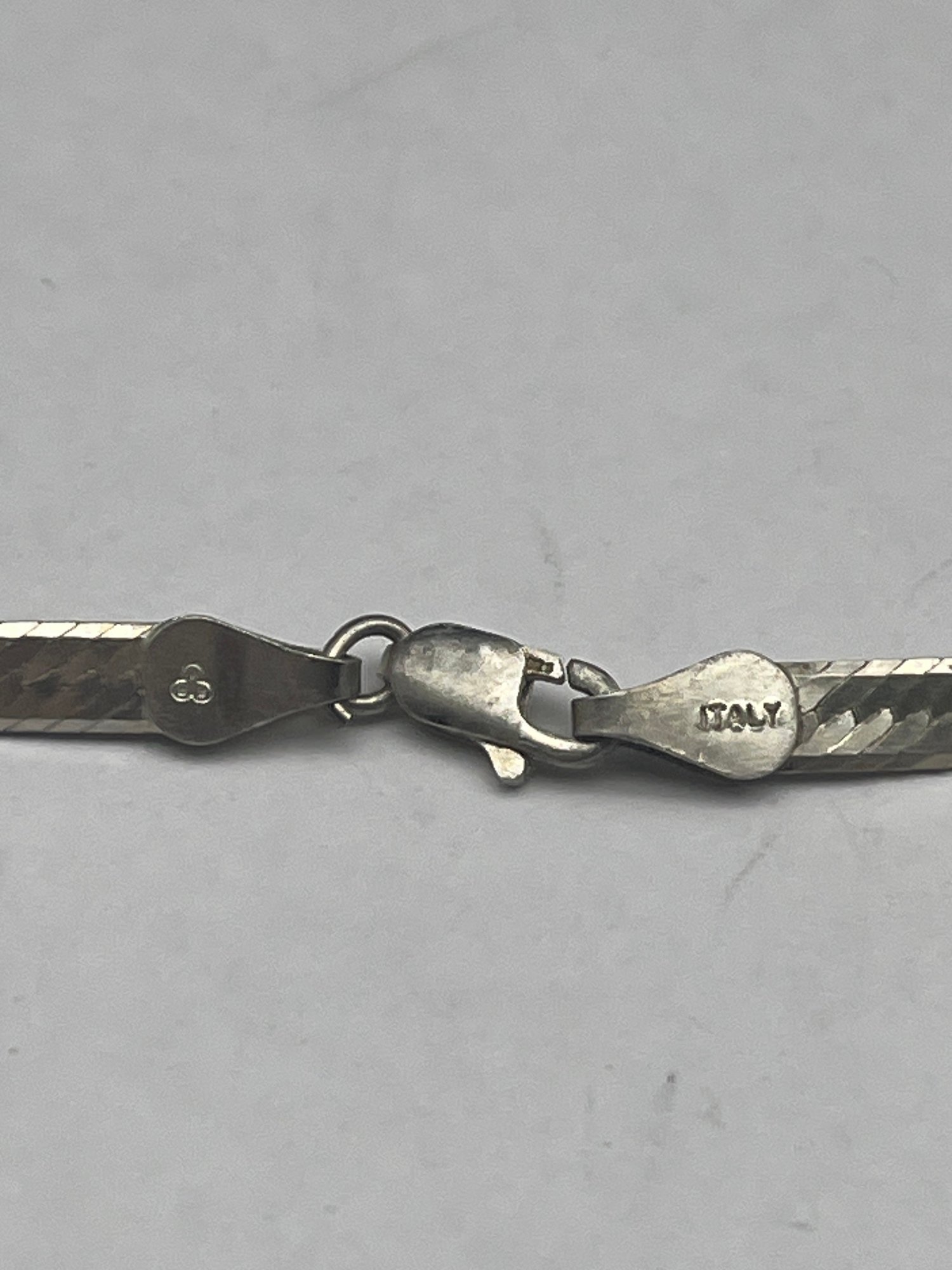 22" Long IBB Sterling Silver Herringbone Link Necklace With Etched Pattern, Marked 925