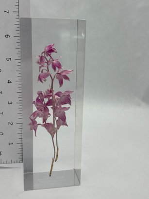 Acrylic Rectangular Prism With Orchids Signed/numbered, Display Or Desk Accessory, Paper Weight
